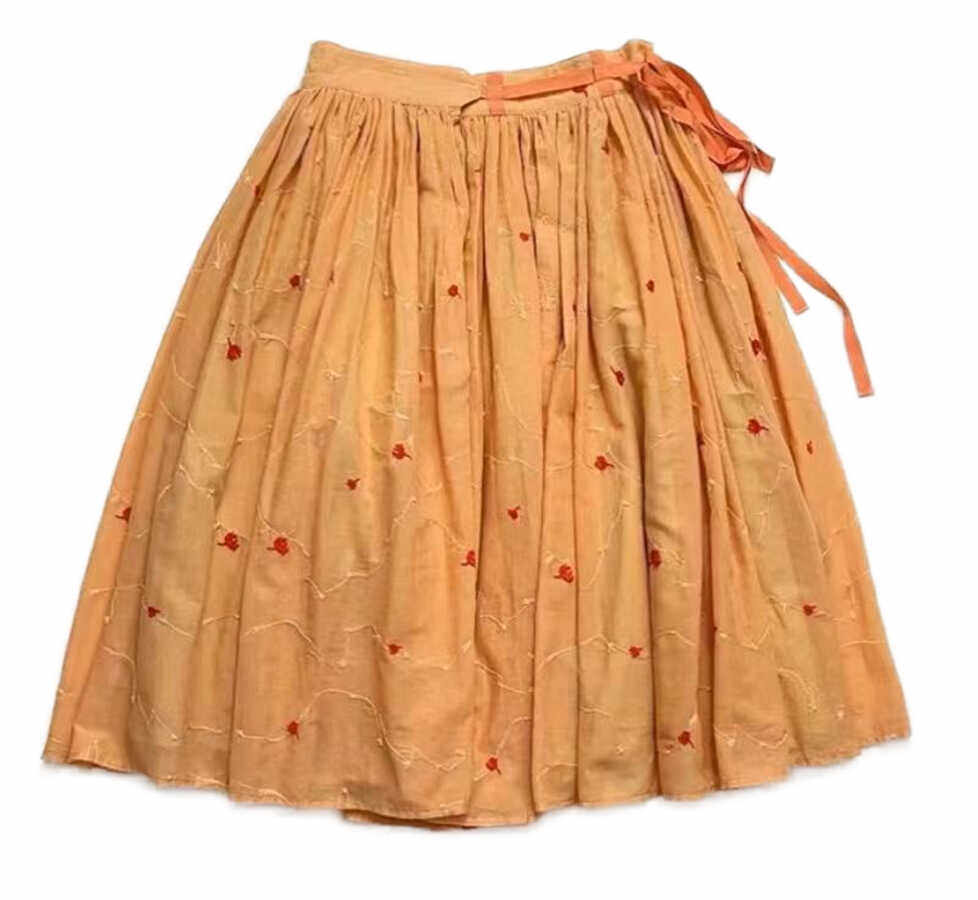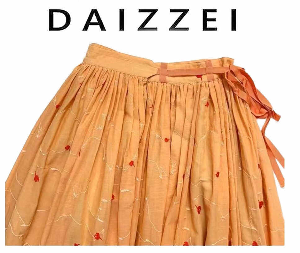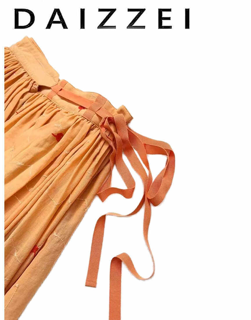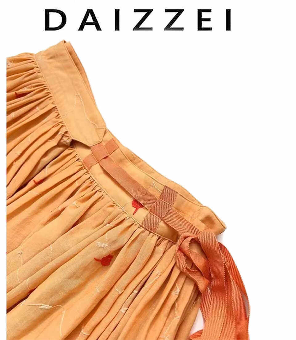 Daizzei~ Artistic Retro Style Embroidered Orange Skirt for Women, New Summer Style, Waist-Cinching Linen Tie A-Line Skirt