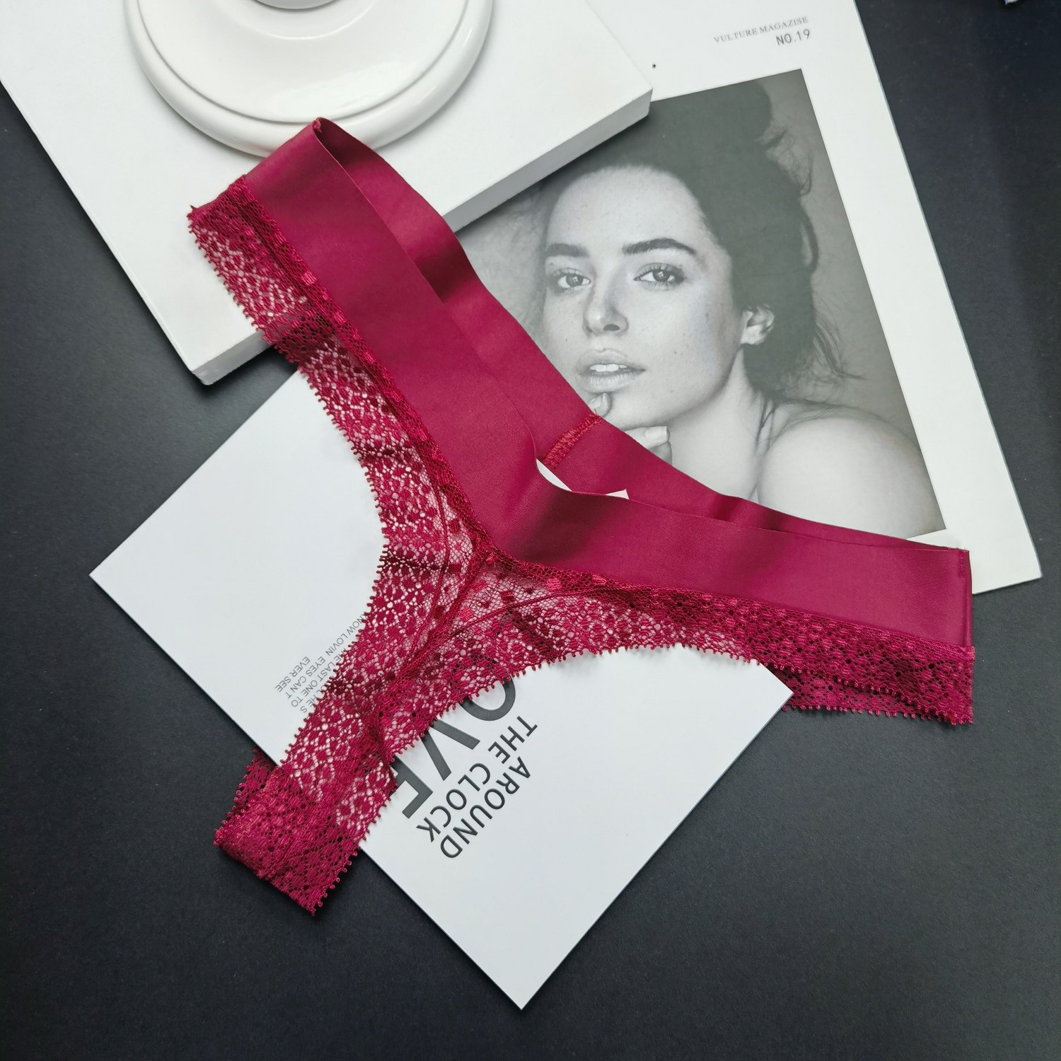 European and American Style Sexy Thong Panties, Low-Waist, Breathable, Seamless Lace T-Shaped Underwear for Women, Thin Summer Leggings