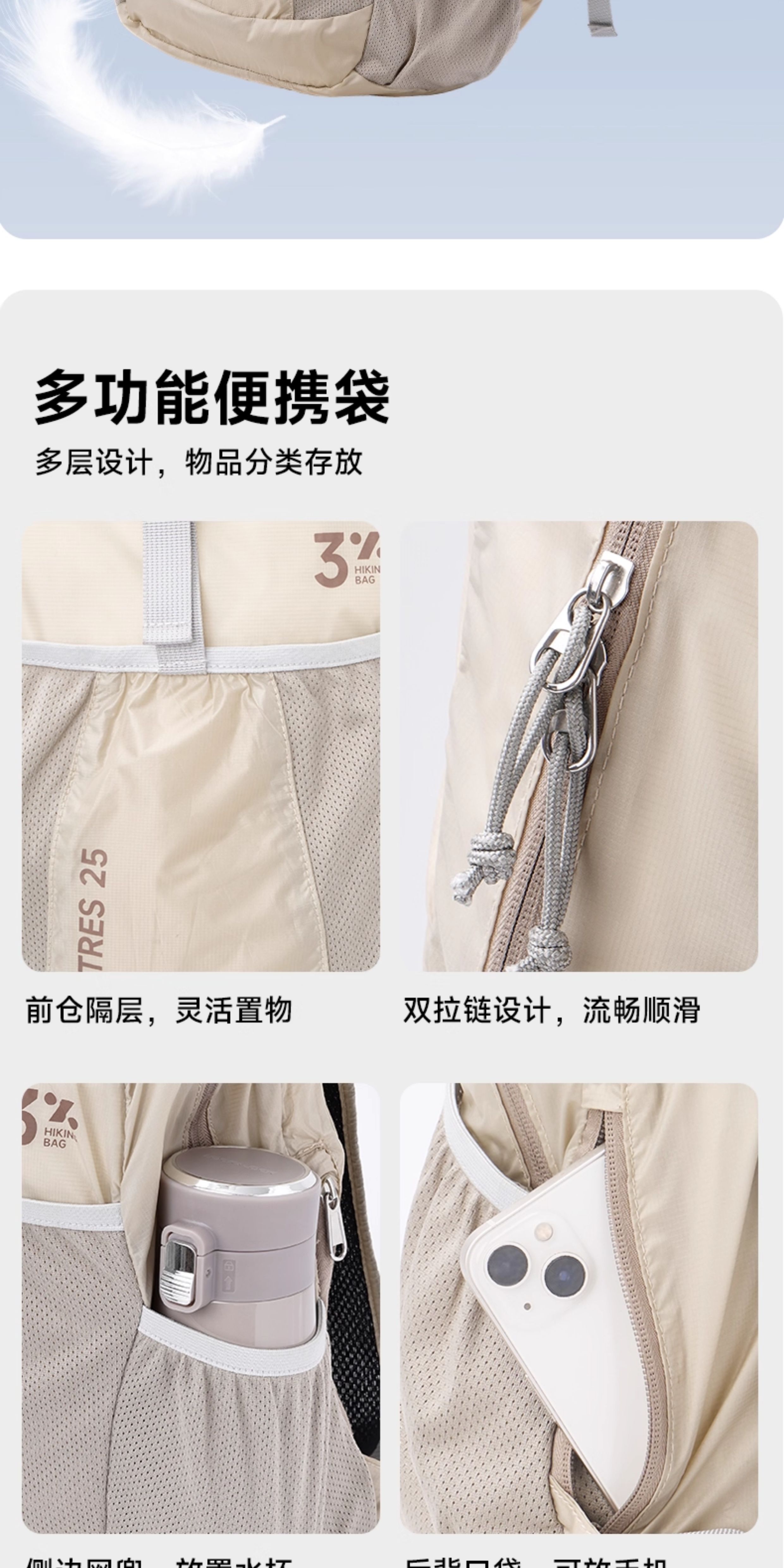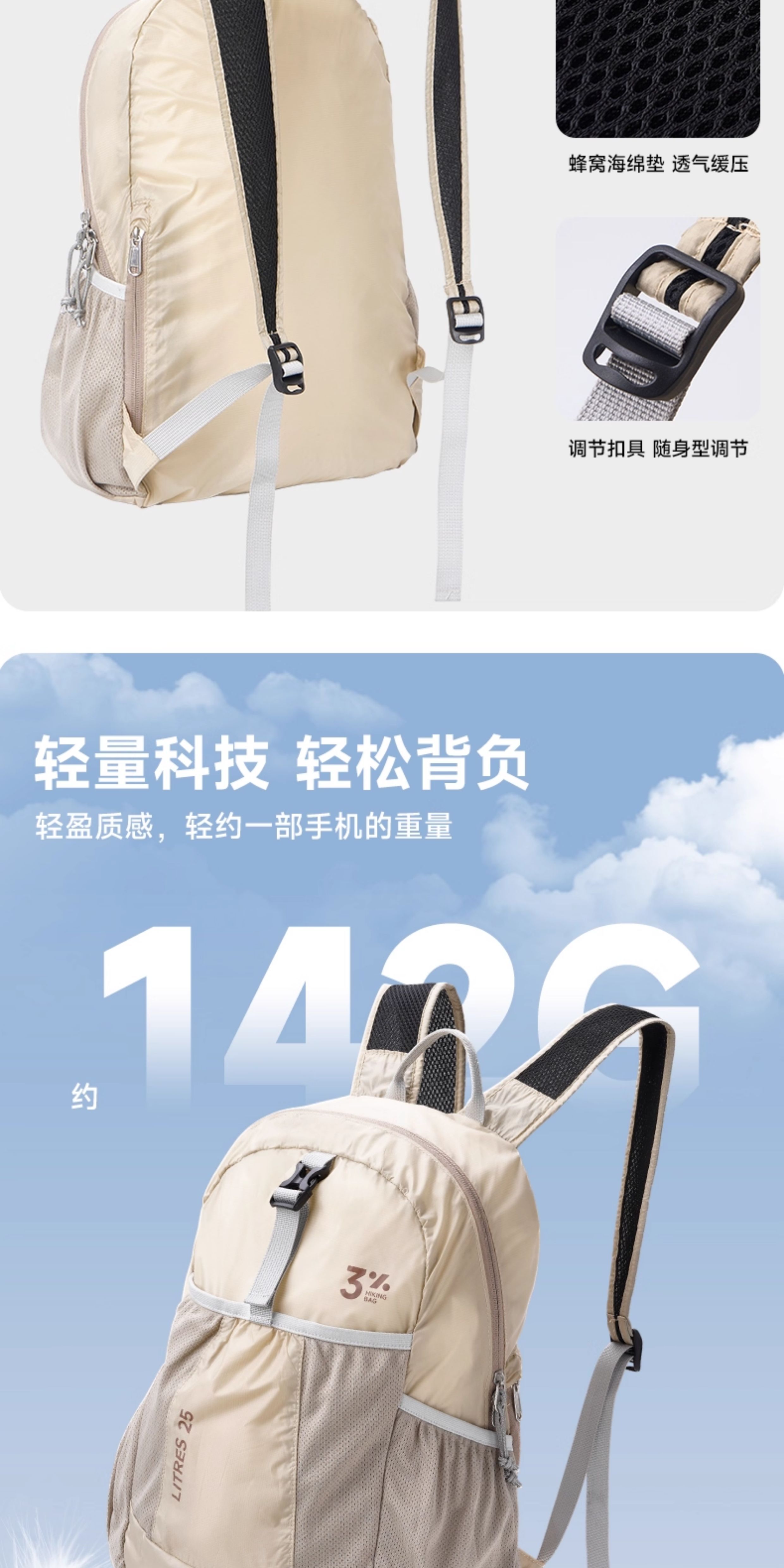 Backpack for Outdoor Hiking and Climbing, Women's Travel, Ultra-Light and Portable, New Summer Ultra-Thin Foldable Hiking Skin Bag