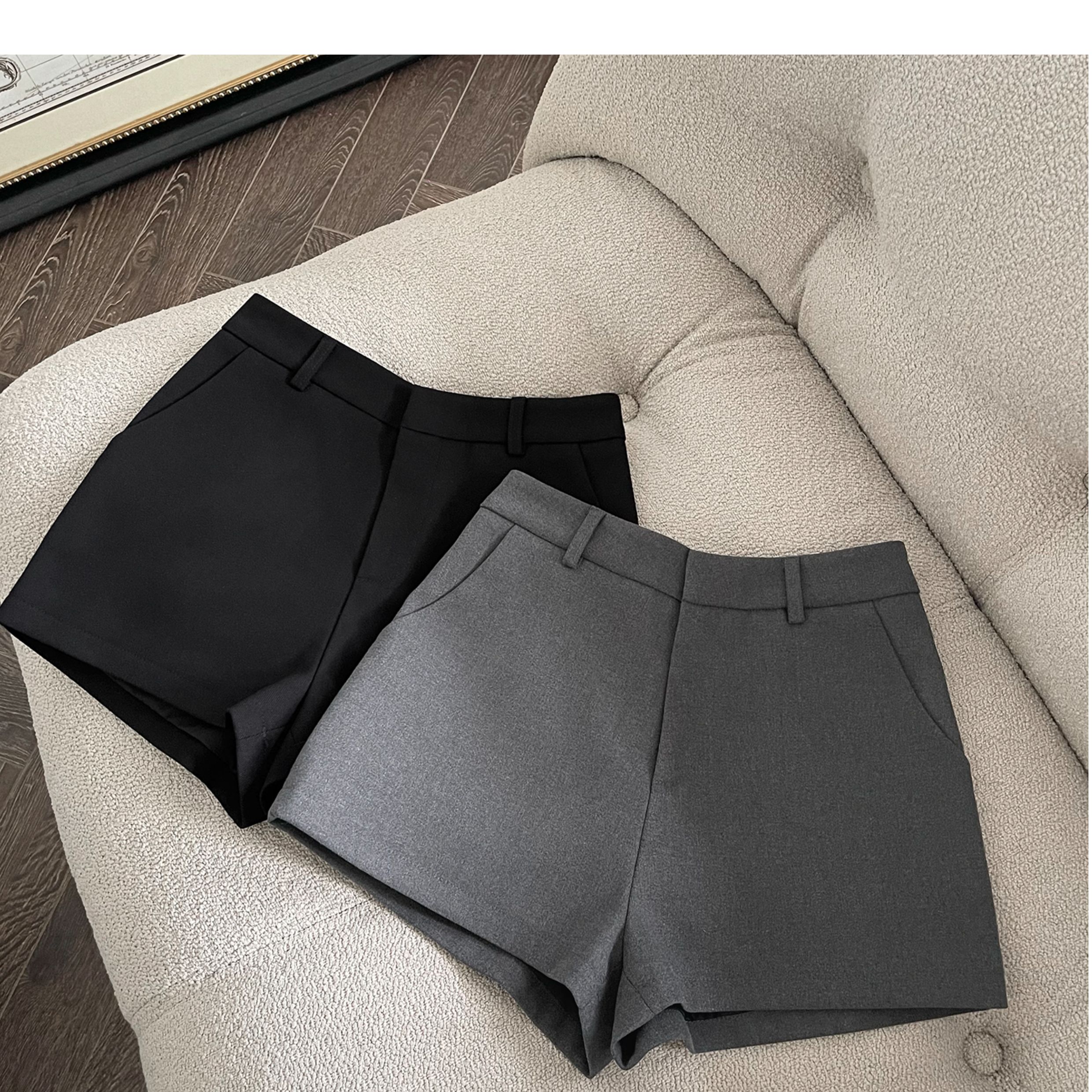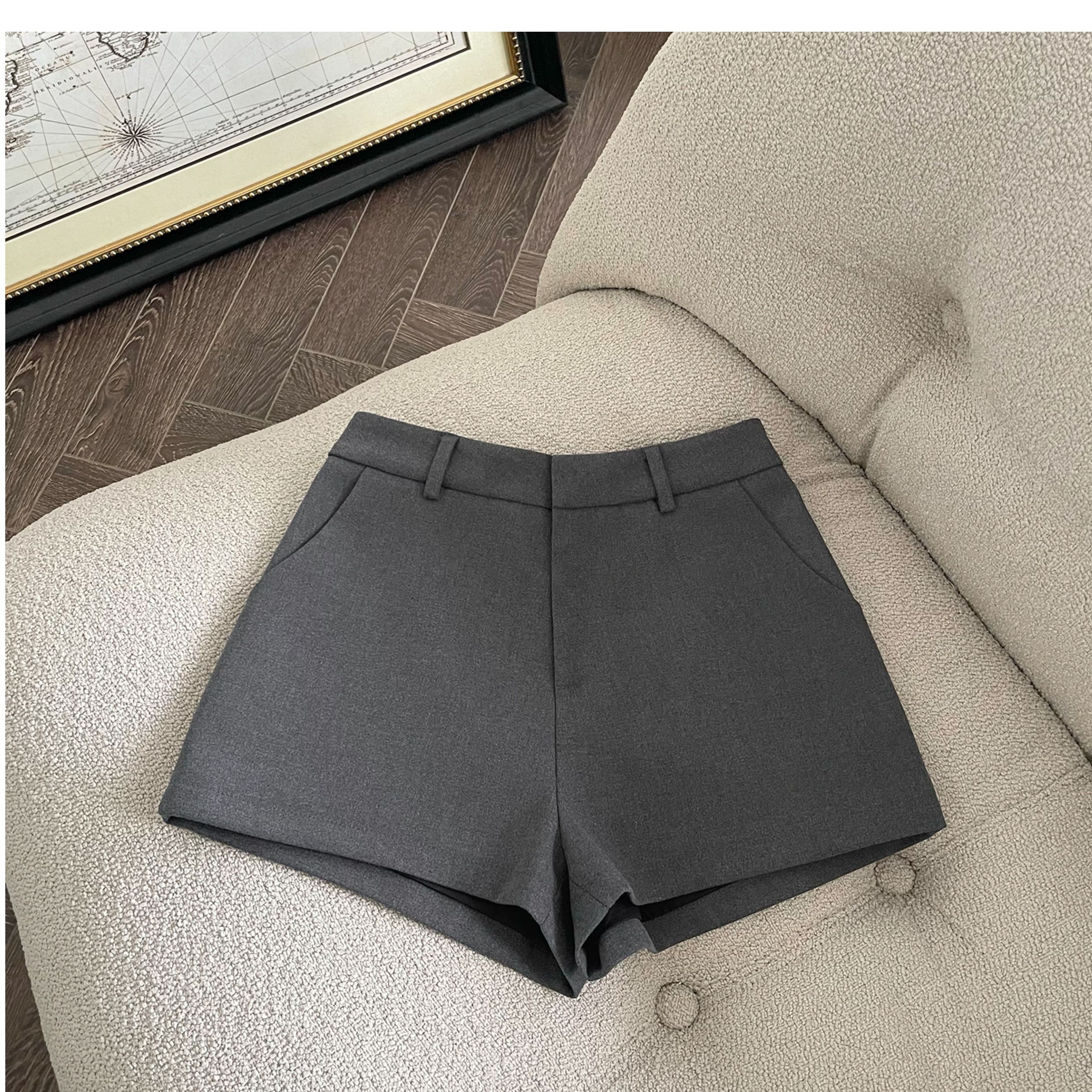 Fasc LAOSHU High-Waisted Black Suit Shorts for Women 2025 New Autumn and Winter Outerwear Gray Petite Slimming Hot Pants
