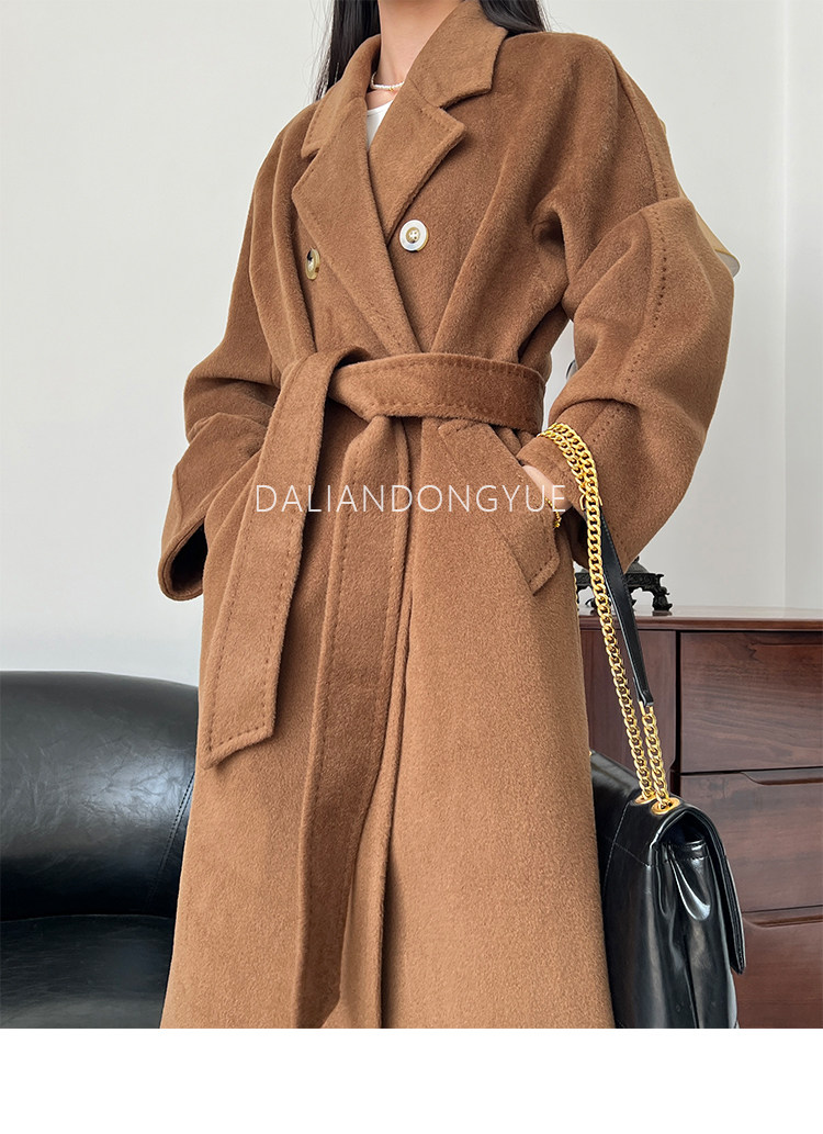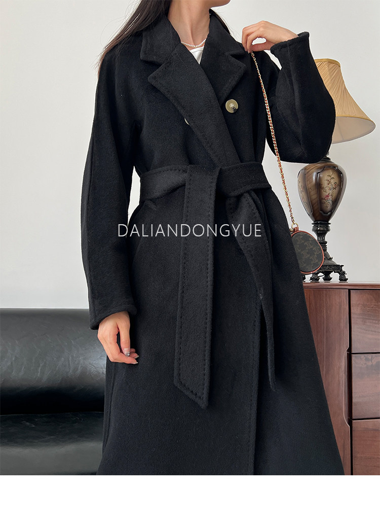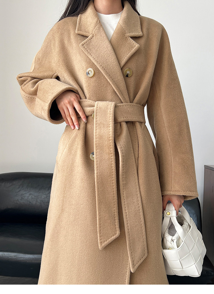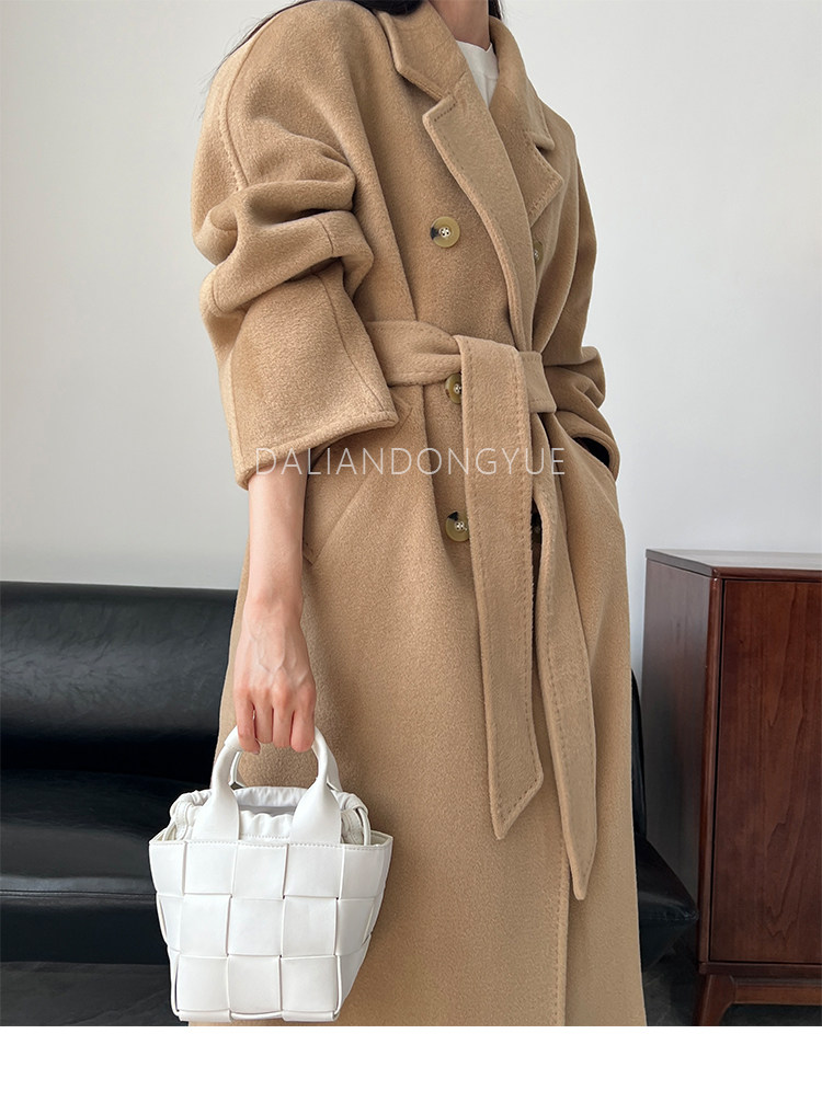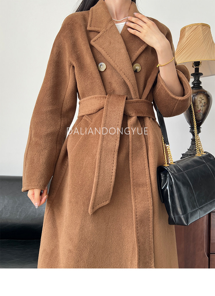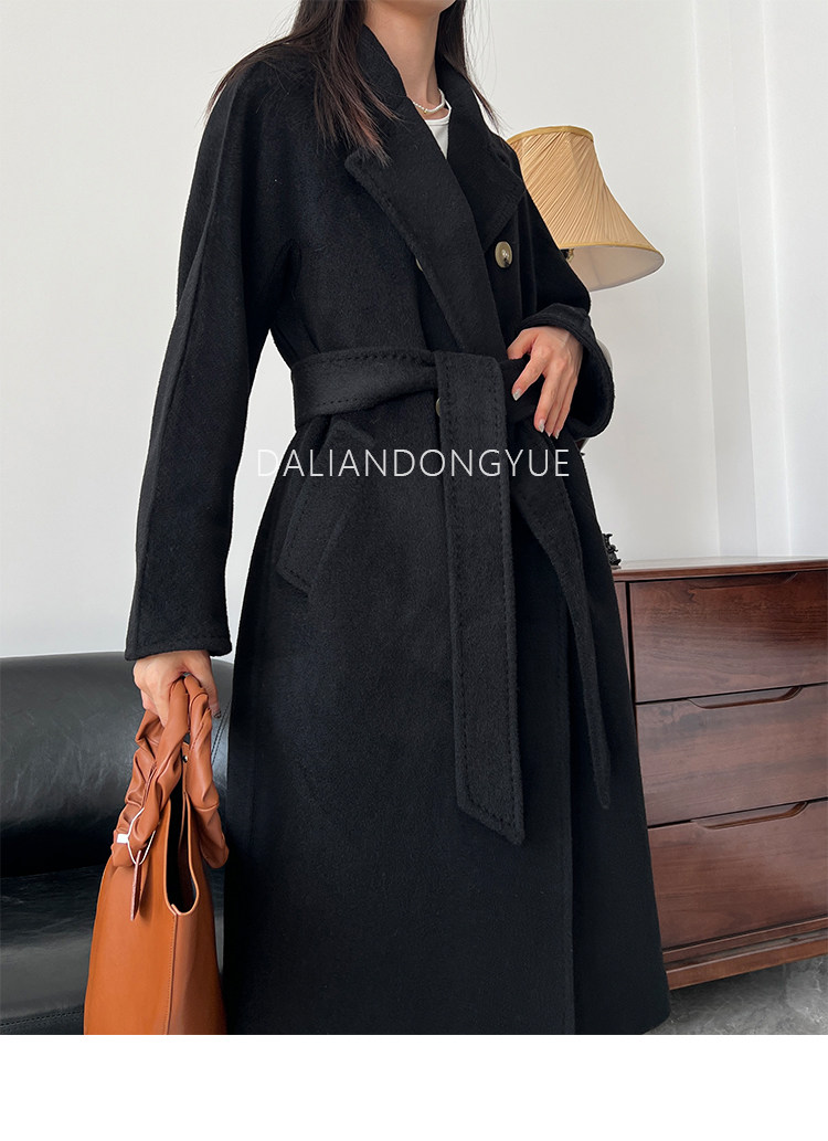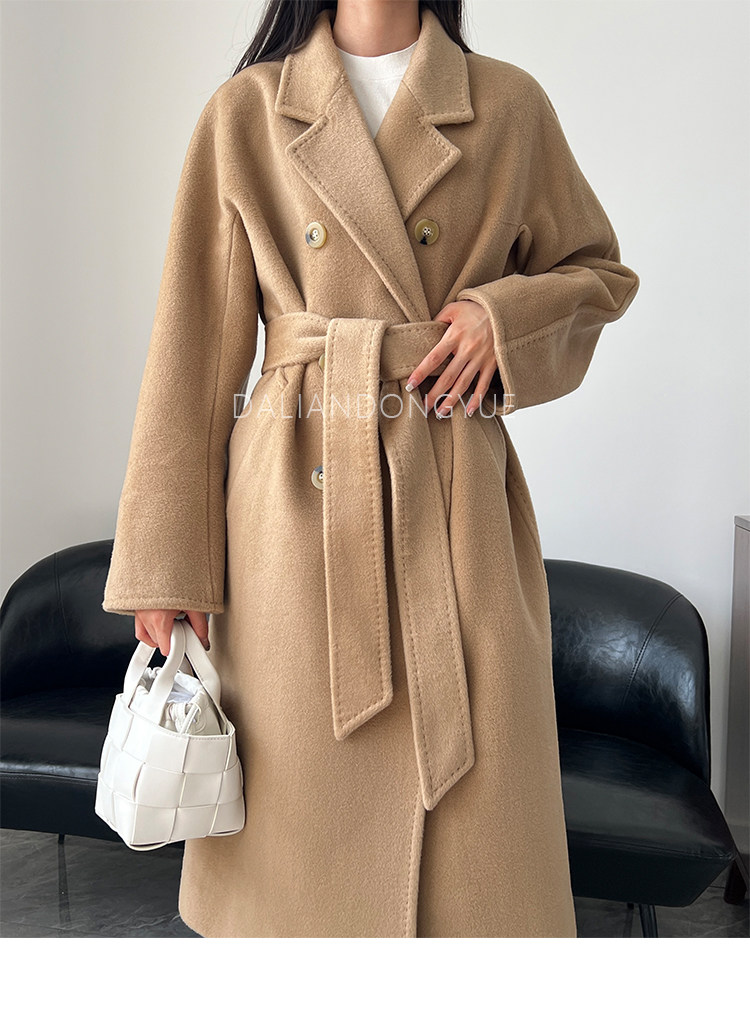 M Brand 101801 Classic Style Suli Cashmere Double-Sided Wool Coat for Women, Mid-Length Belted Woolen Coat