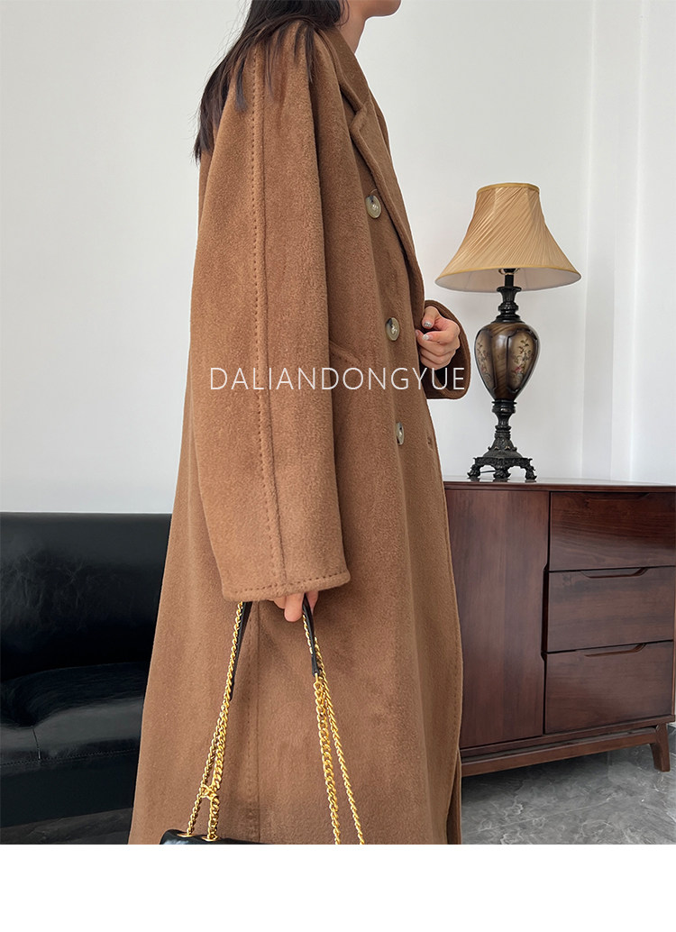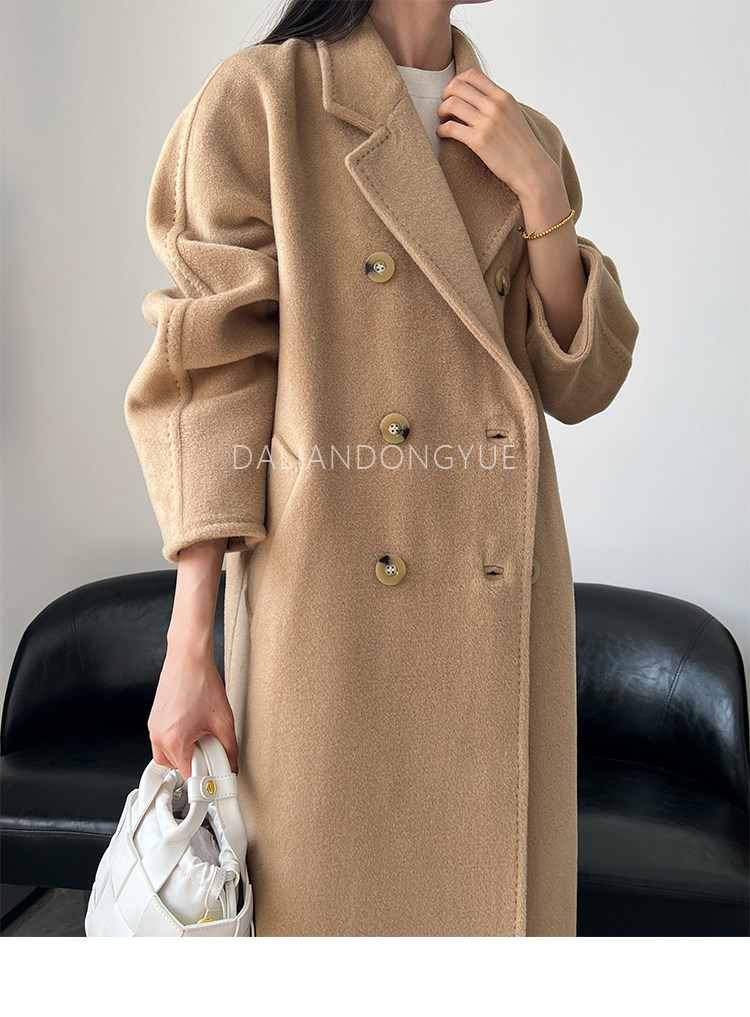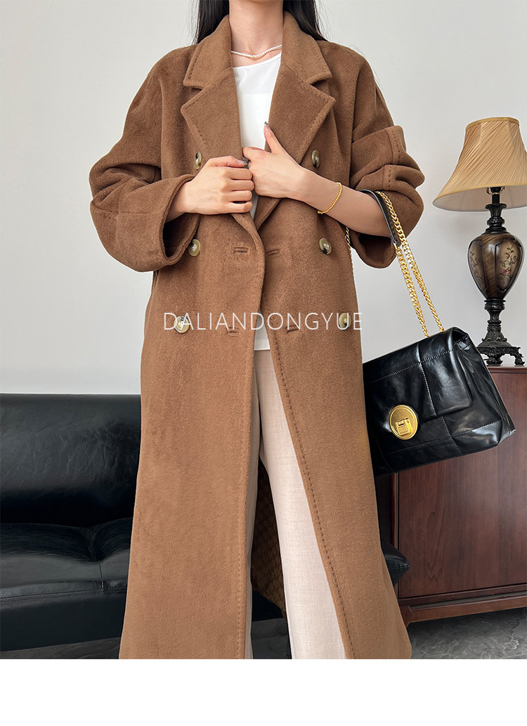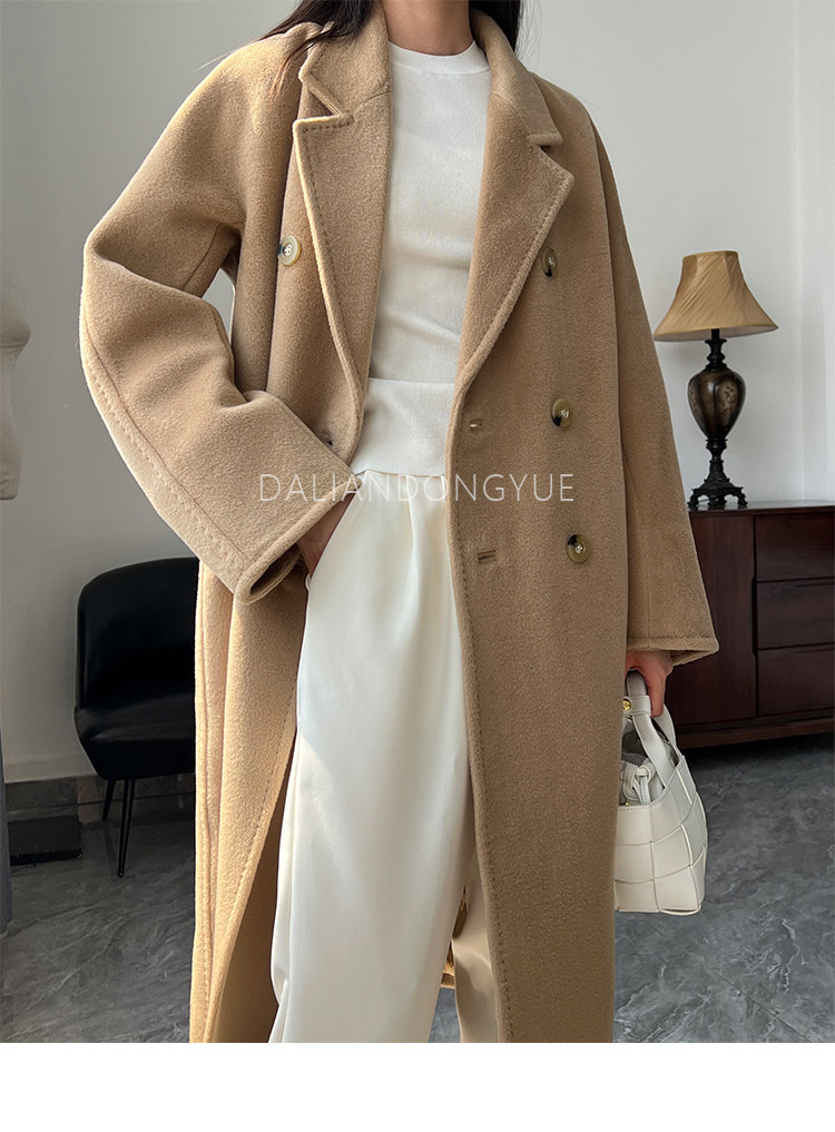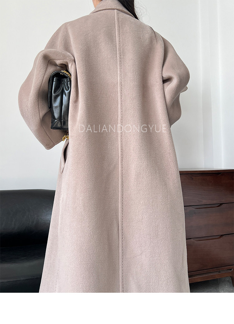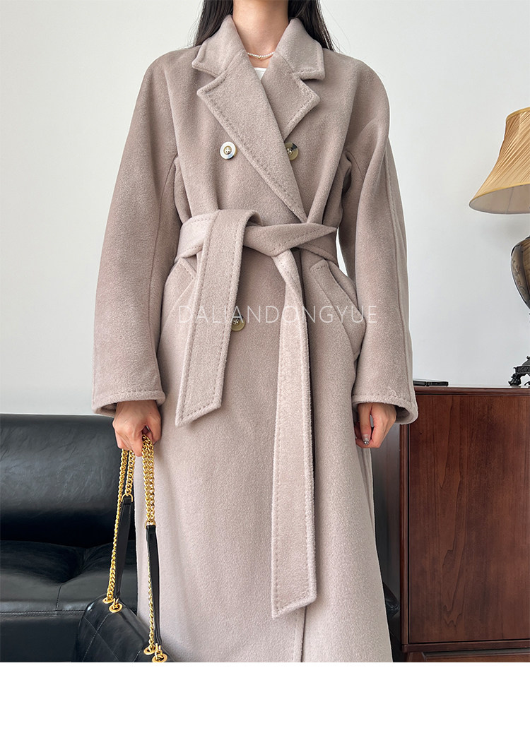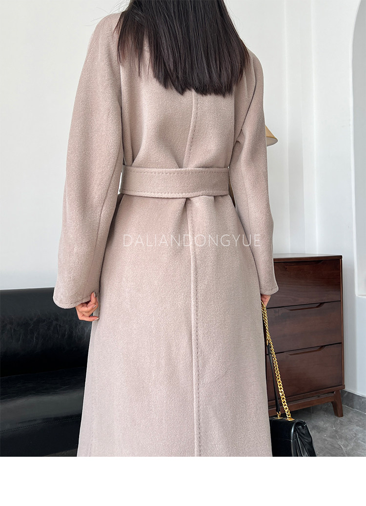 M Brand 101801 Classic Style Suli Cashmere Double-Sided Wool Coat for Women, Mid-Length Belted Woolen Coat