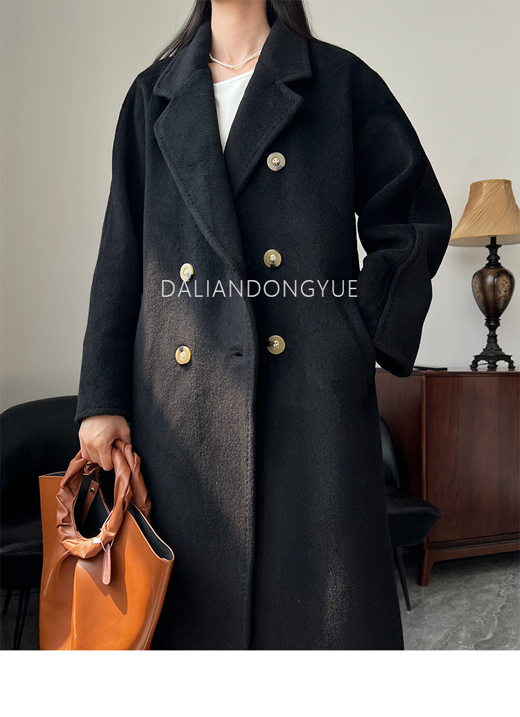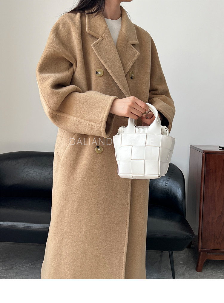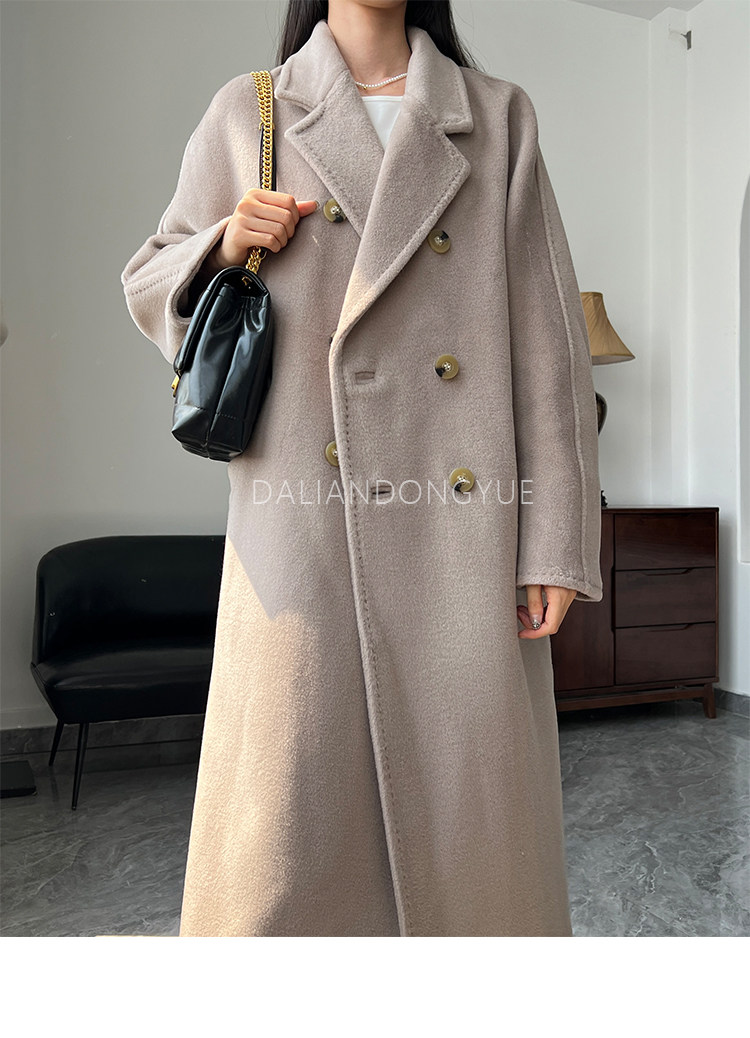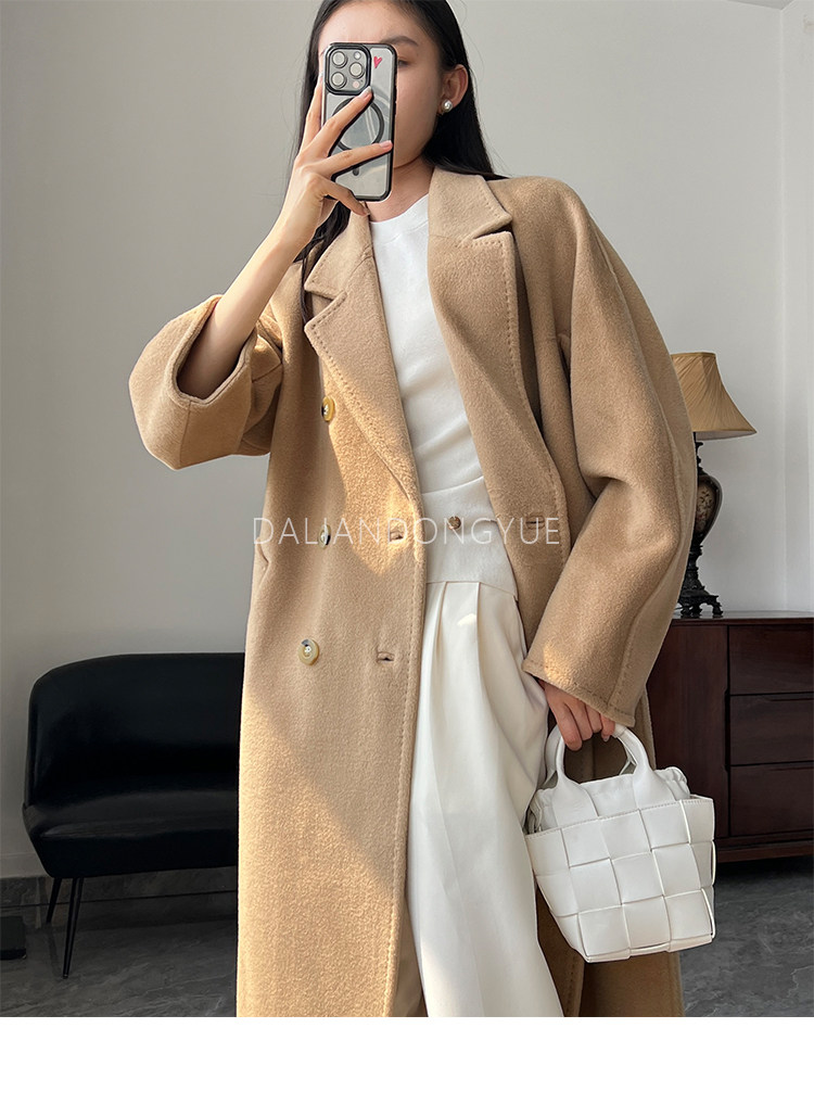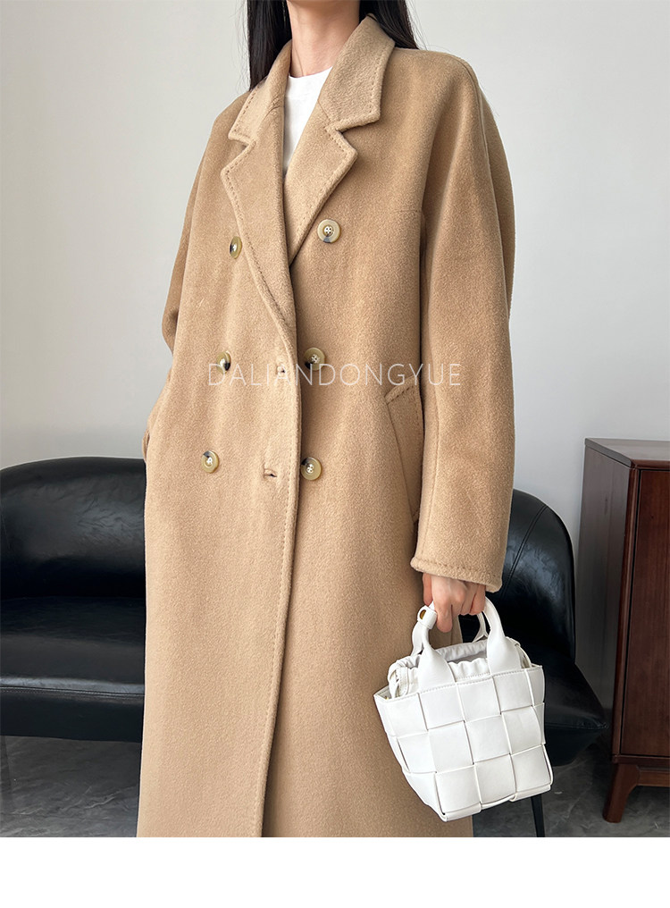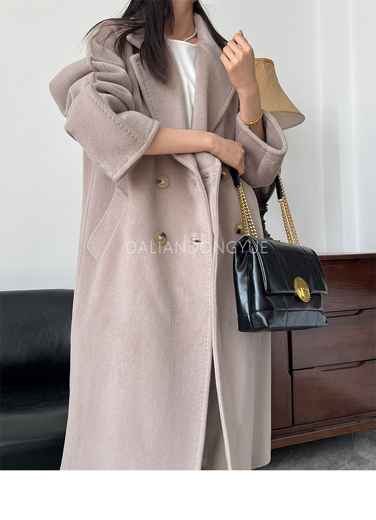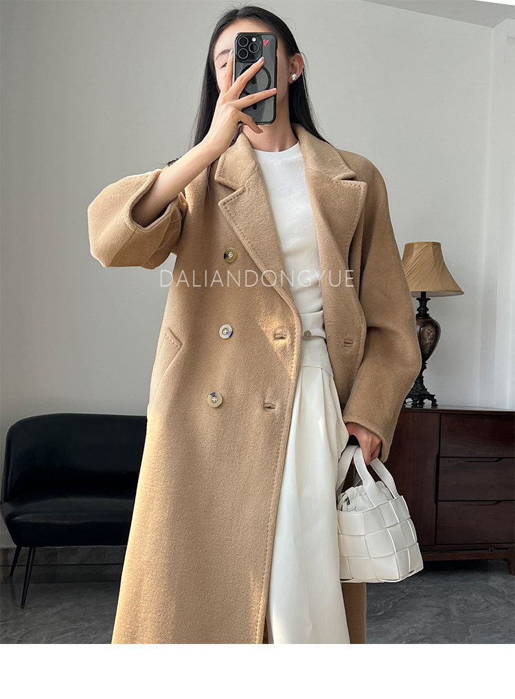 M Brand 101801 Classic Style Suli Cashmere Double-Sided Wool Coat for Women, Mid-Length Belted Woolen Coat