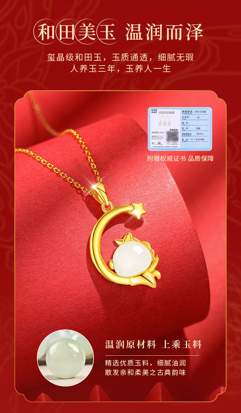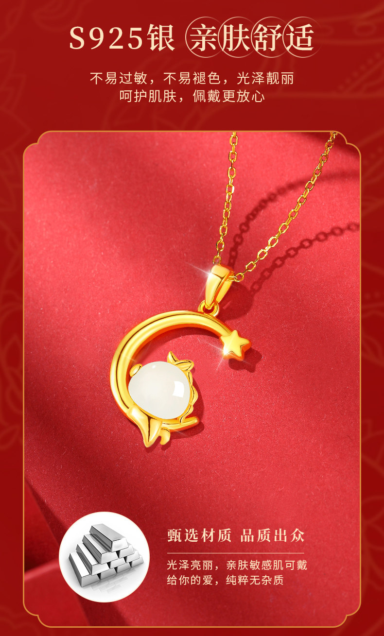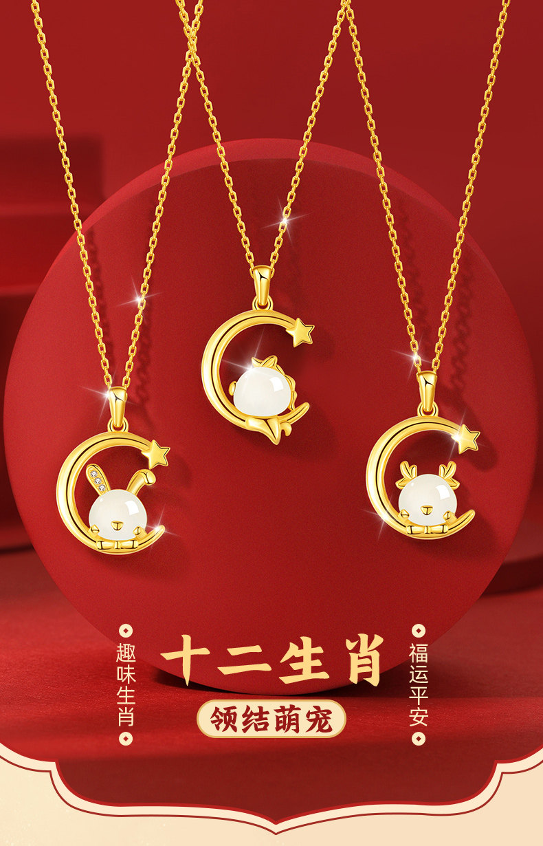 Twelve Zodiac Hetian Jade Star and Moon Necklace for Women 2026 New Model Pure Silver Jade Pendant Birthday Gift for Girlfriend