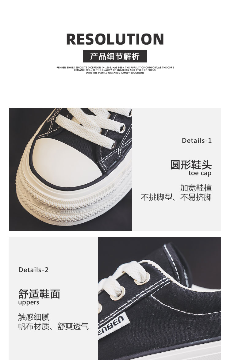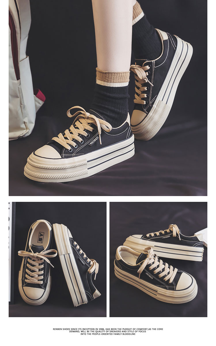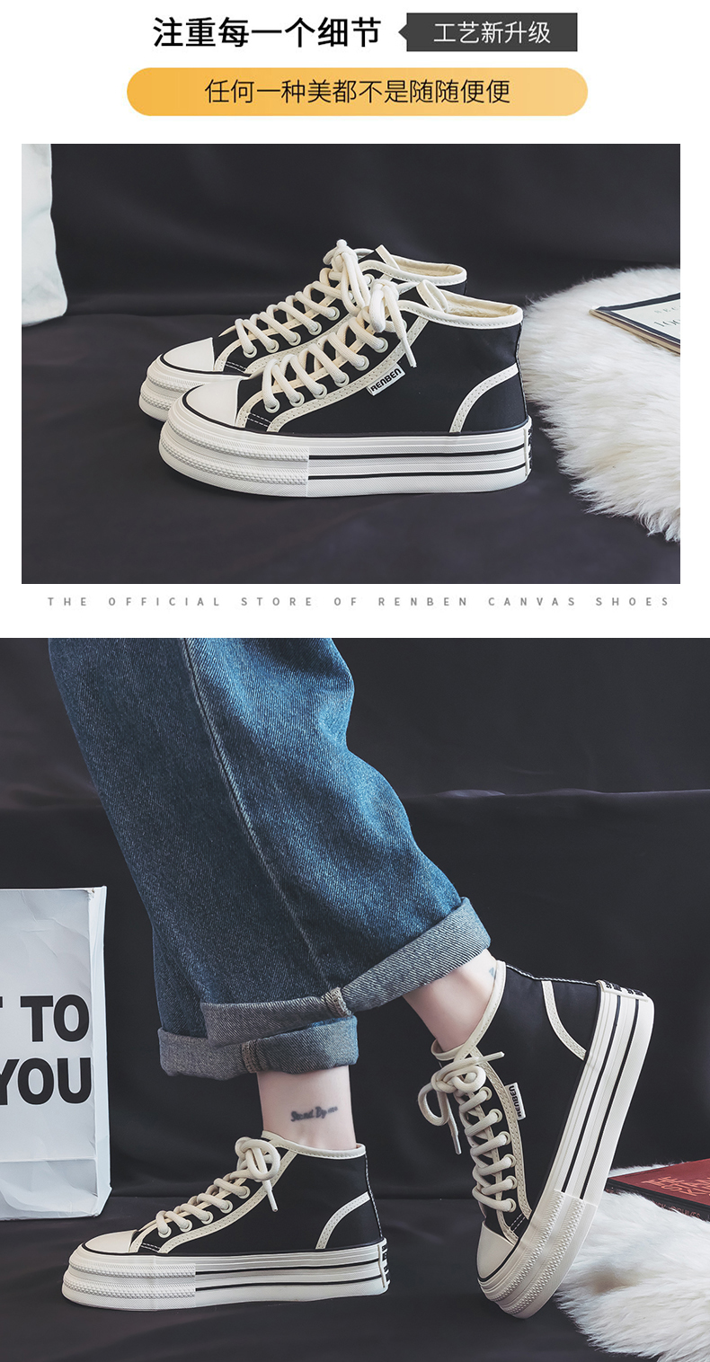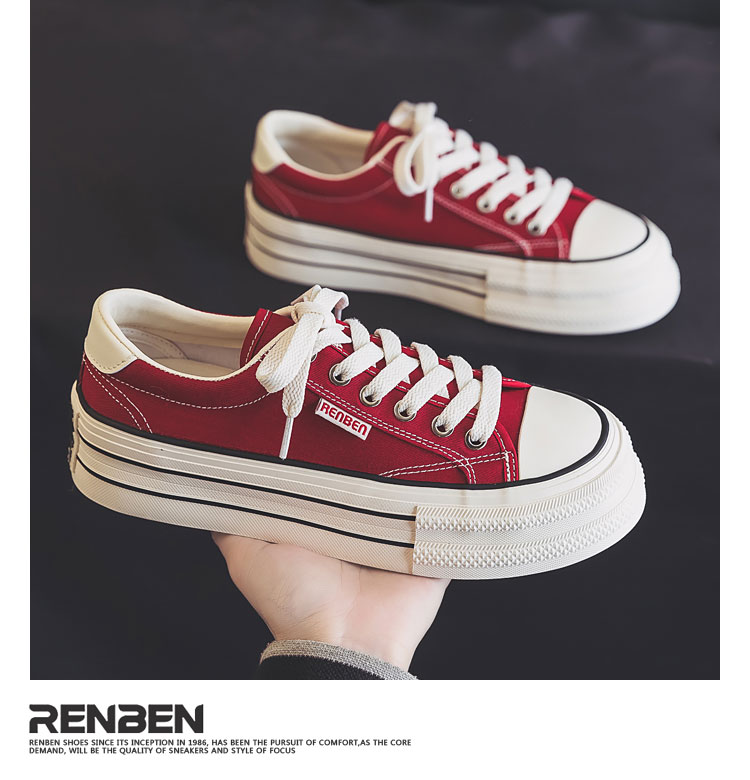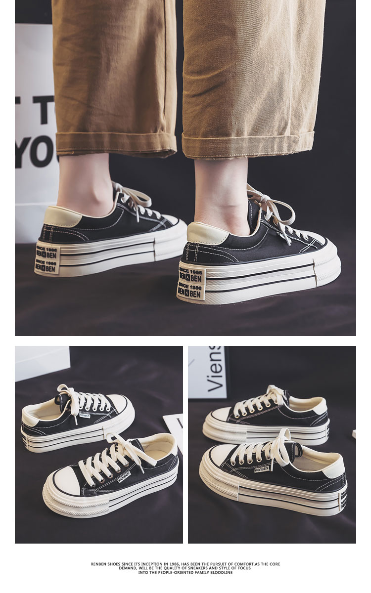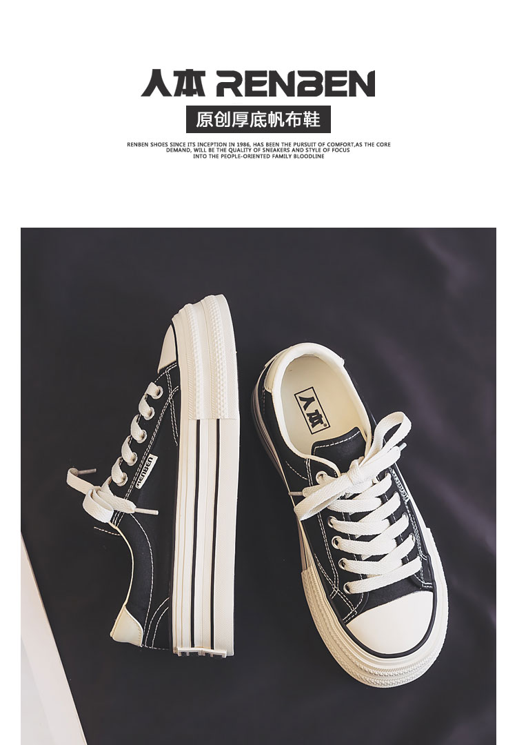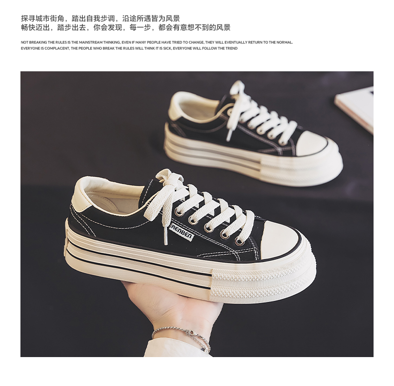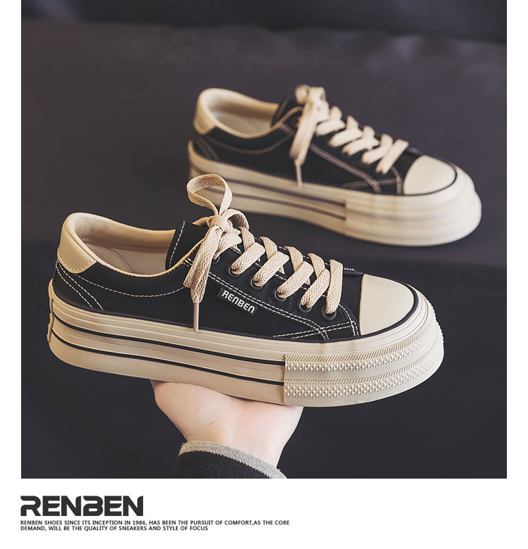 Renben Official Genuine Thick-Soled Canvas Shoes for Women 2025 New Autumn and Winter Fleece-Lined Warm Cotton Shoes Black Height-Increasing Sneakers