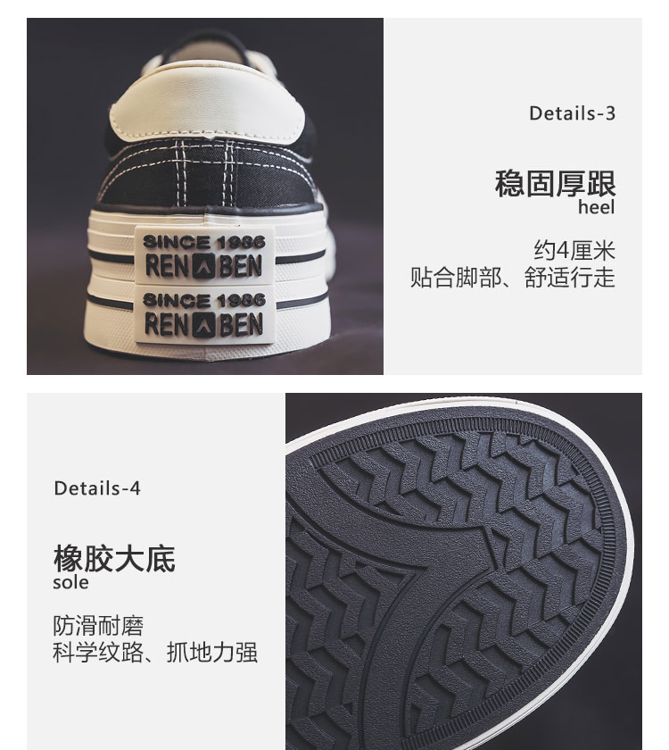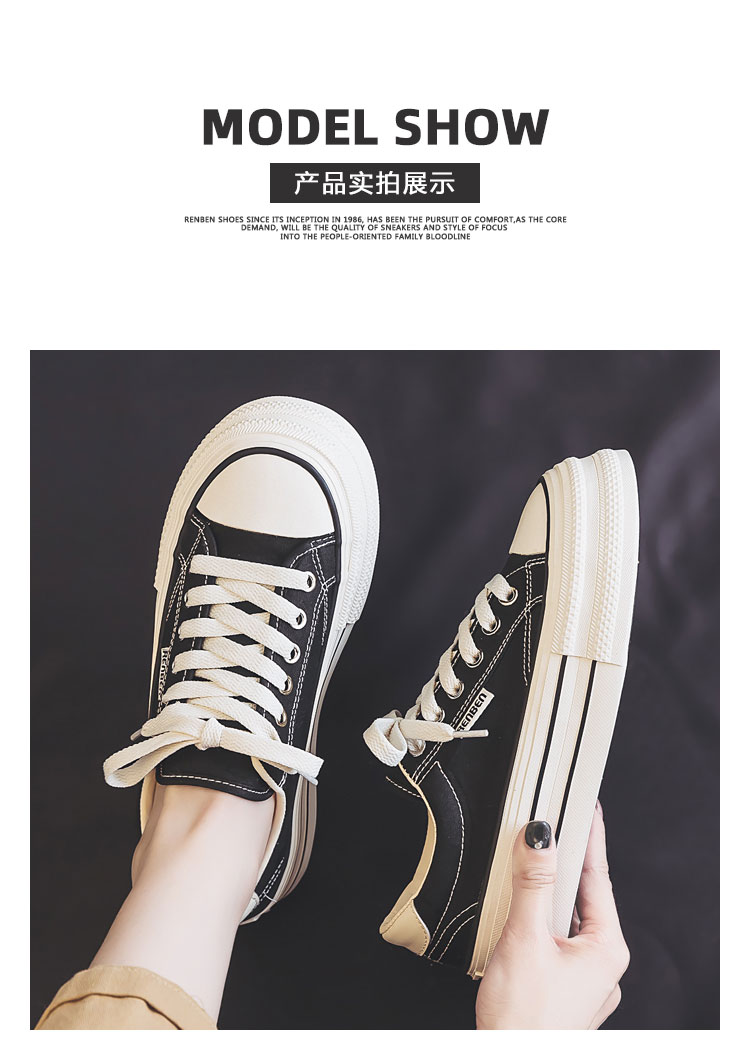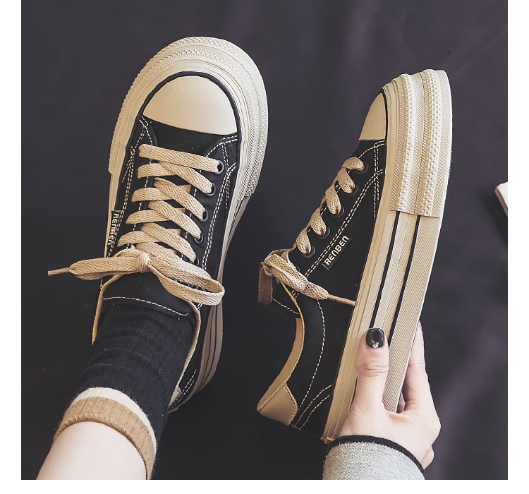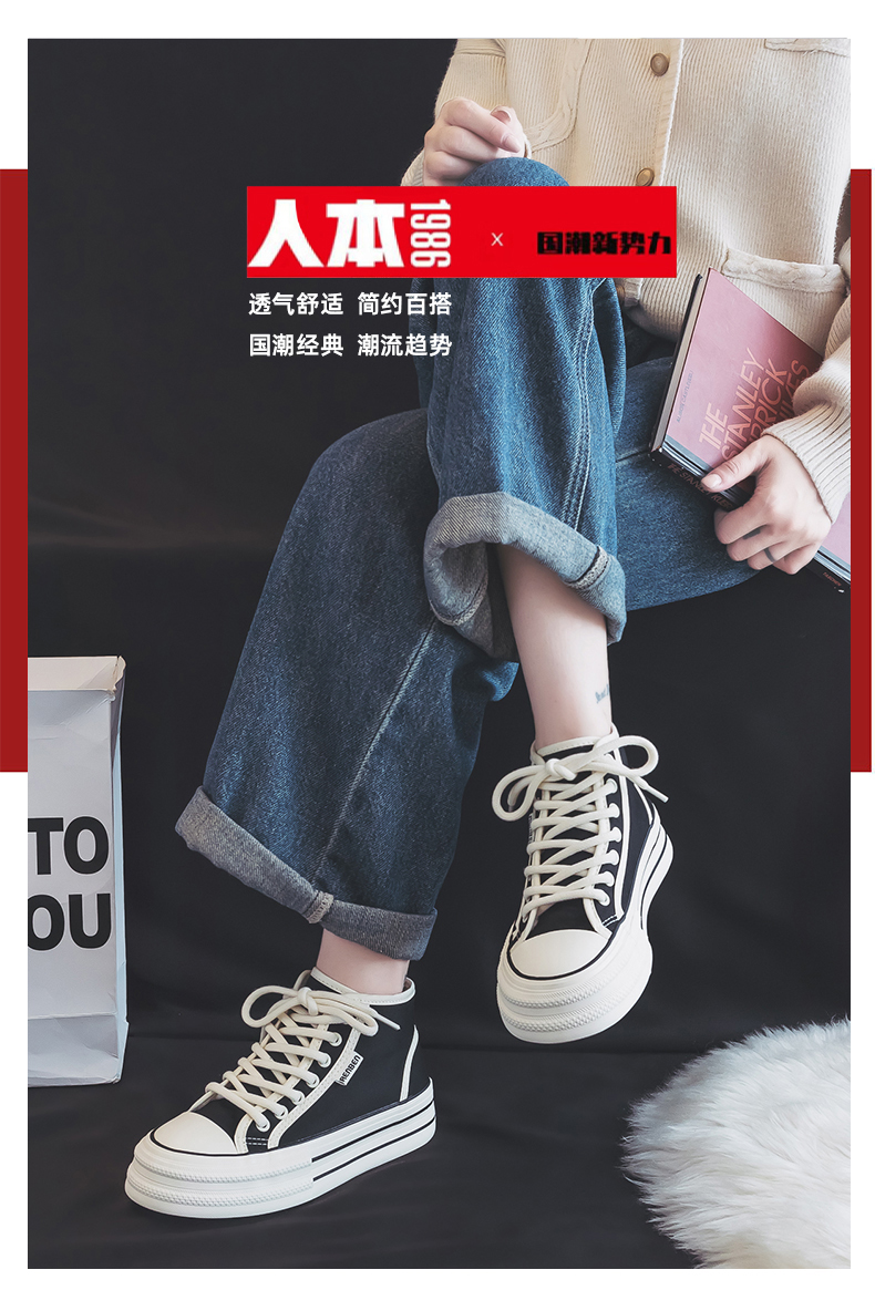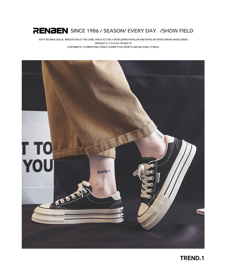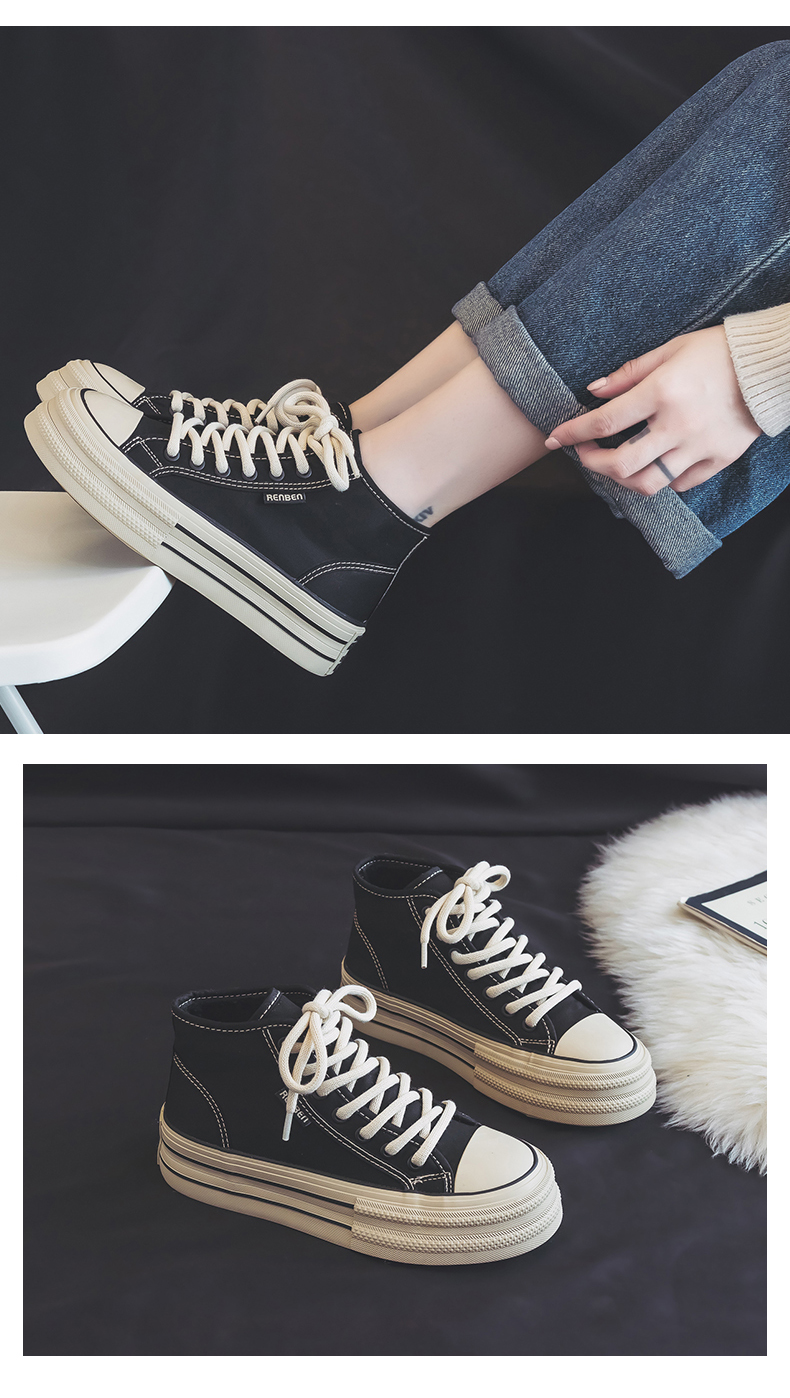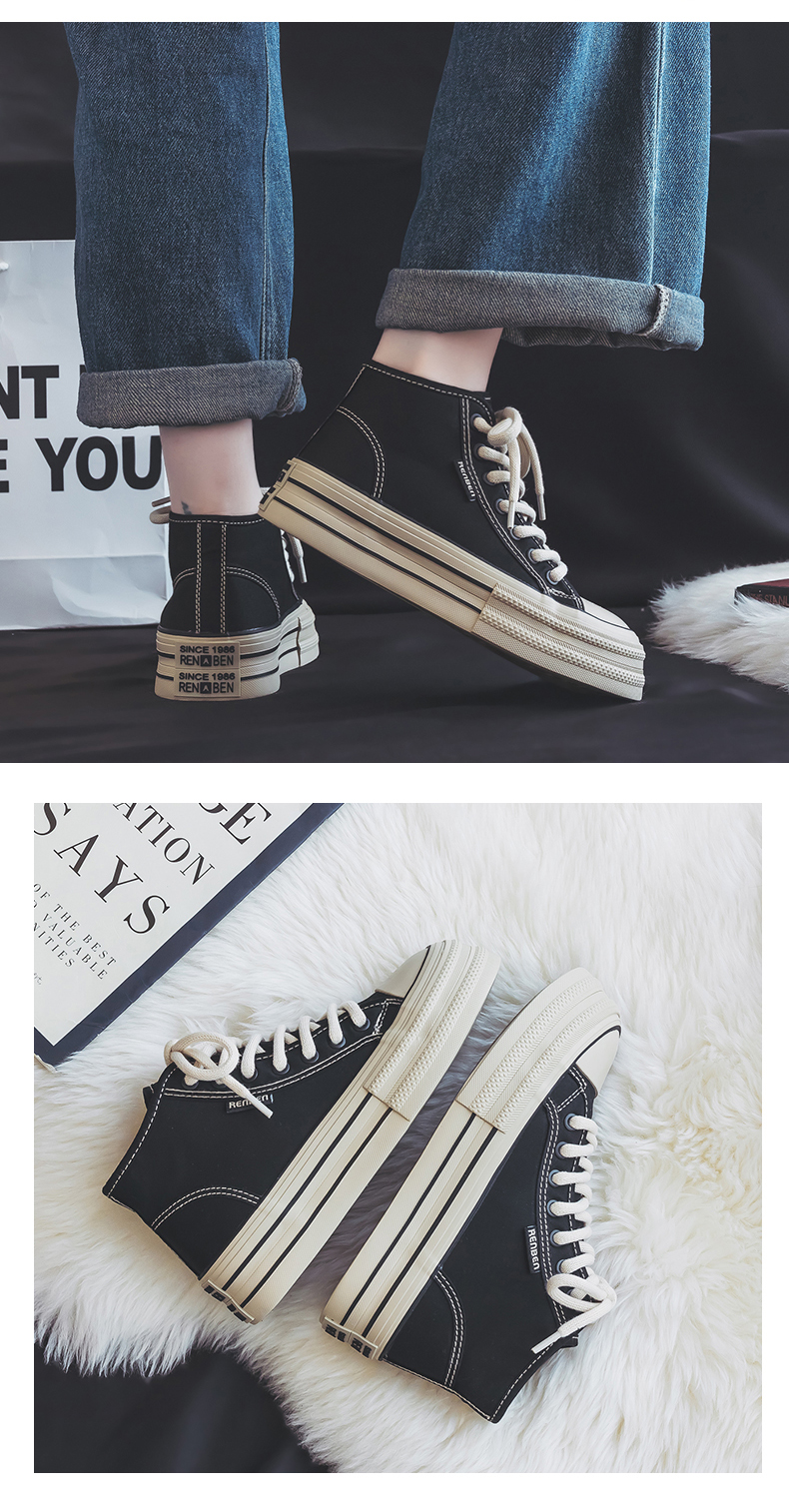 Renben Official Genuine Thick-Soled Canvas Shoes for Women 2025 New Autumn and Winter Fleece-Lined Warm Cotton Shoes Black Height-Increasing Sneakers