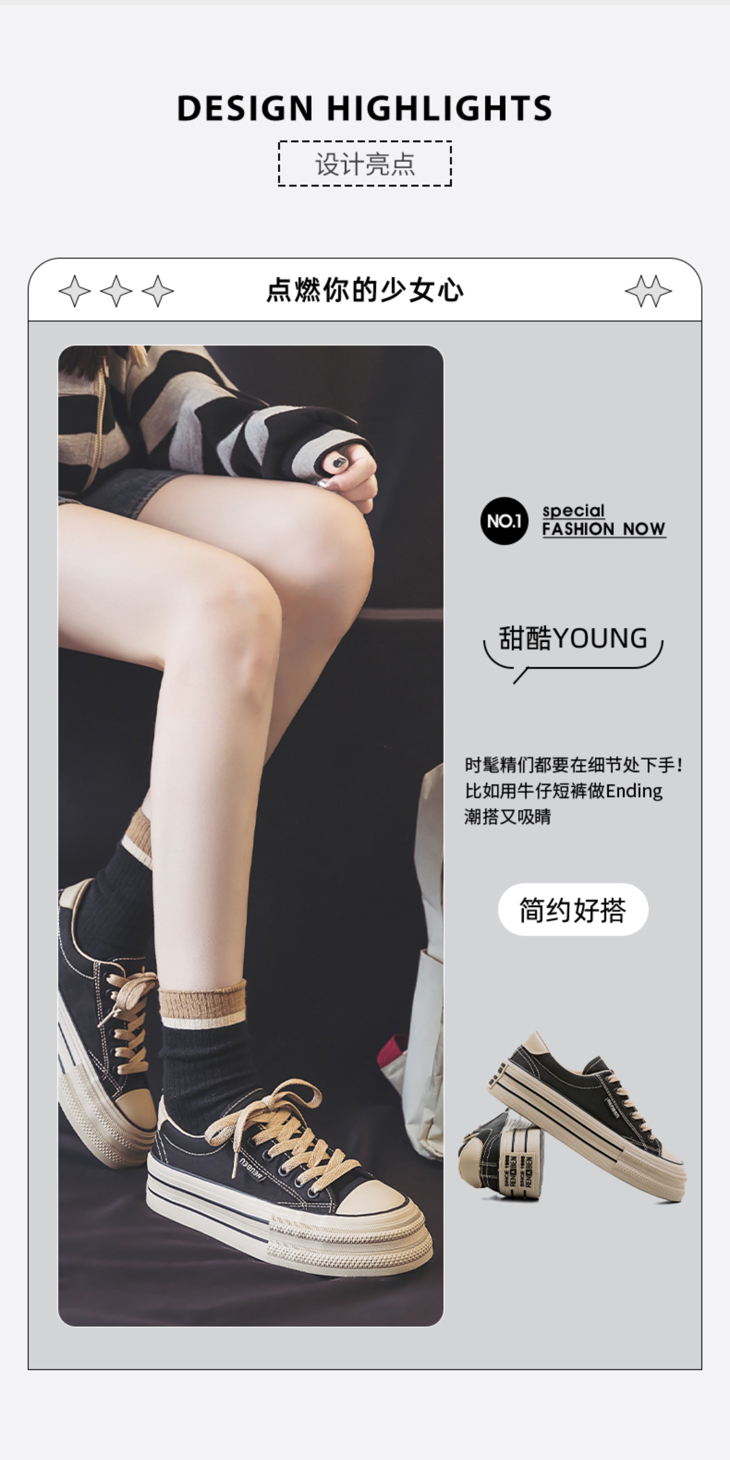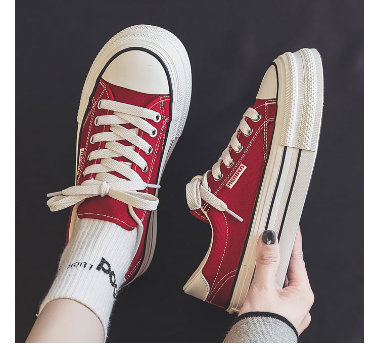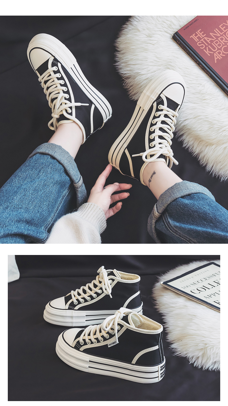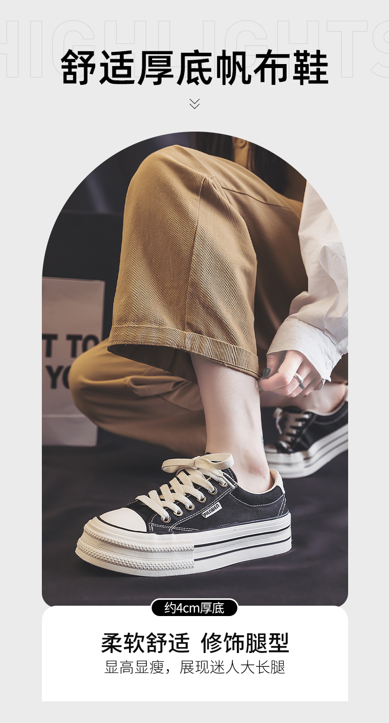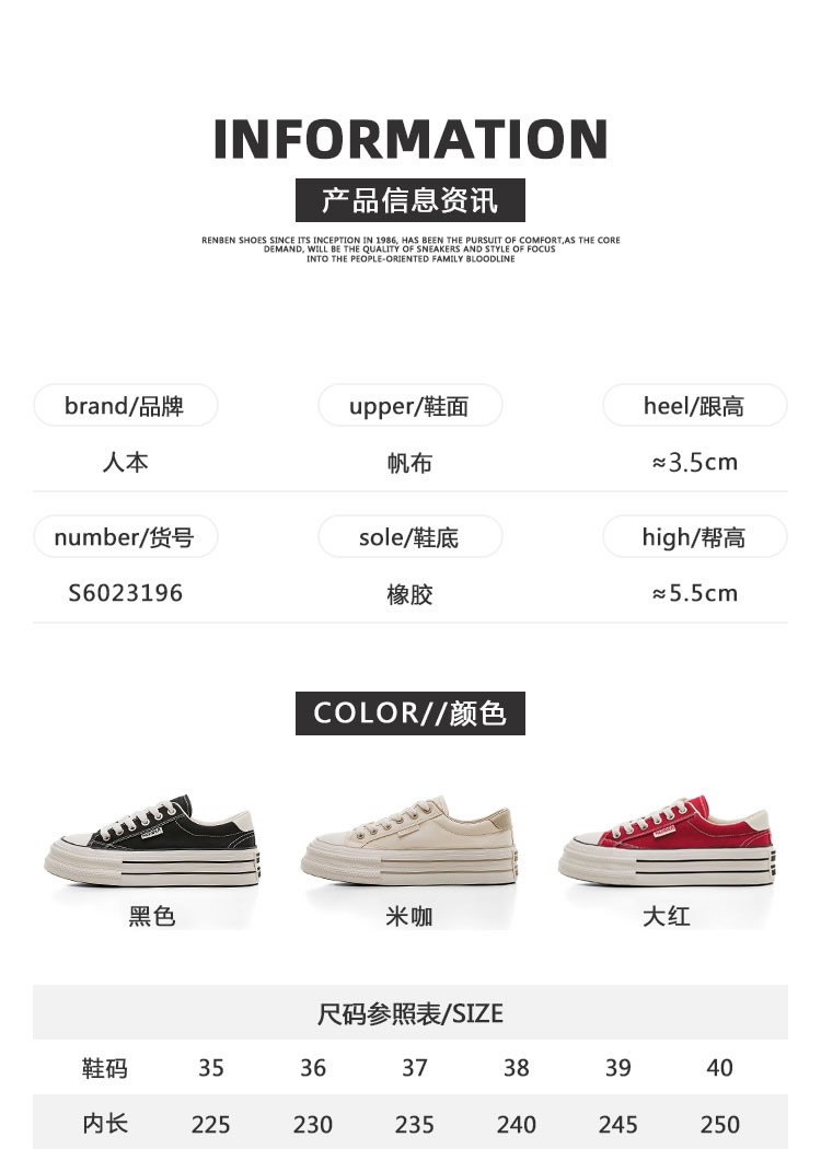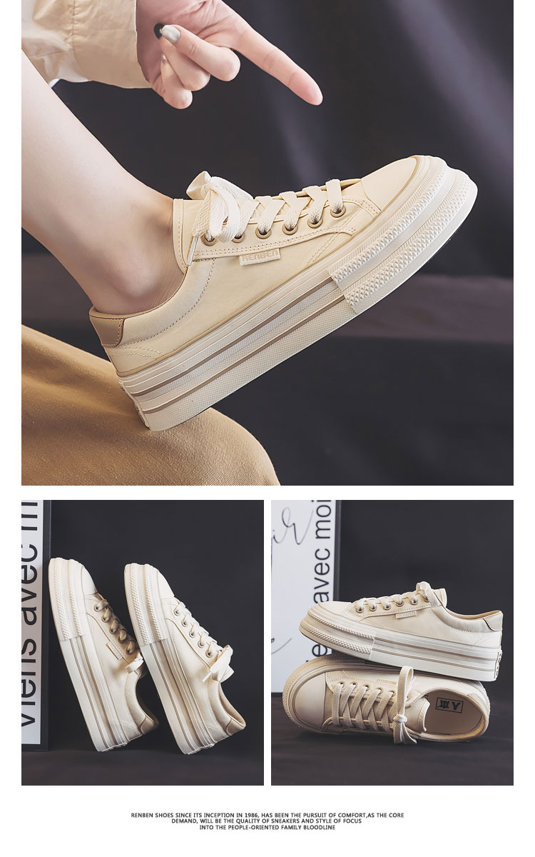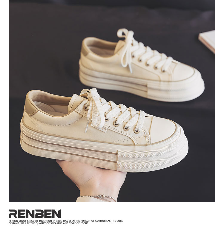 Renben Official Genuine Thick-Soled Canvas Shoes for Women 2025 New Autumn and Winter Fleece-Lined Warm Cotton Shoes Black Height-Increasing Sneakers