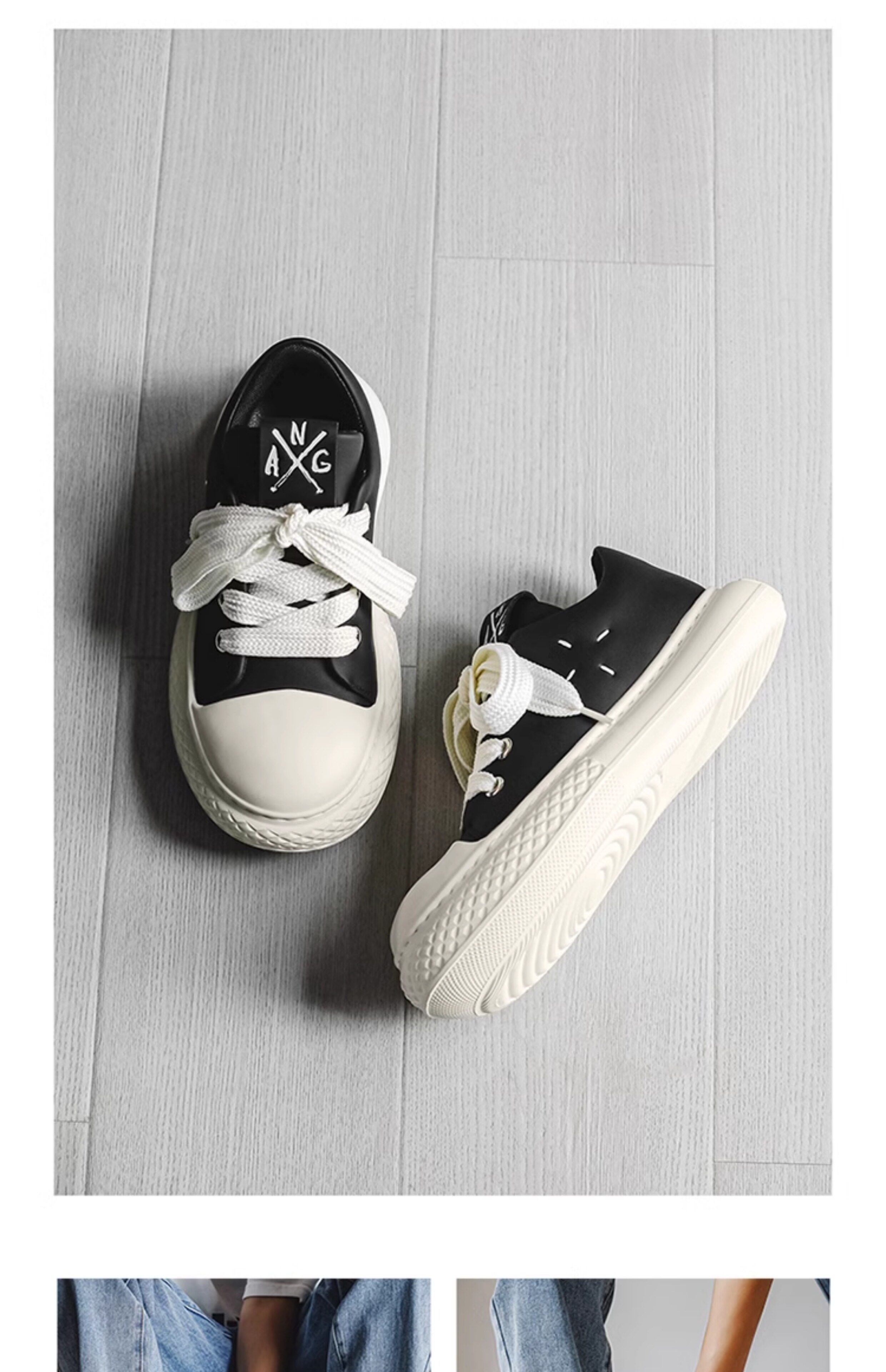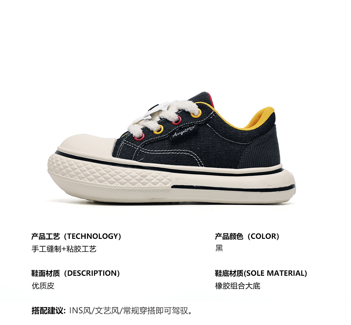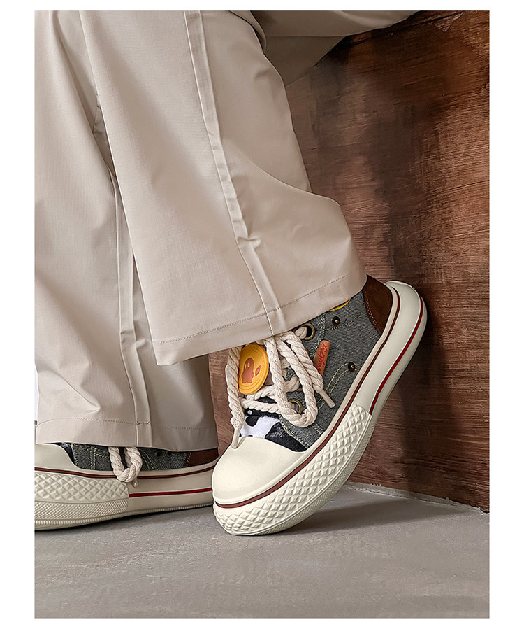 Chinese-Style Mickey Collaboration Ugly-Cute Big-Head Black Canvas Shoes for Men and Women, Summer Thick-Soled Height-Increasing Couple Casual Sneakers