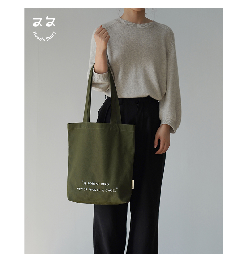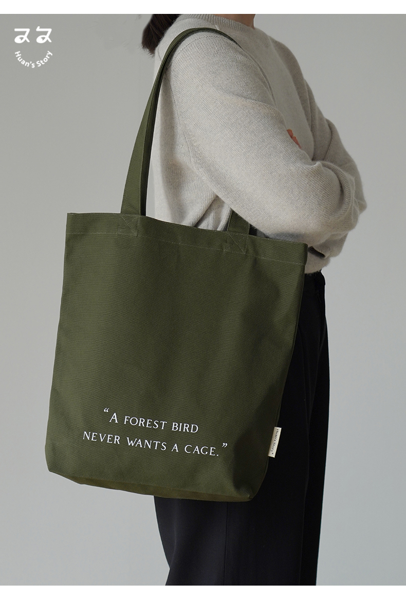 Huan Original Canvas Bag 2024 New English Canvas Bag ins Tote Bag Shoulder Bag Men and Women Simple Literary