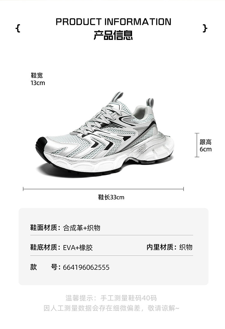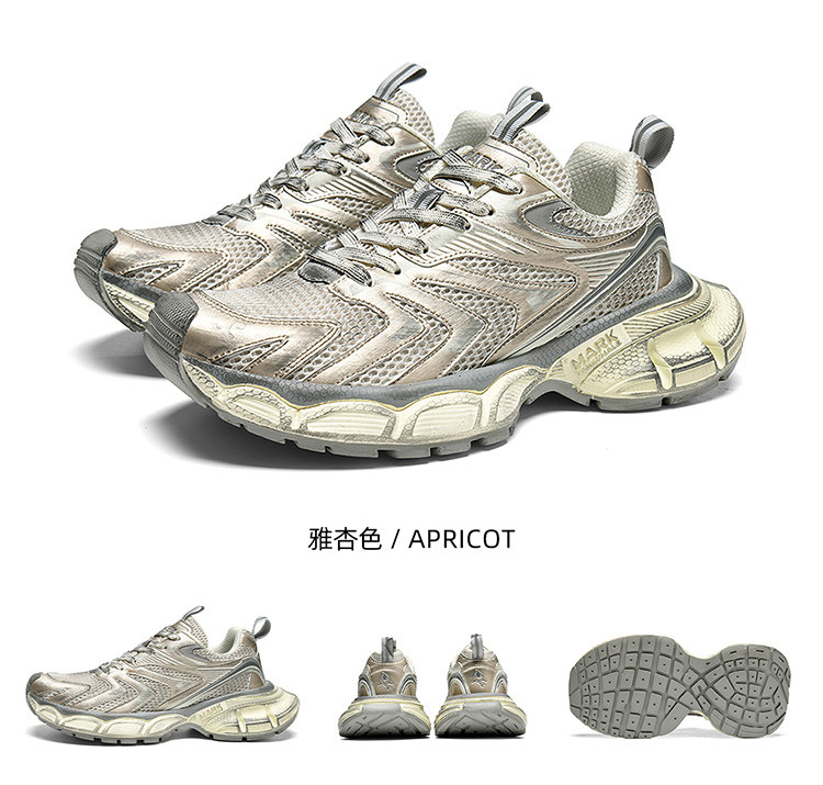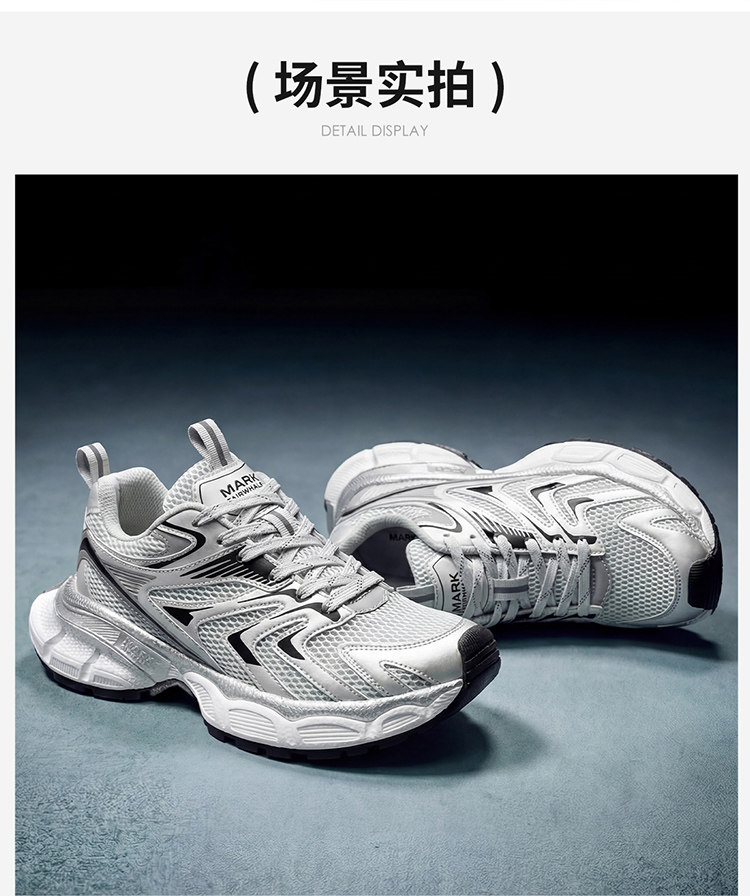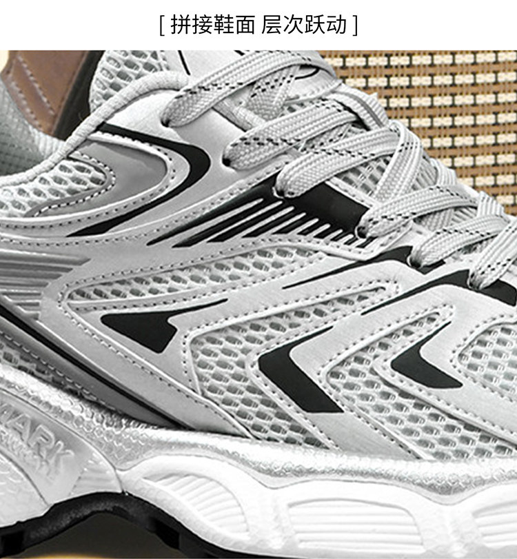 Mark Huafei Men's Shoes 2026 New Height-Increasing Men's Dad Shoes Summer Breathable Sneakers Silver Shoes for Men