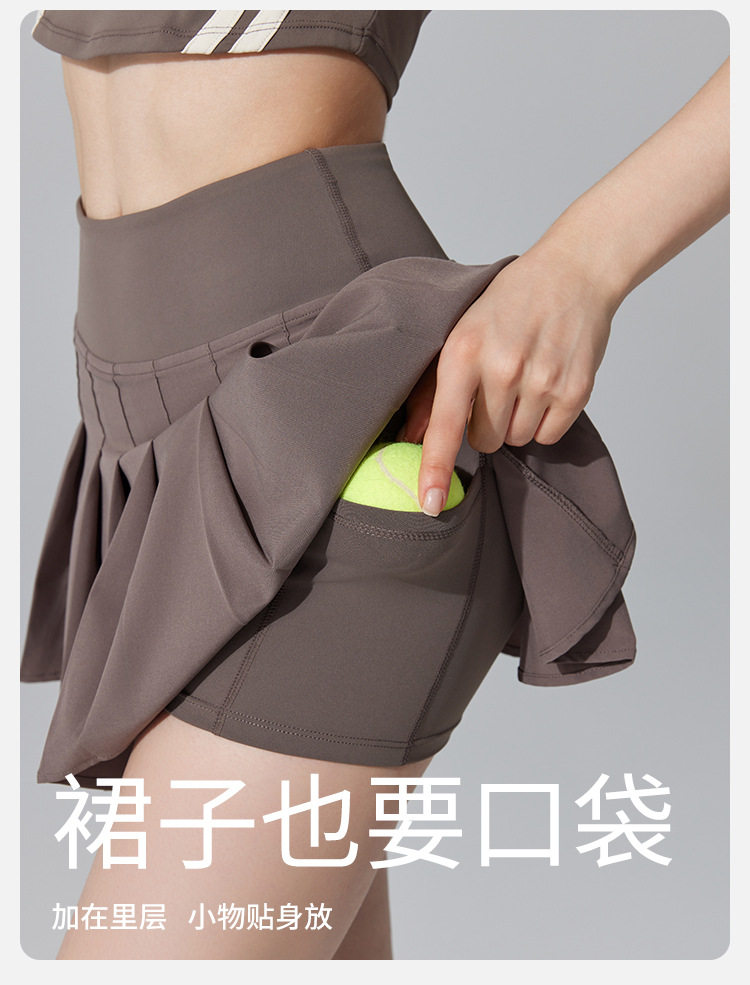 Pilates Dance Sports Anti-Exposure Two-In-One High-Waisted Slimming Pocket Tennis Skirt Loose Ping Pong Skirt