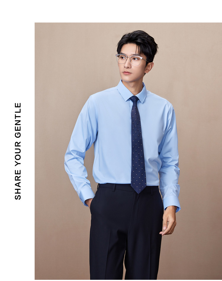 Heilan Home Wrinkle-Free Non-Iron Shirt for Men, Business Formal Long-Sleeve Short-Sleeve Suit Inner Shirt, Workwear Shirt