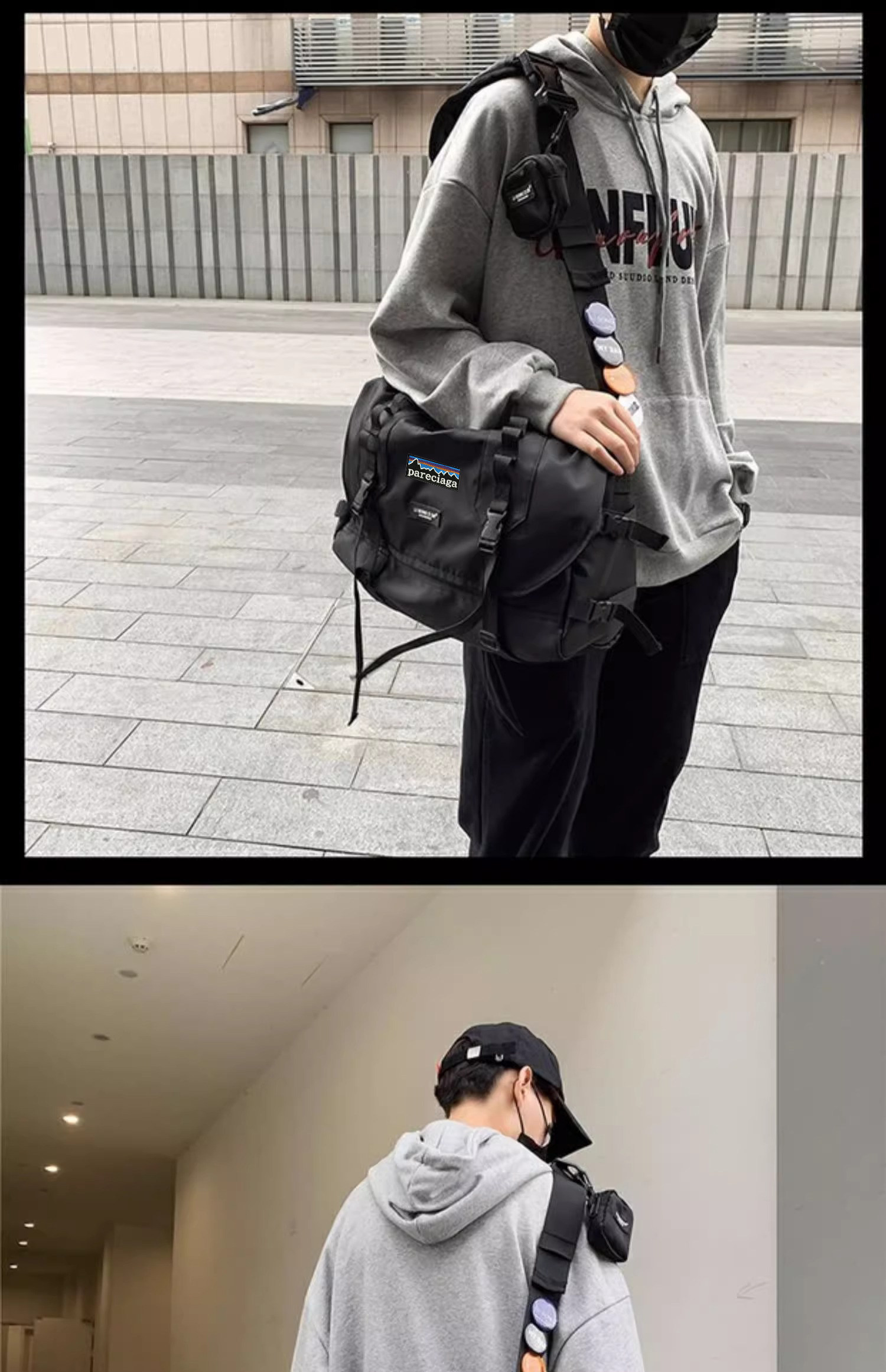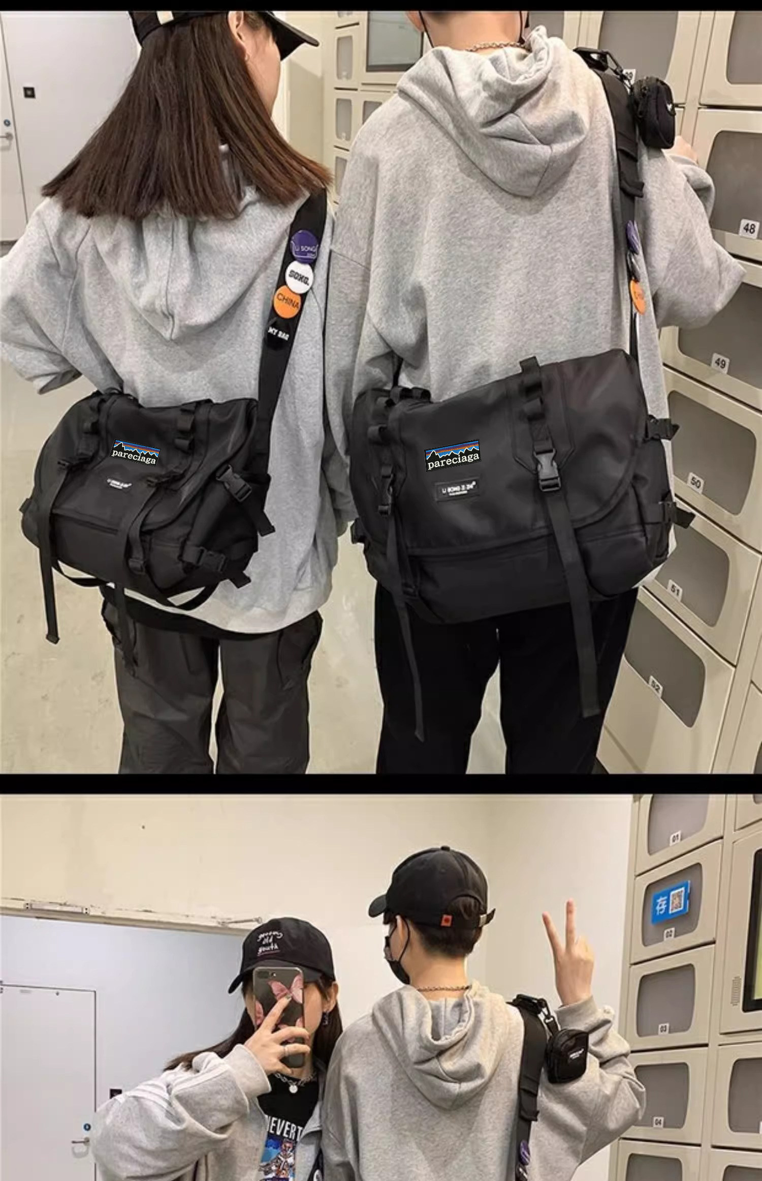 Bata Genuinepareciaga Versatile Large-Capacity Crossbody Bag Casual Nylon Functional Bag Men's and Women's Work Bag