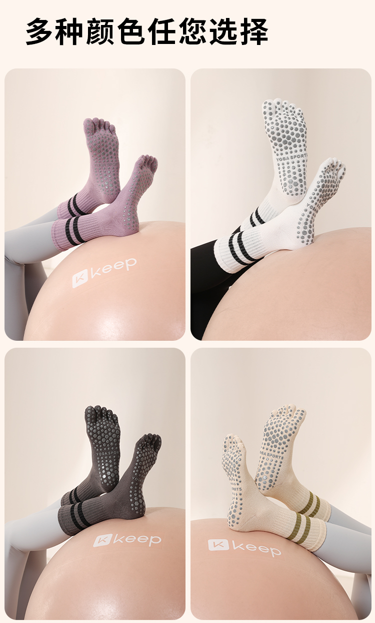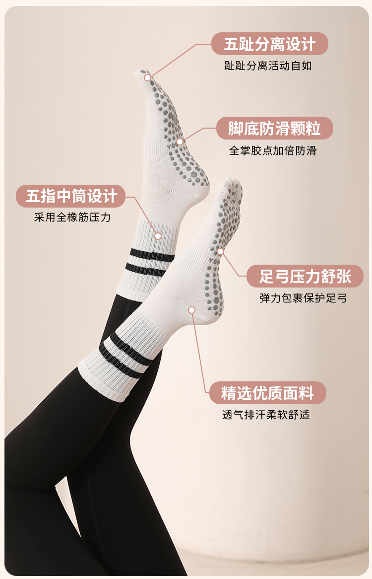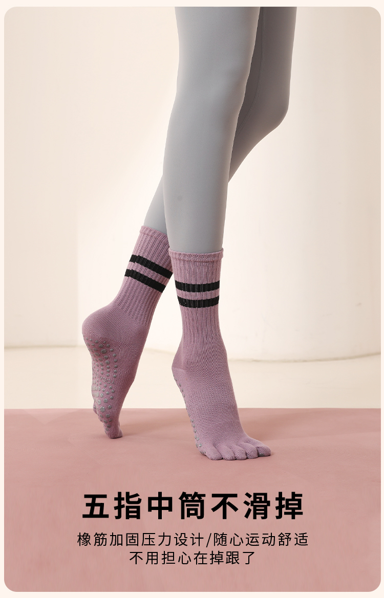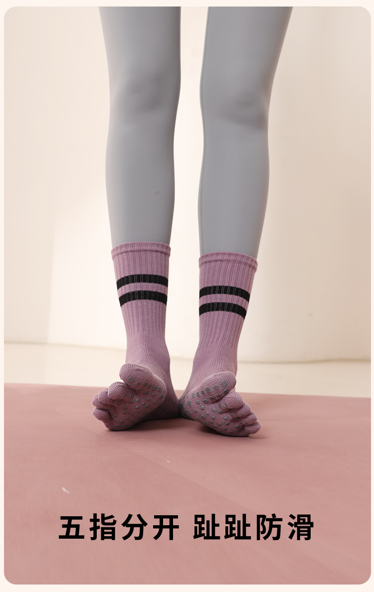 Autumn and Winter Yoga Socks, Non-Slip, Professional Women's Pilates-Specific Socks, Mid-Length, Indoor Sports Fitness Training, Split-Toe