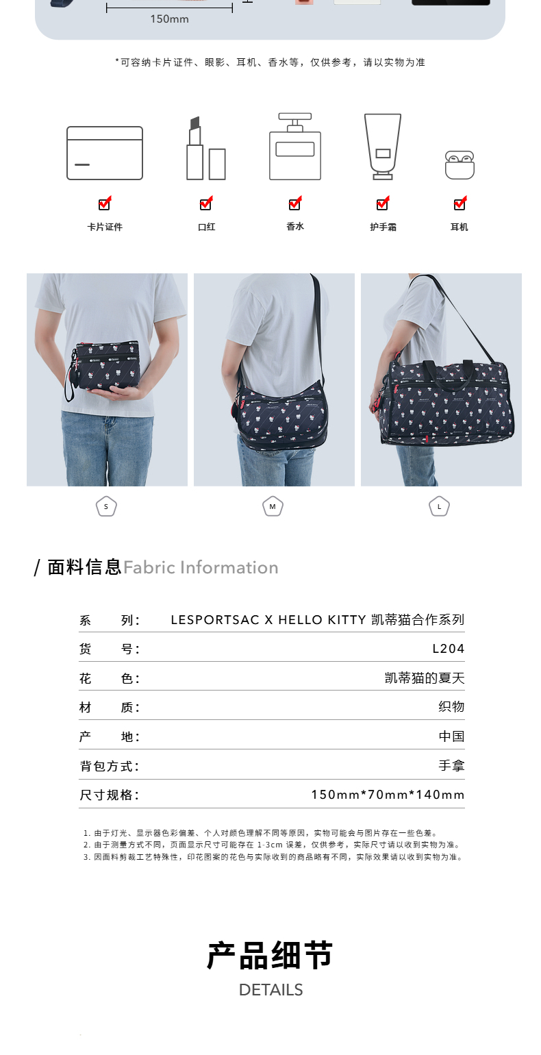 LeSportsac Music Poem HELLOKITTY Collaboration Series Hello Kitty Cute Clutch Bag Makeup Clutch
