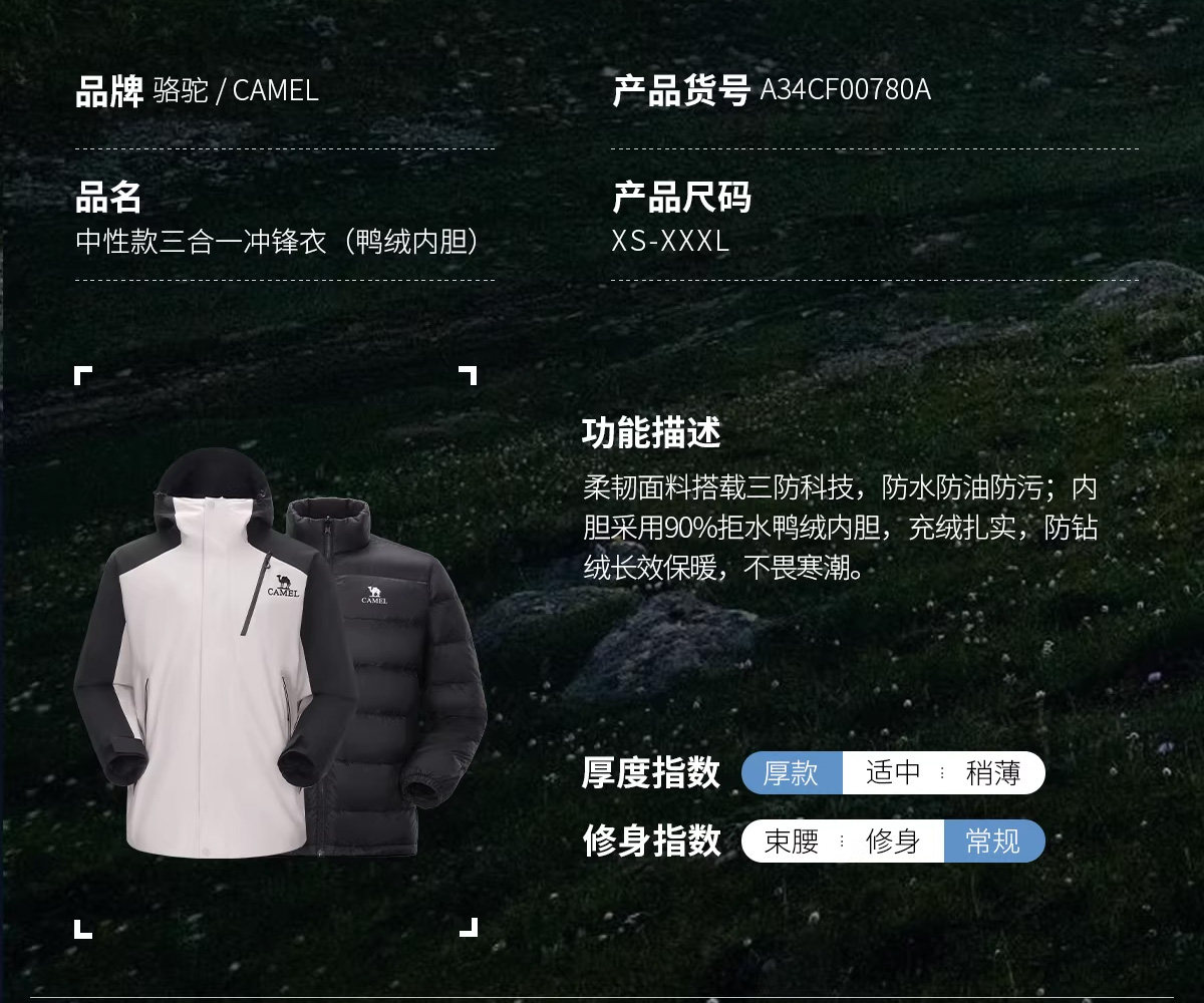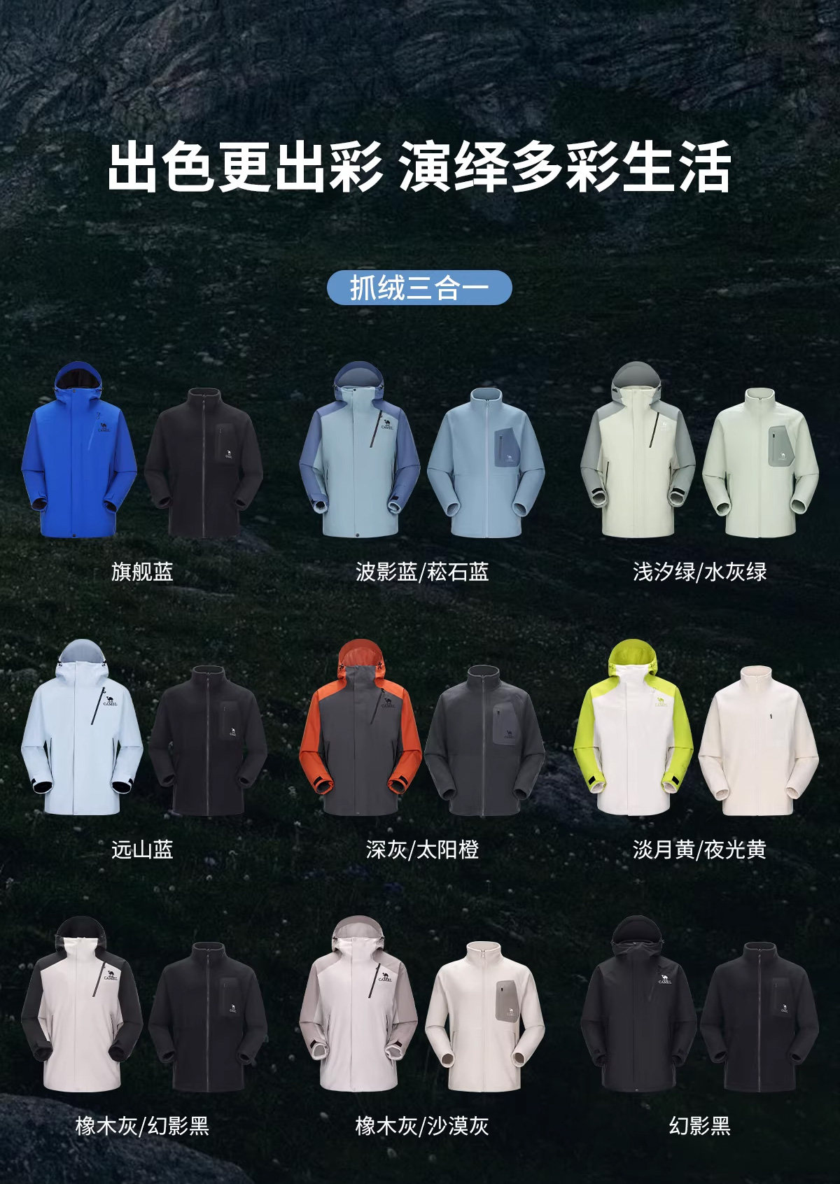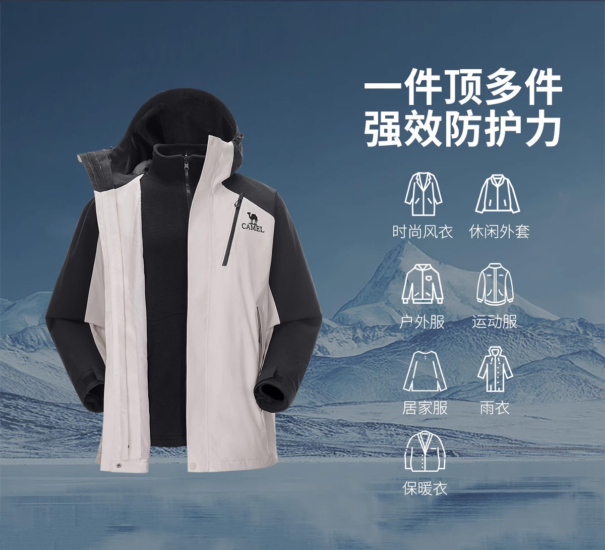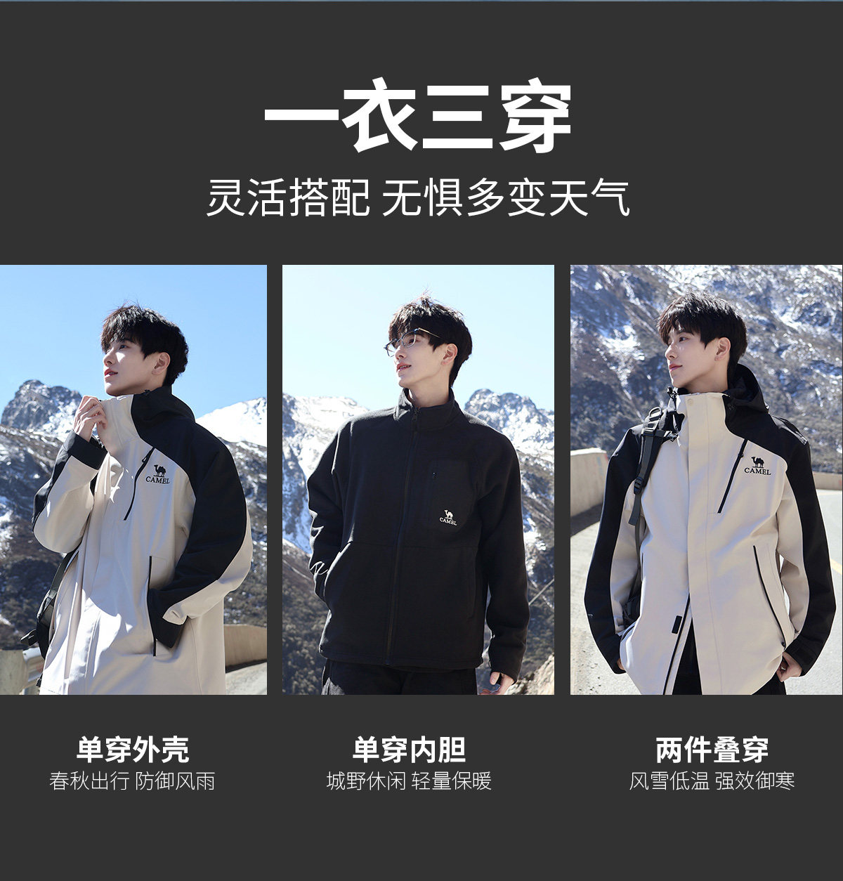 Camel King Kaijia 26 Outdoor Jacket Men's 3-in-1 Windproof Fleece Liner Warm Travel Jacket Women's