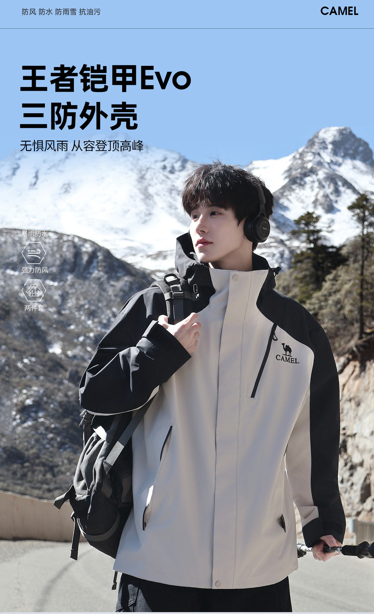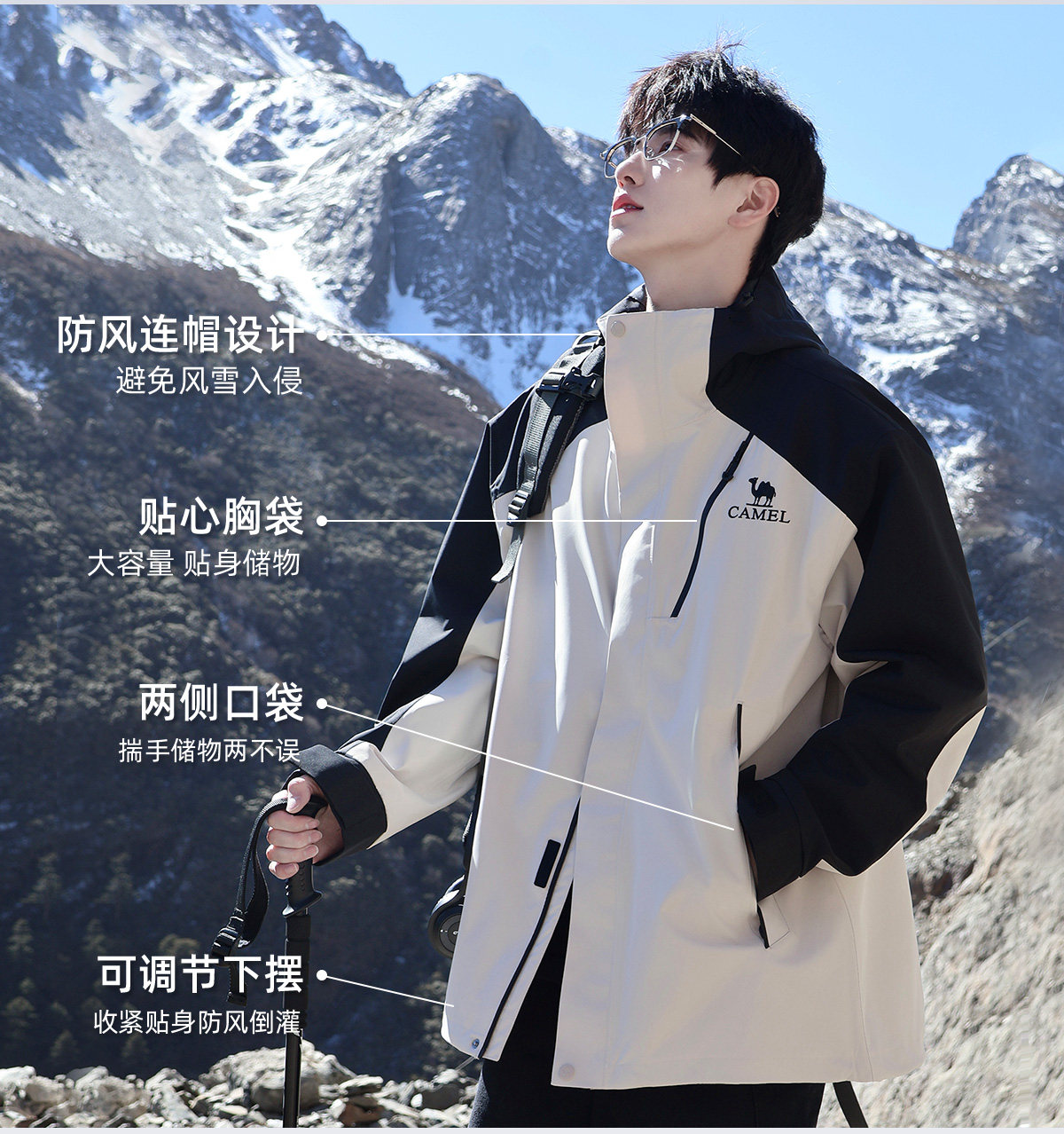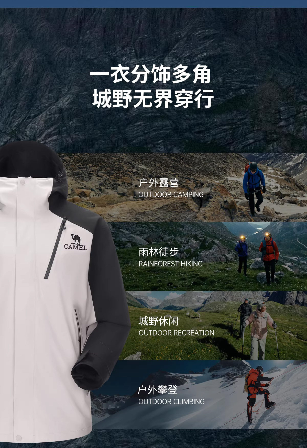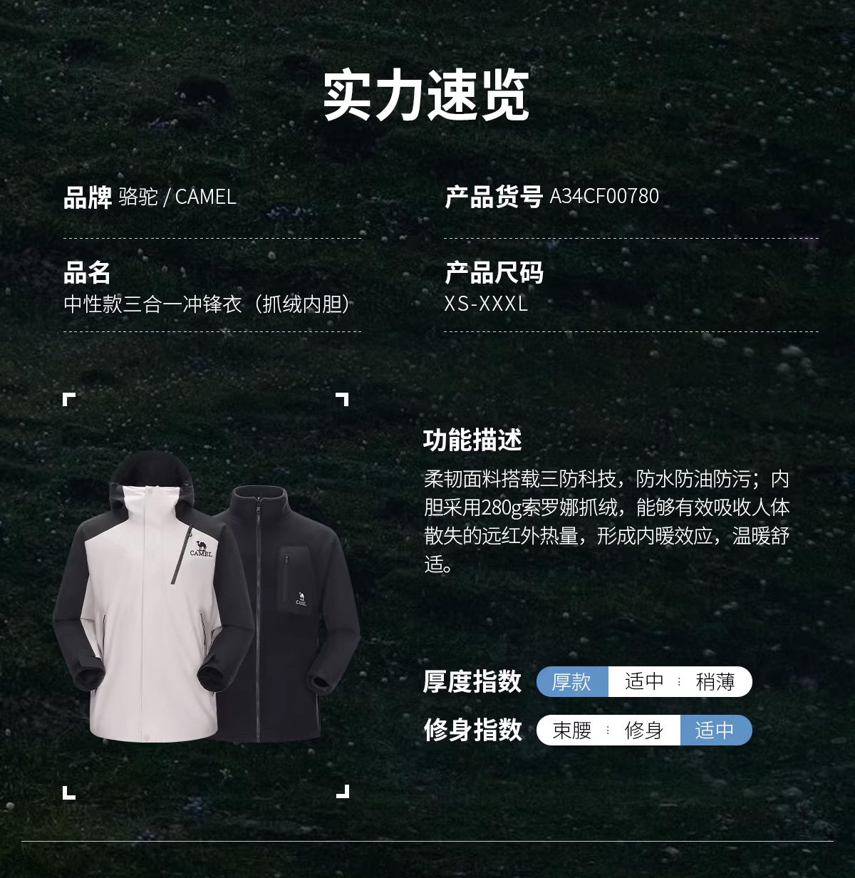 Camel King Kaijia 26 Outdoor Jacket Men's 3-in-1 Windproof Fleece Liner Warm Travel Jacket Women's