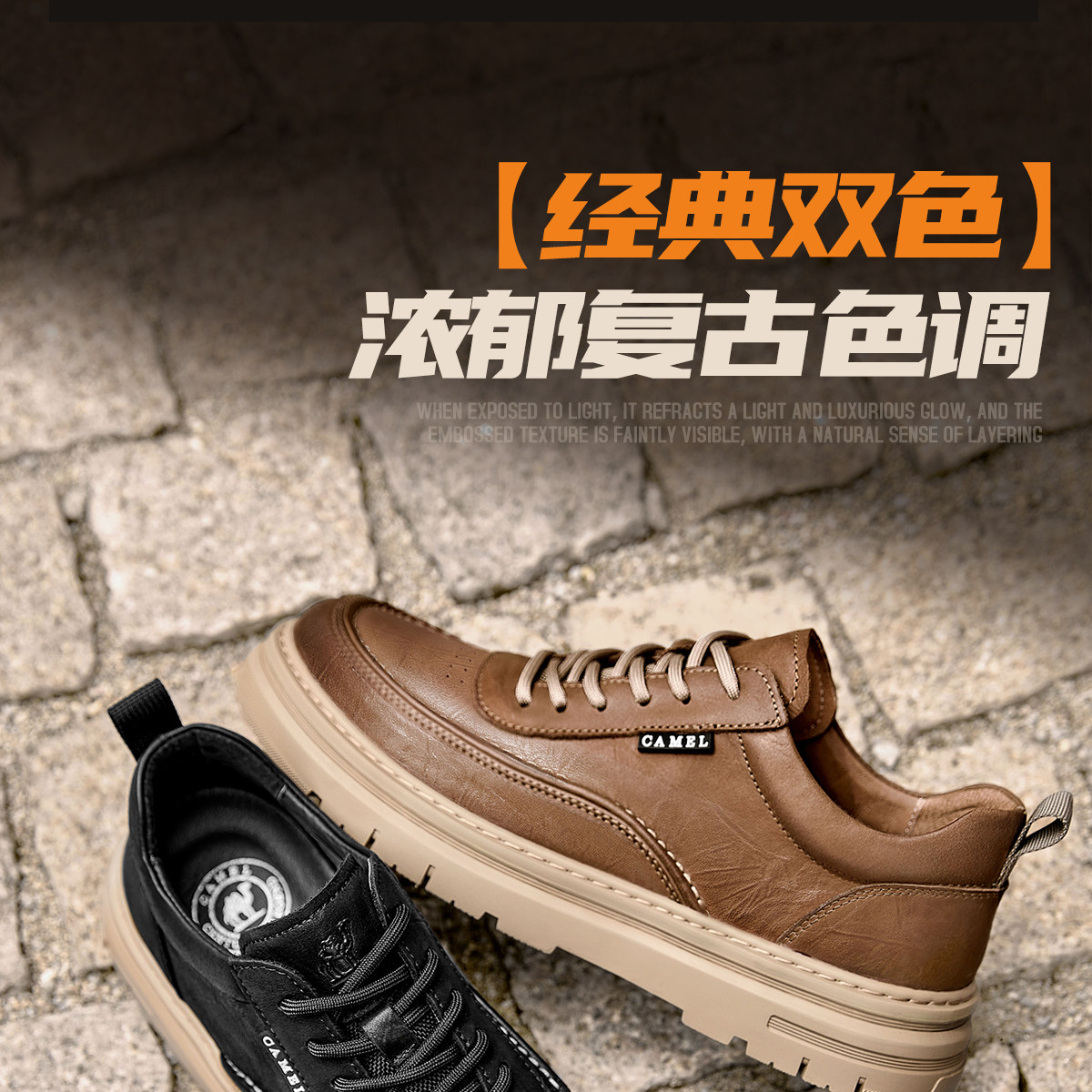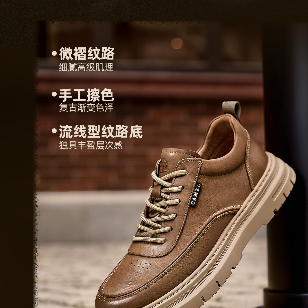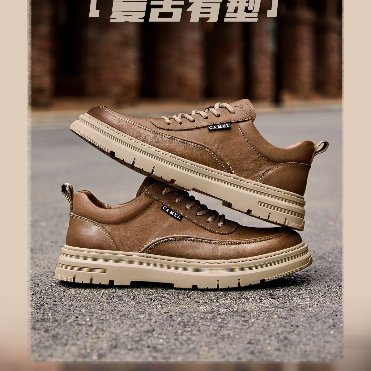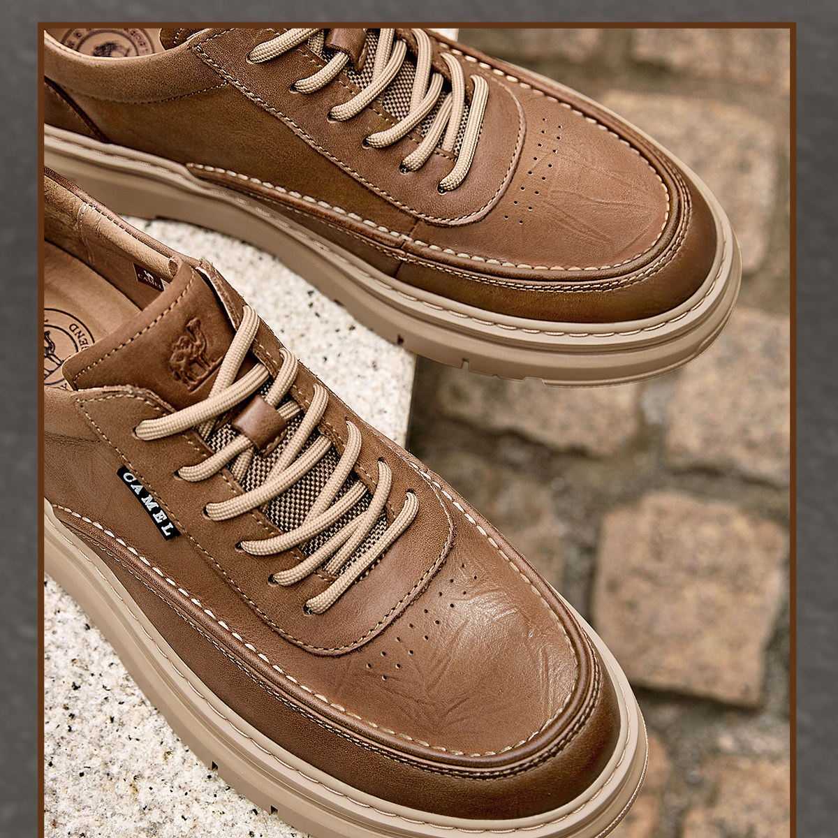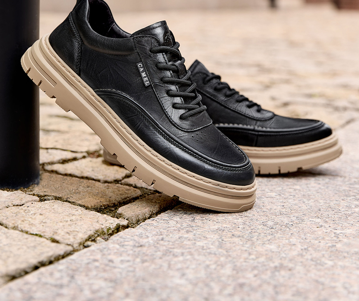 Camel 2026 Spring British Style Men's Shoes Comfortable Genuine Leather Thick-Soled Classic Casual Shoes Work Leather Shoes Men's Sneakers