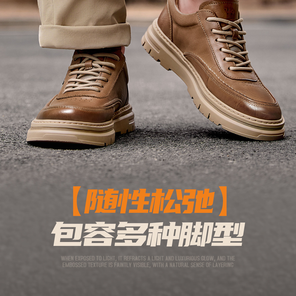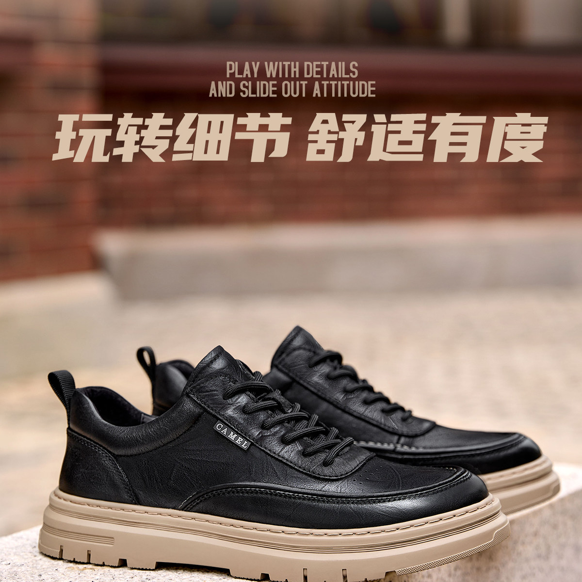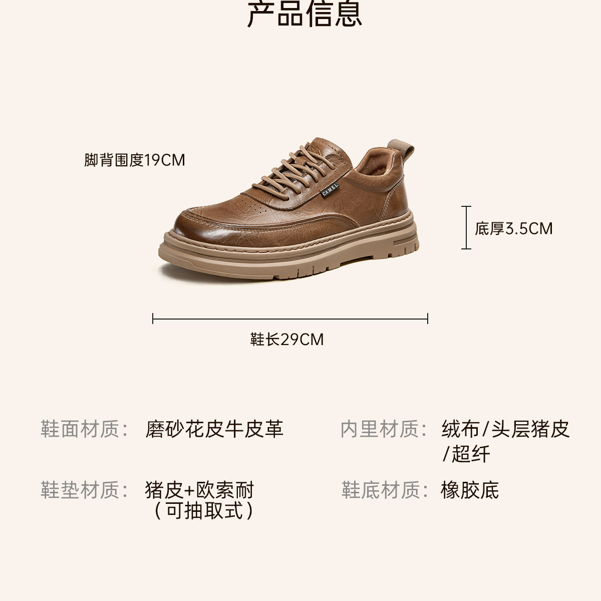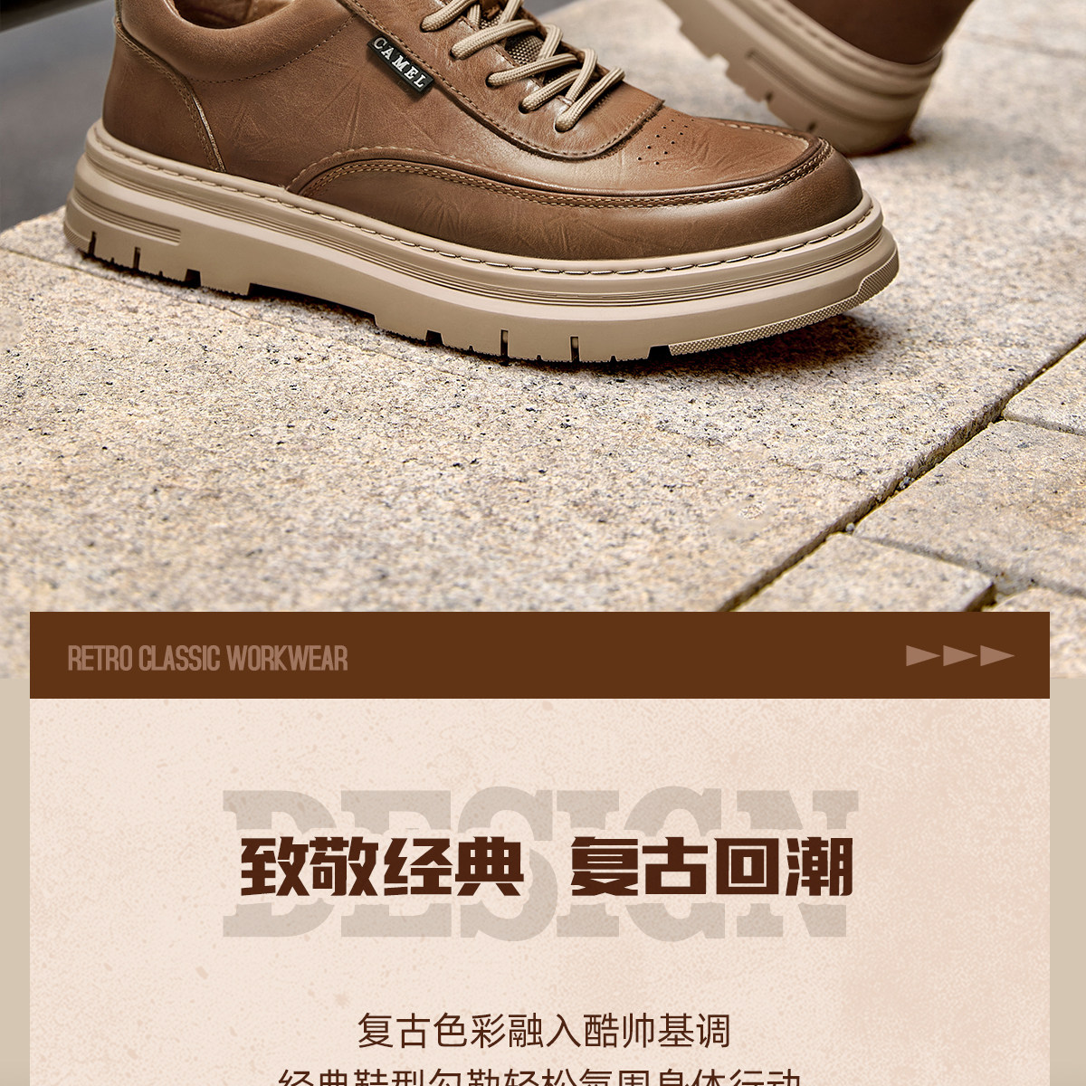Camel 2026 Spring British Style Men's Shoes Comfortable Genuine Leather Thick-Soled Classic Casual Shoes Work Leather Shoes Men's Sneakers