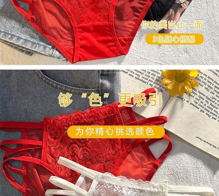 Ultra-Thin Mesh Breathable Lace-Trimmed Briefs, Sexy and Tempting for Girls, Low-Waisted, Seamless, Large Size, Transparent for Young Women