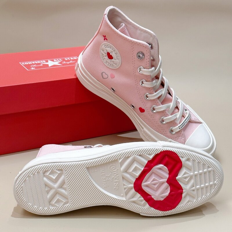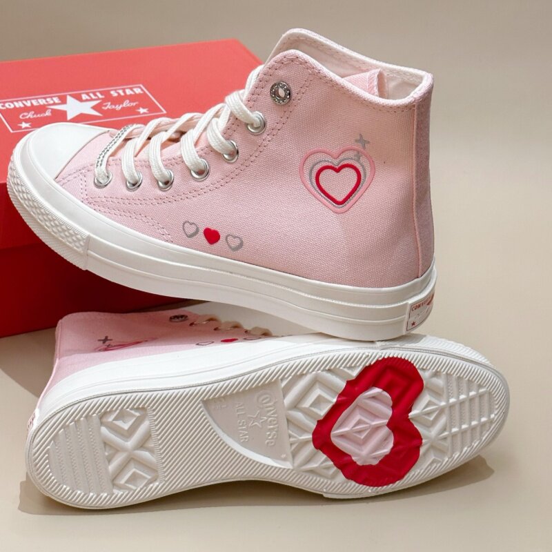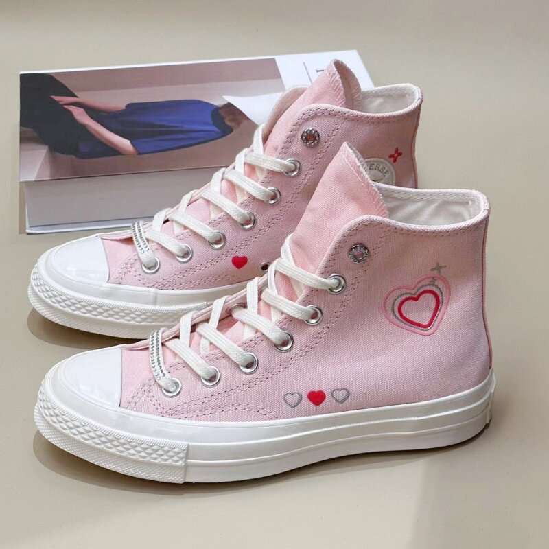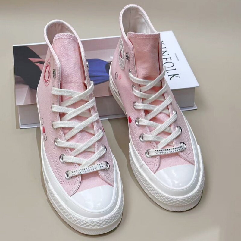 Converse 1970S Valentine's Day Pink Printed Versatile High-Top Casual Canvas Shoes for Women A09113C