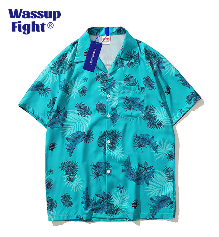 Wassup Fight Sin City Palm Tree Beach Shirt Men's Short Sleeve Cuban Collar Tommy Vercetti Shirt