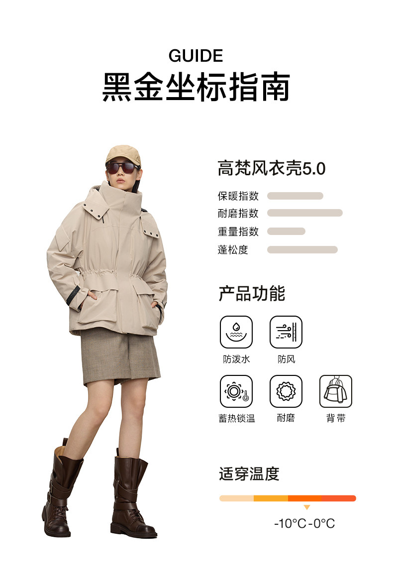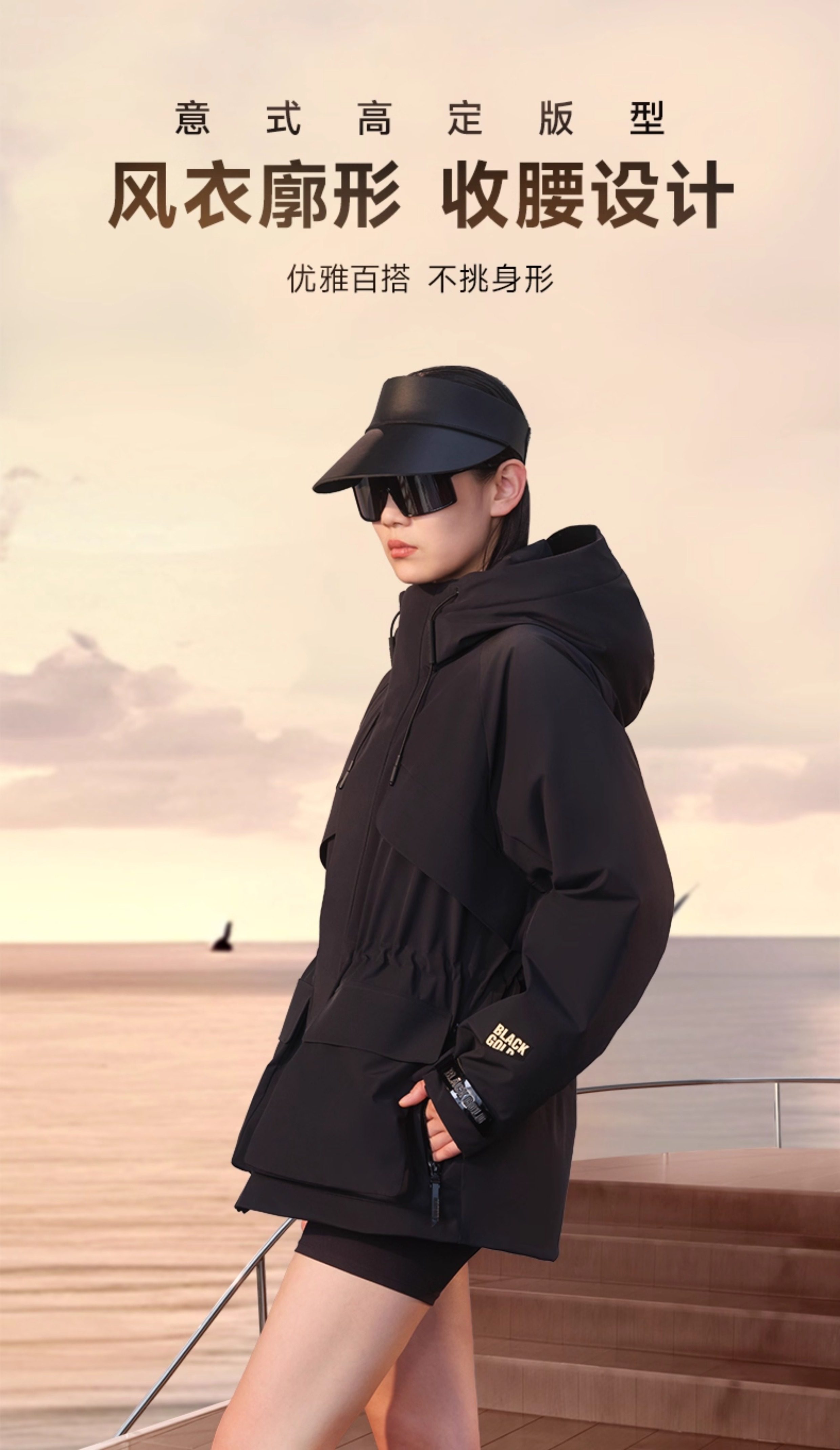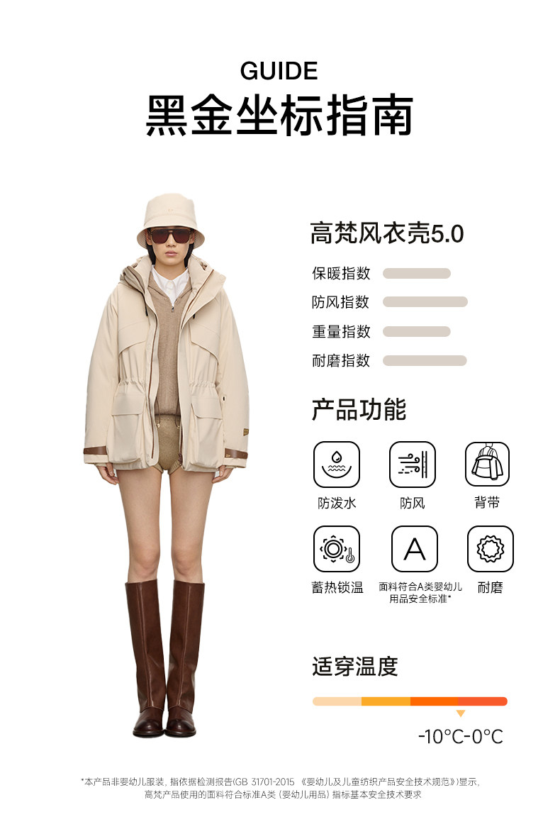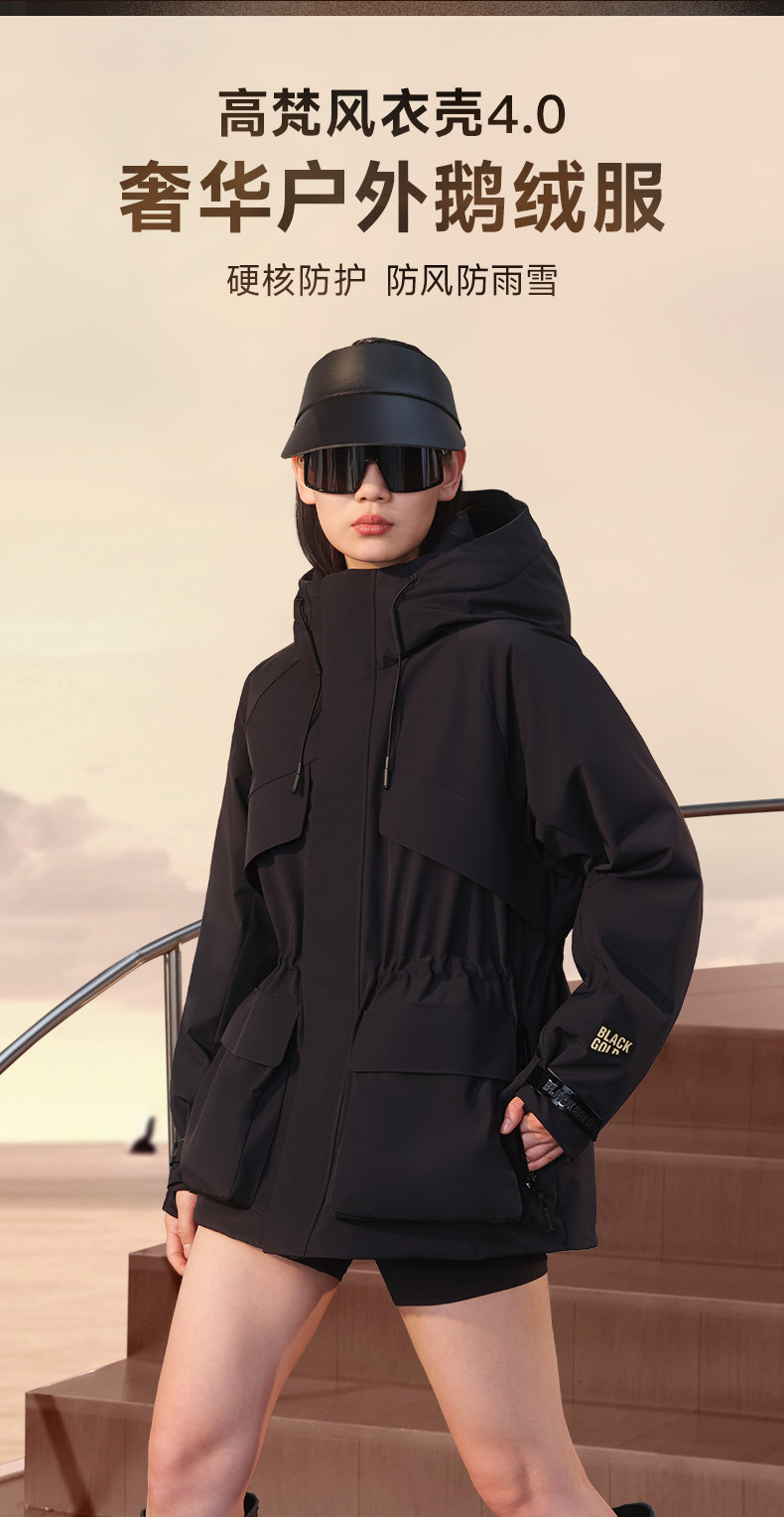 [Same Style as Chen Haoyu] Gaofan Windbreaker Shell 4.0 Five-Point Black Gold Goose down Jacket for Women Outdoor Windbreaker with Waist Adjustment