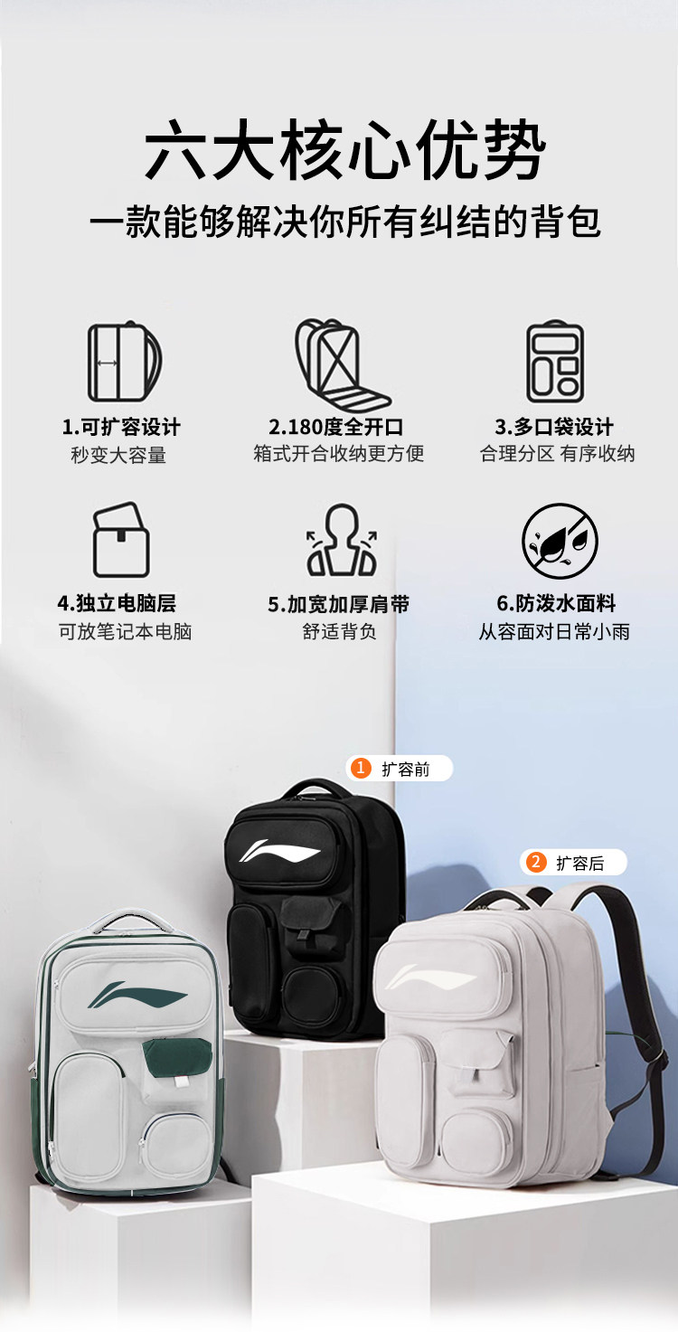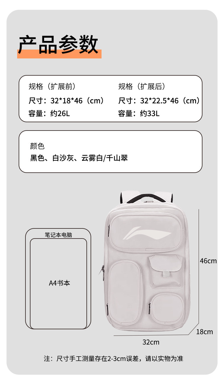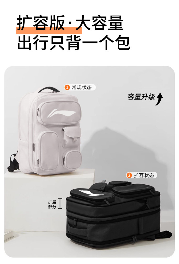 Li Ning Travel Bag for Men and Women, Large Capacity Expandable Outdoor Backpack, Sports Hiking Backpack, Lightweight Cross-Country Mountaineering Bag