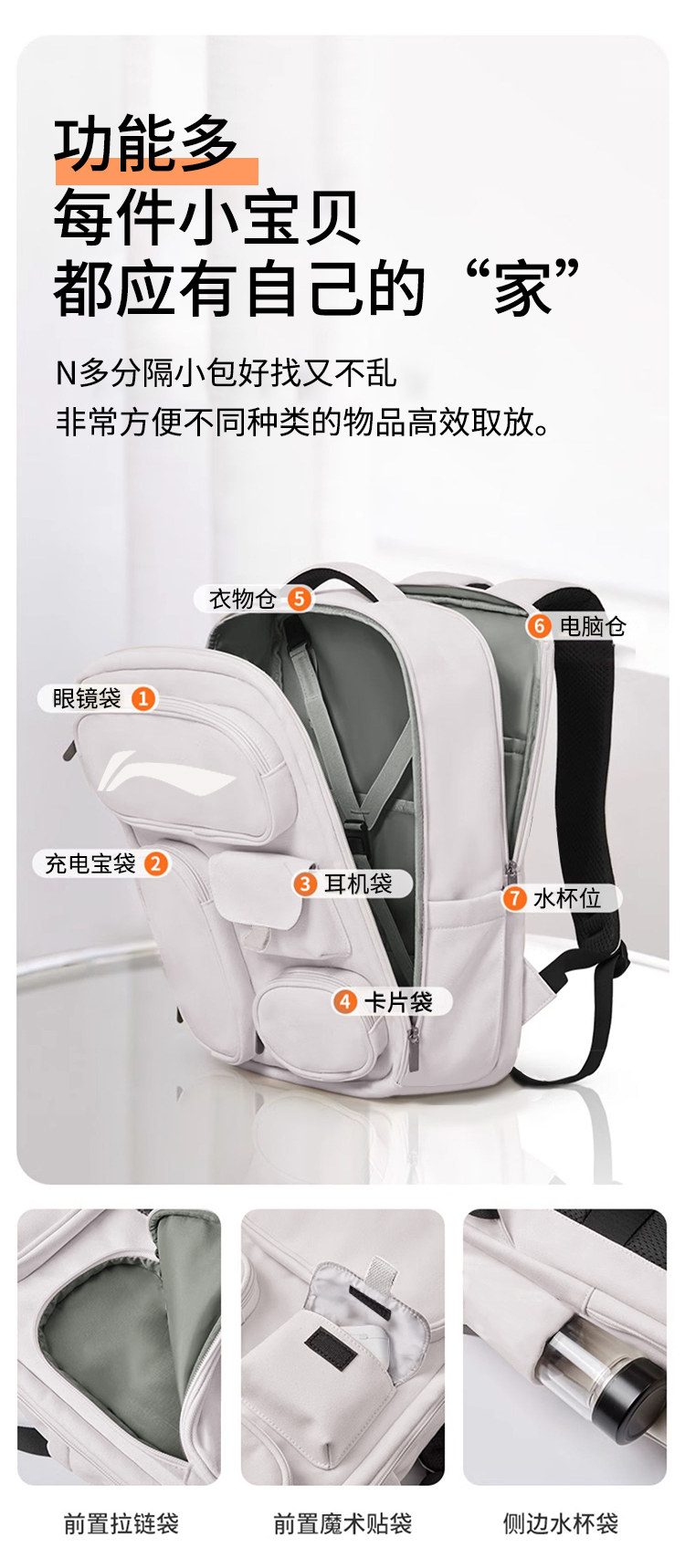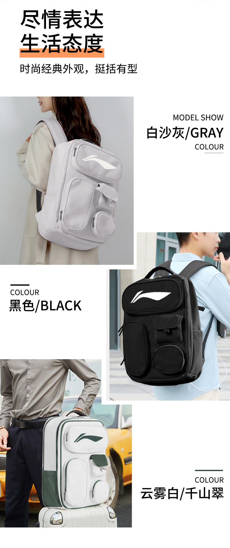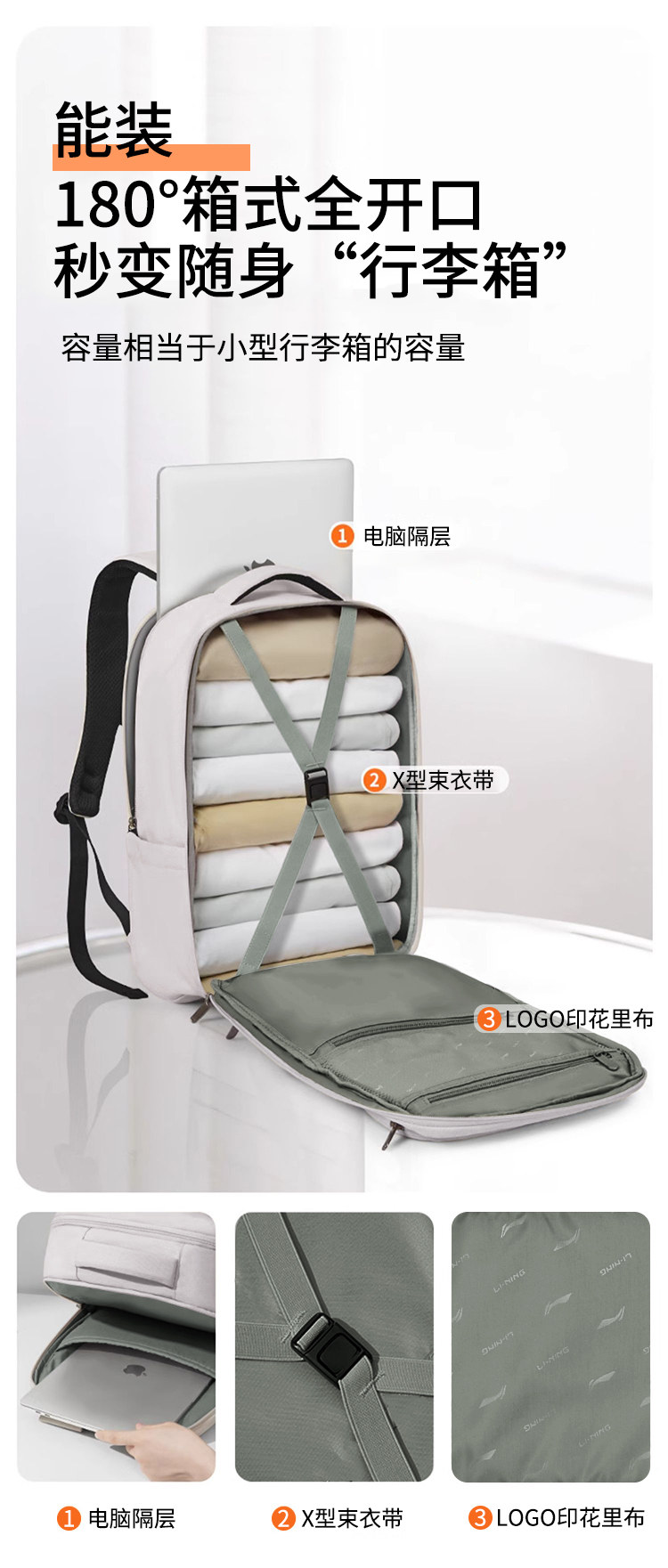 Li Ning Travel Bag for Men and Women, Large Capacity Expandable Outdoor Backpack, Sports Hiking Backpack, Lightweight Cross-Country Mountaineering Bag