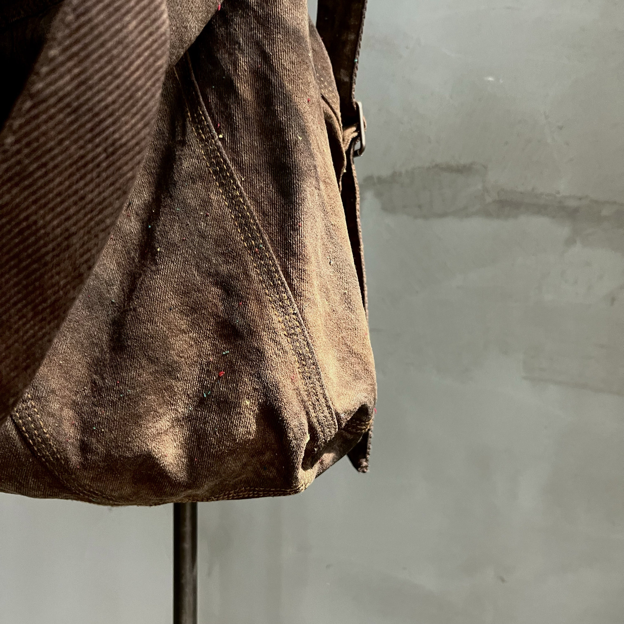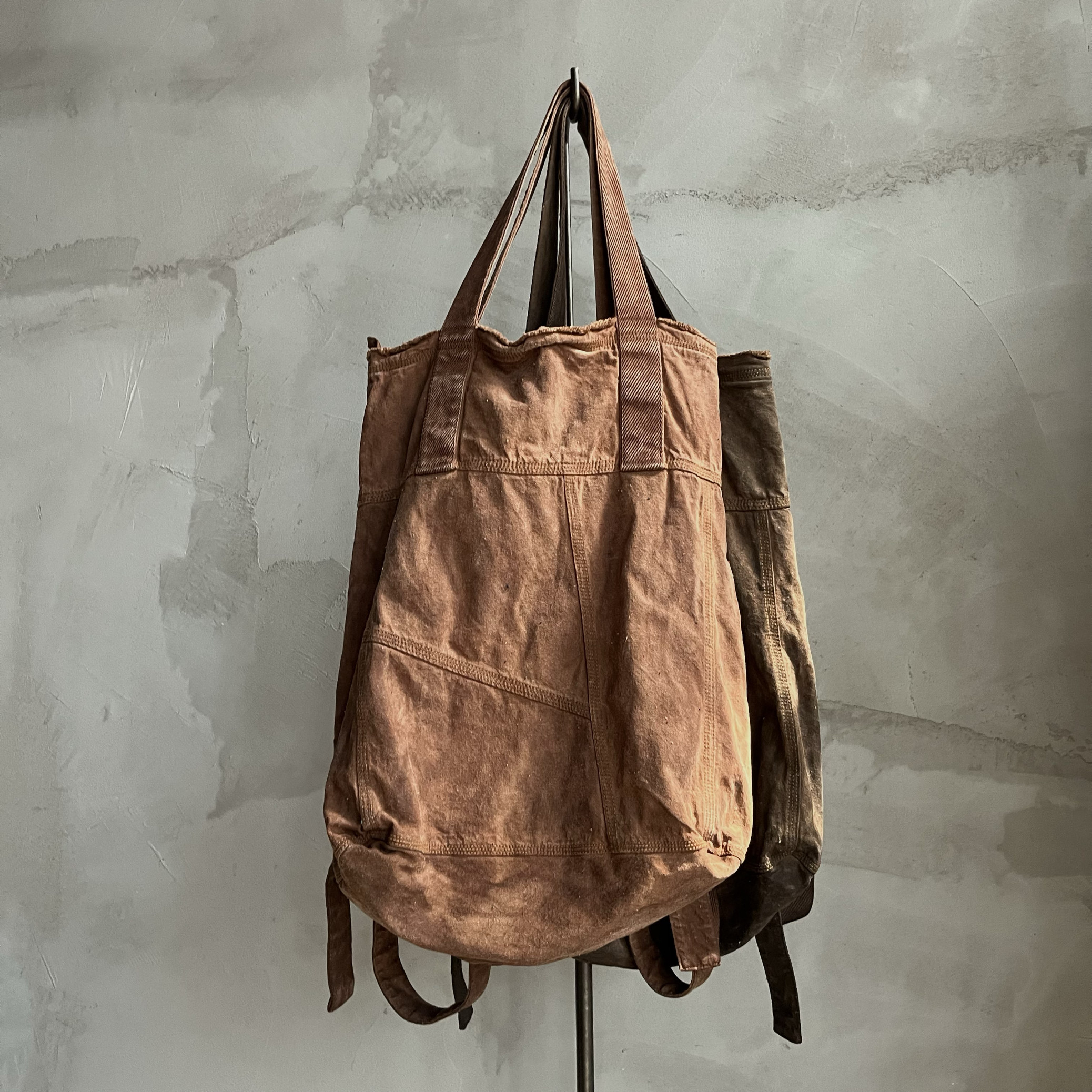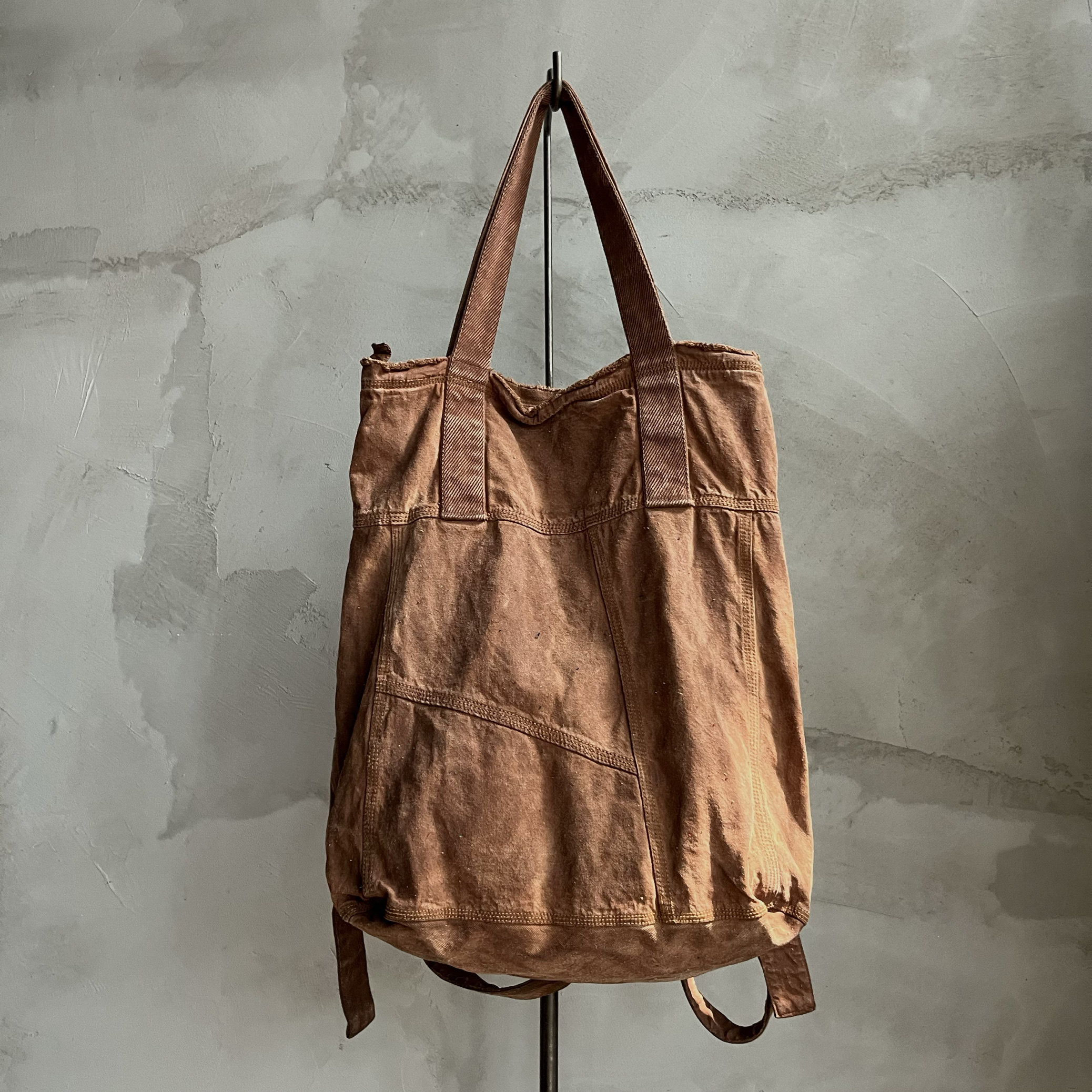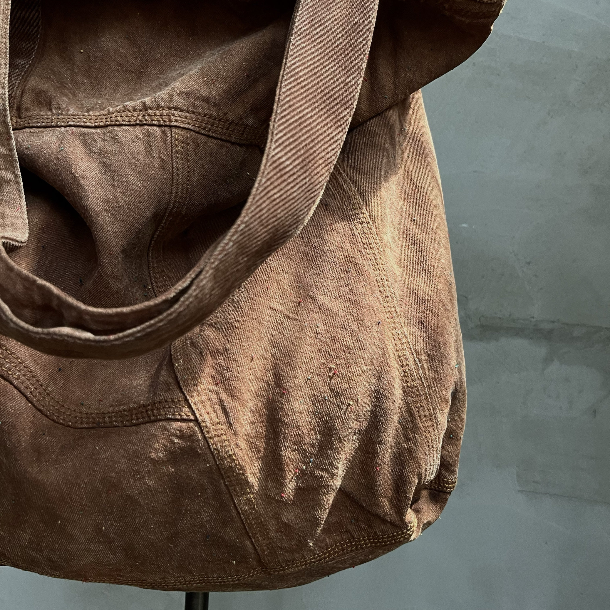 Agarwood Buyi Caotang Original Design Persimmon-Dyed Backpack with Colorful Thread Stitching, Distressed Handbag with a Vintage Look