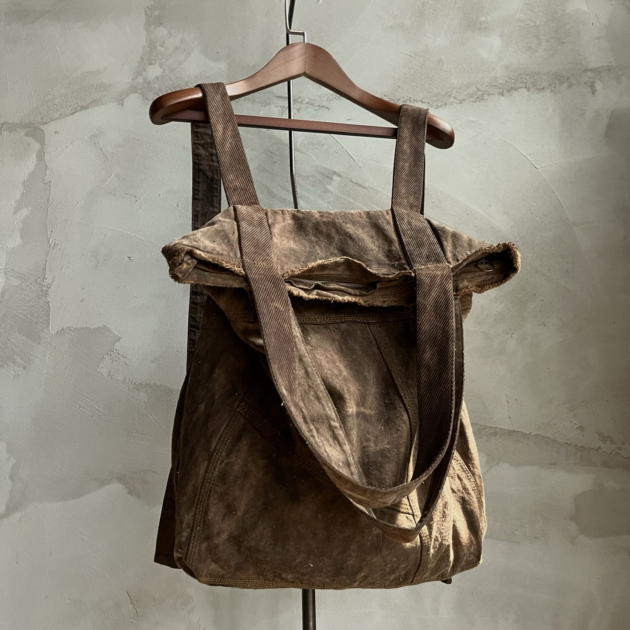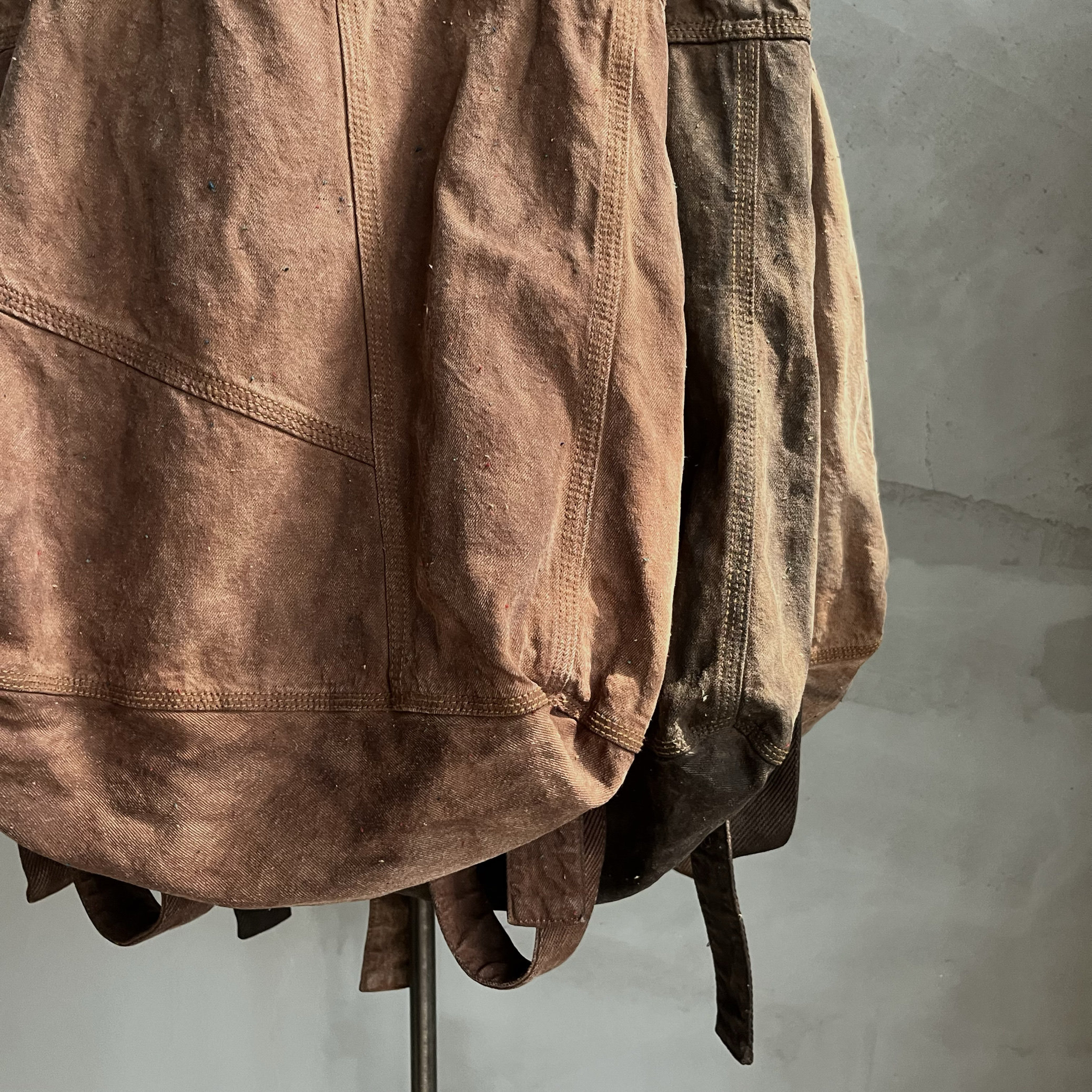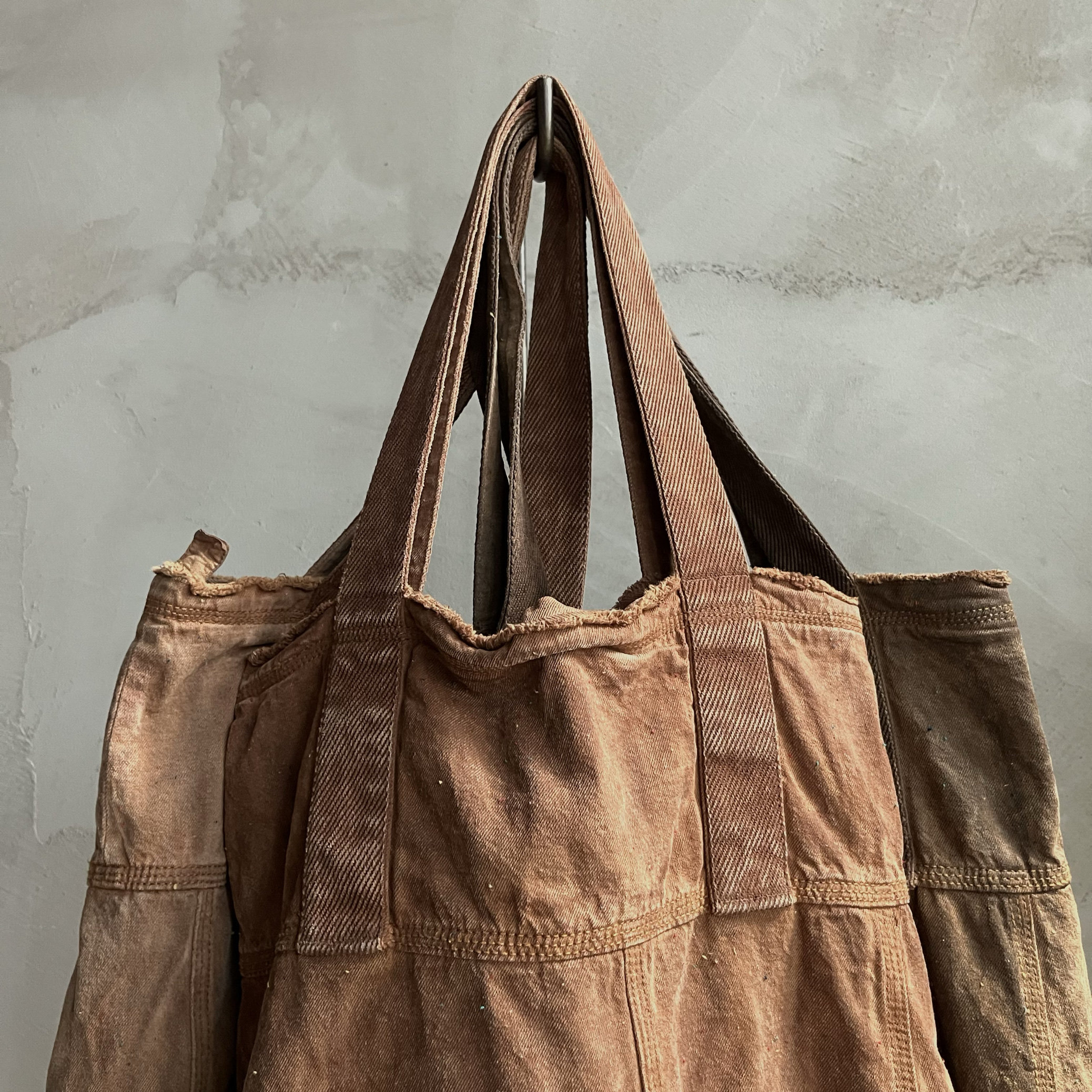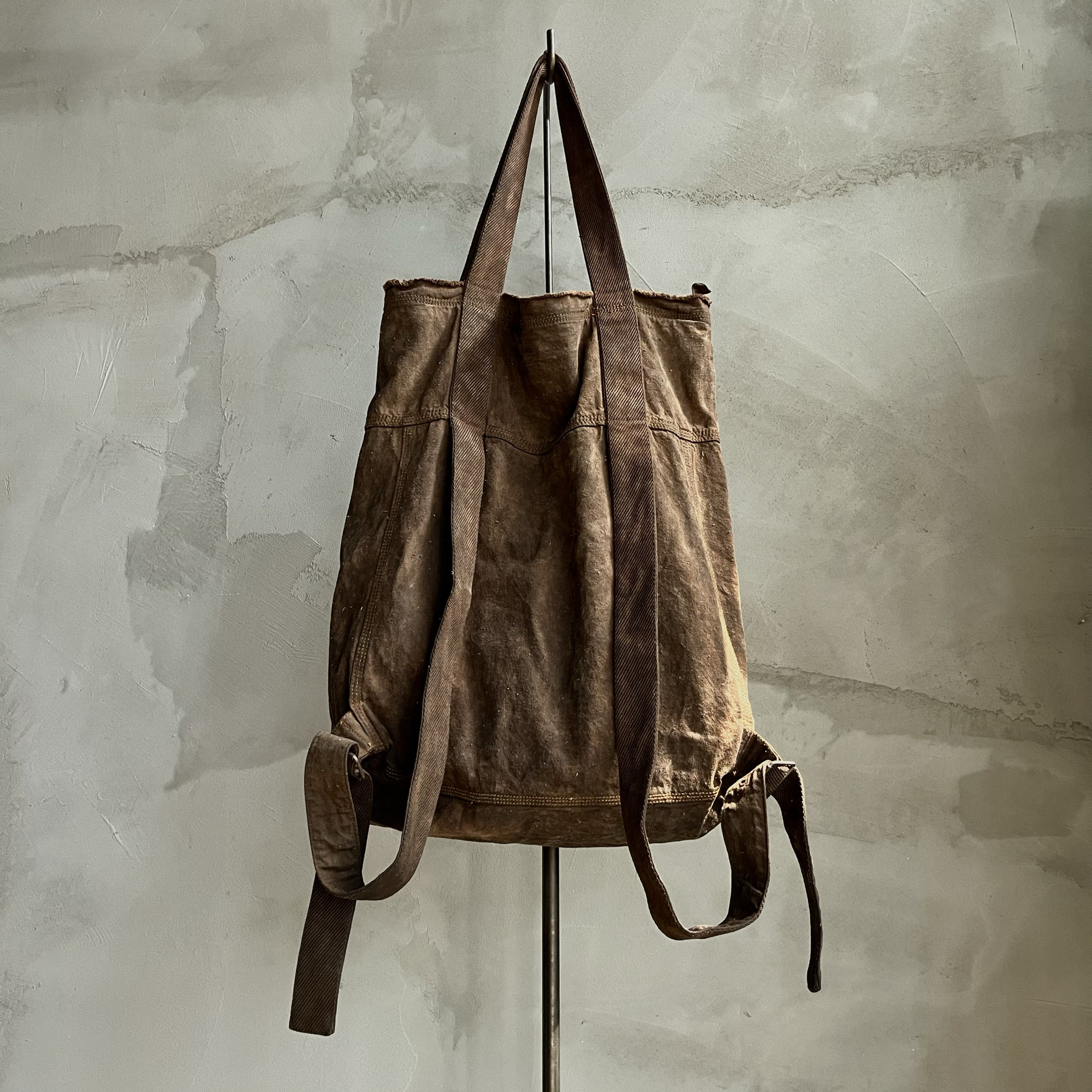Agarwood Buyi Caotang Original Design Persimmon-Dyed Backpack with Colorful Thread Stitching, Distressed Handbag with a Vintage Look