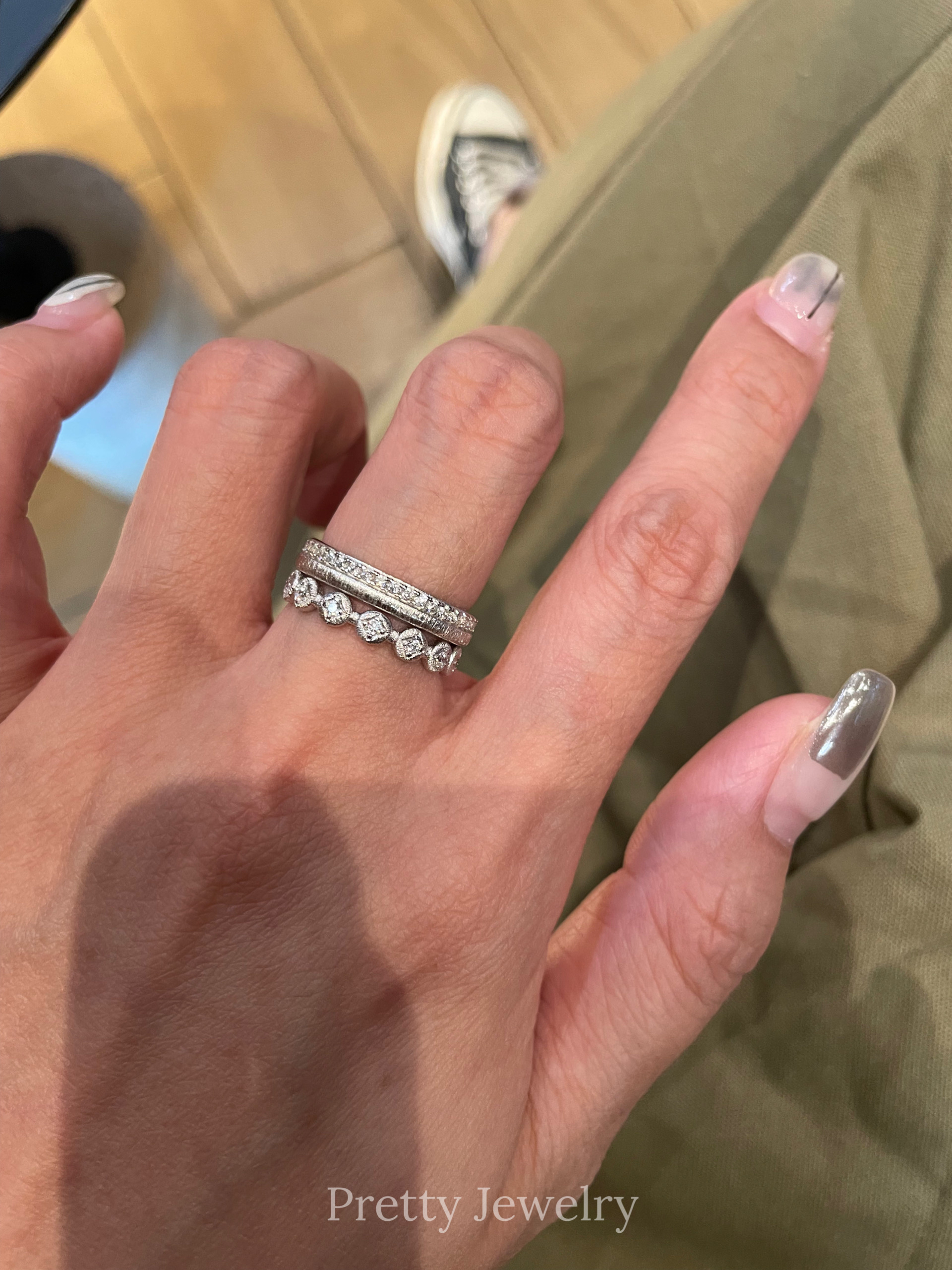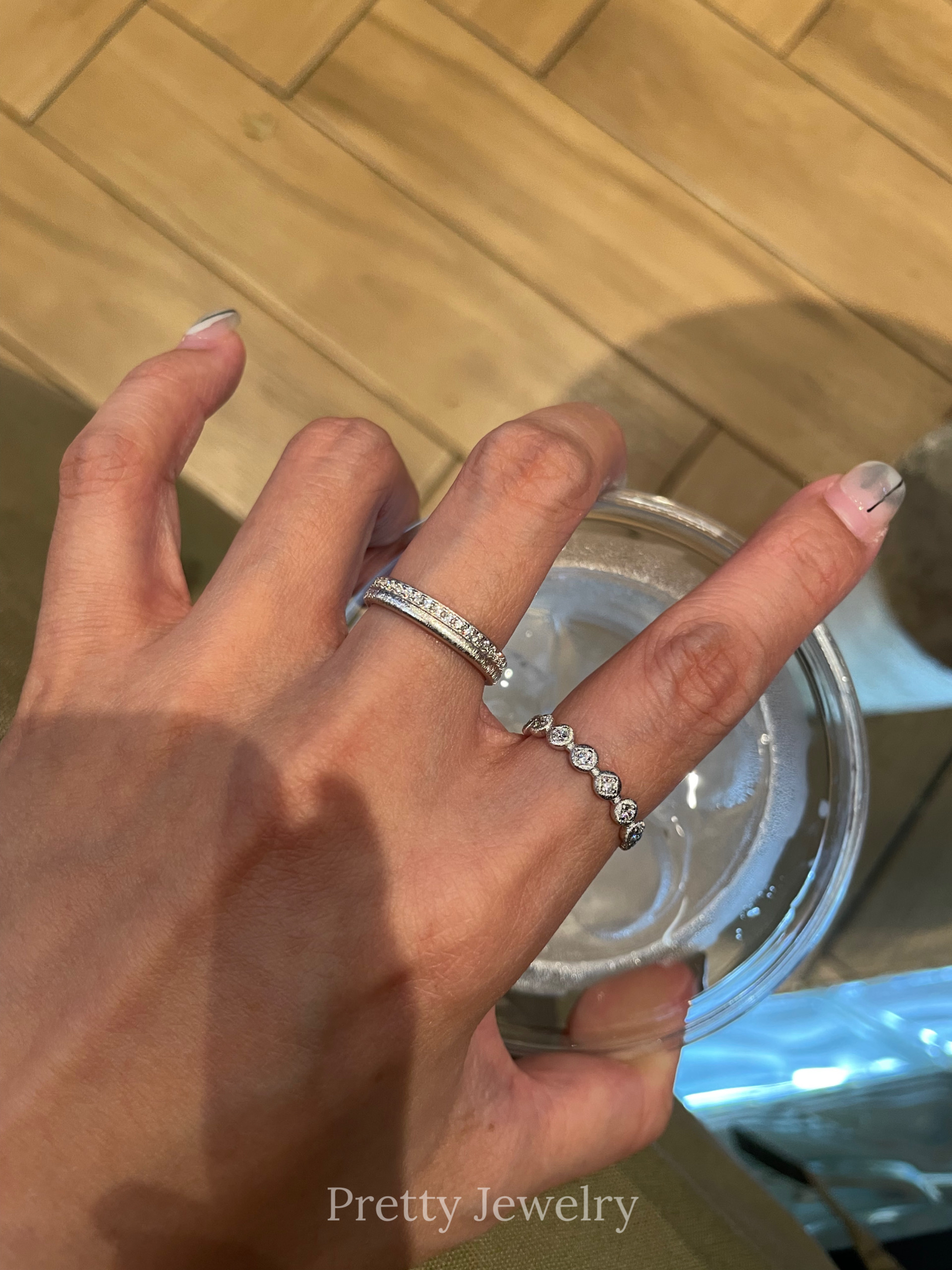 Pretty Silver Jewelry Retro Vintage Middle-Aged Brushed Small Row of Diamonds Ring 925 Sterling Silver Plated with Real Gold
