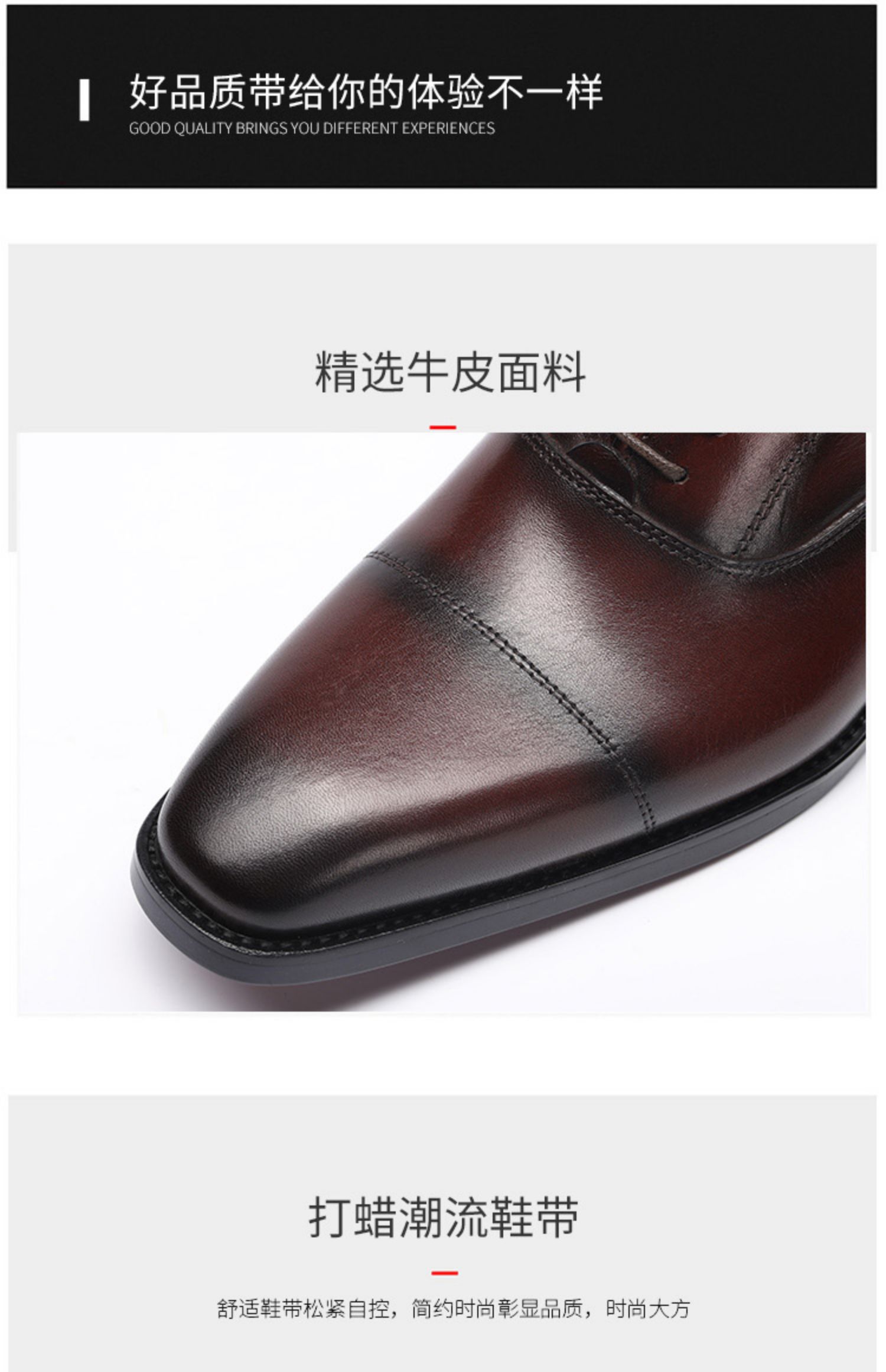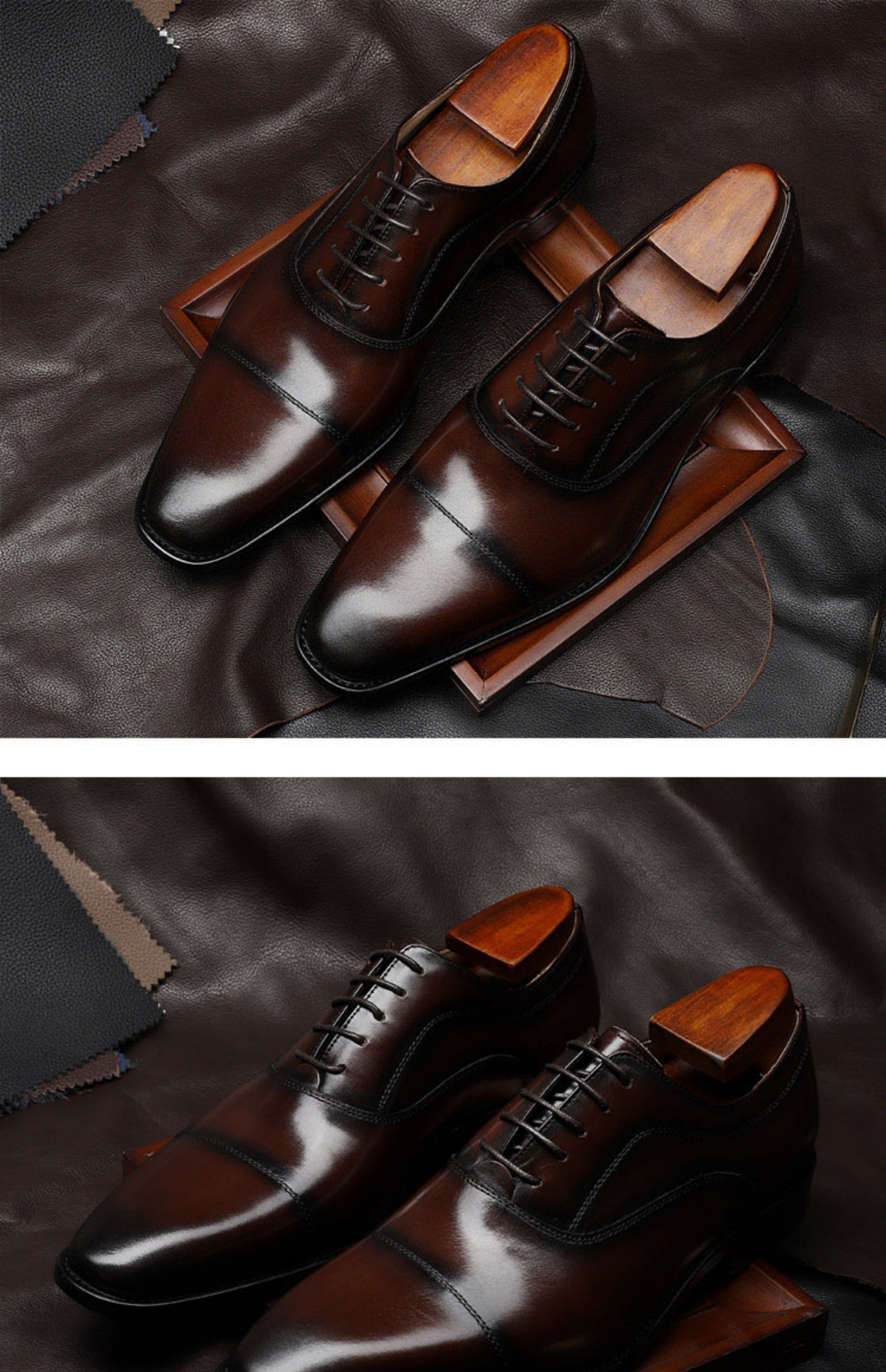 Michel Rouen European Station Classy Men's Business Formal Leather Shoes Handmade Genuine Leather Square Toe Three-Joint Men's Shoes