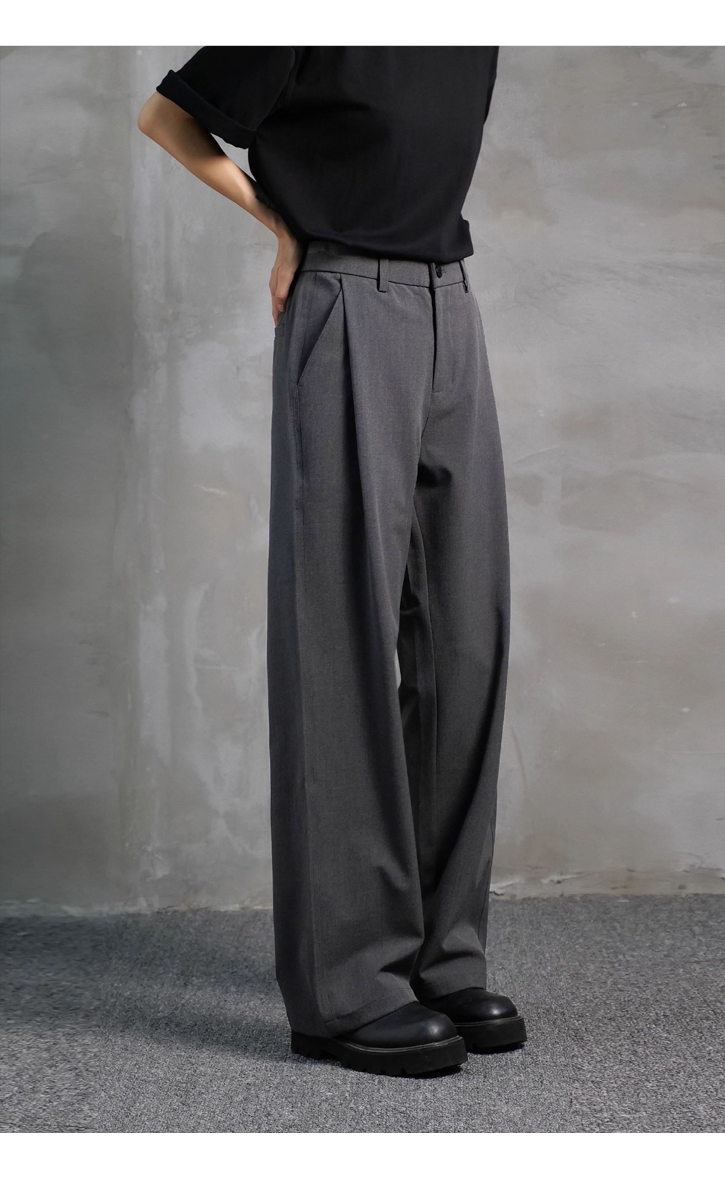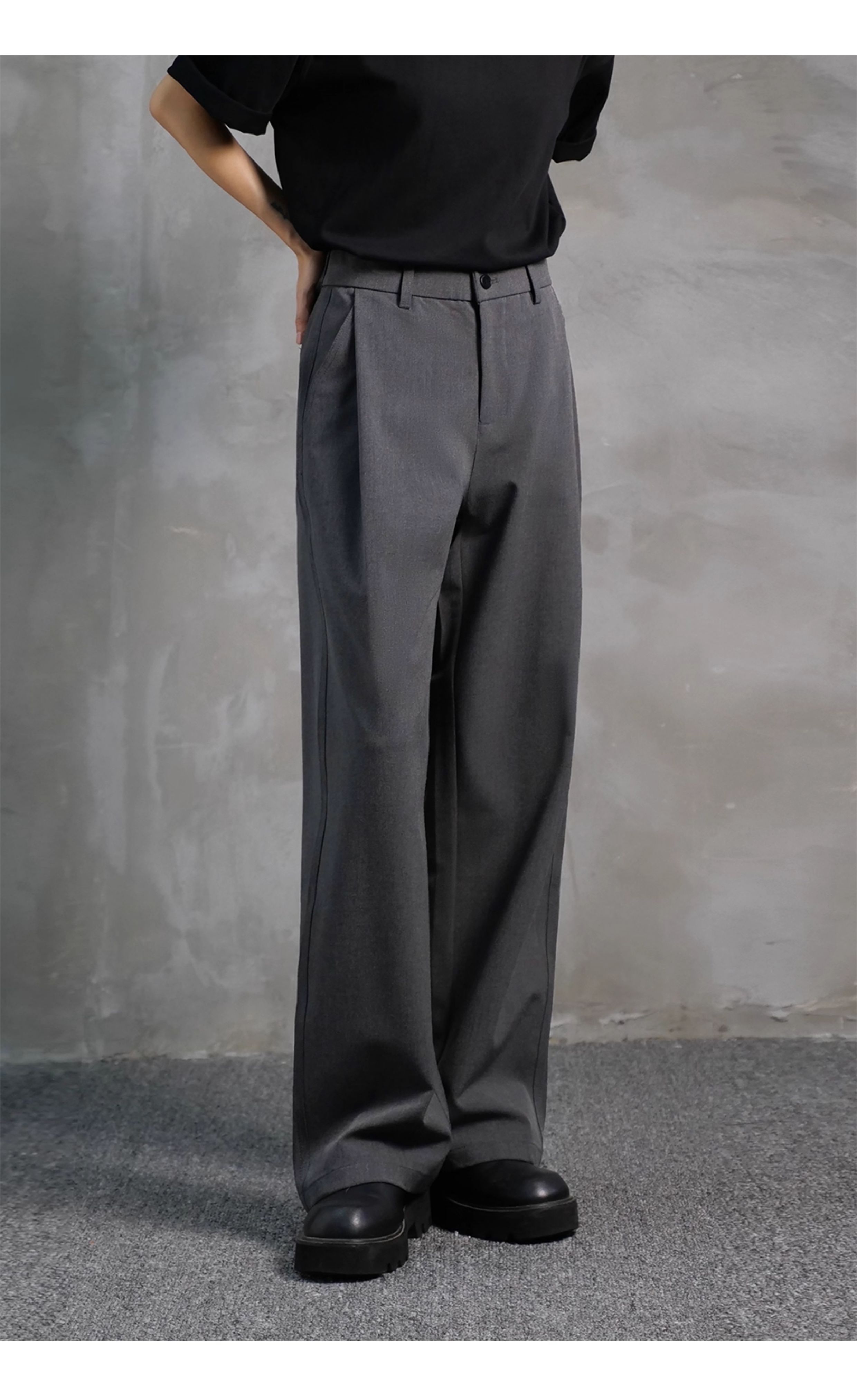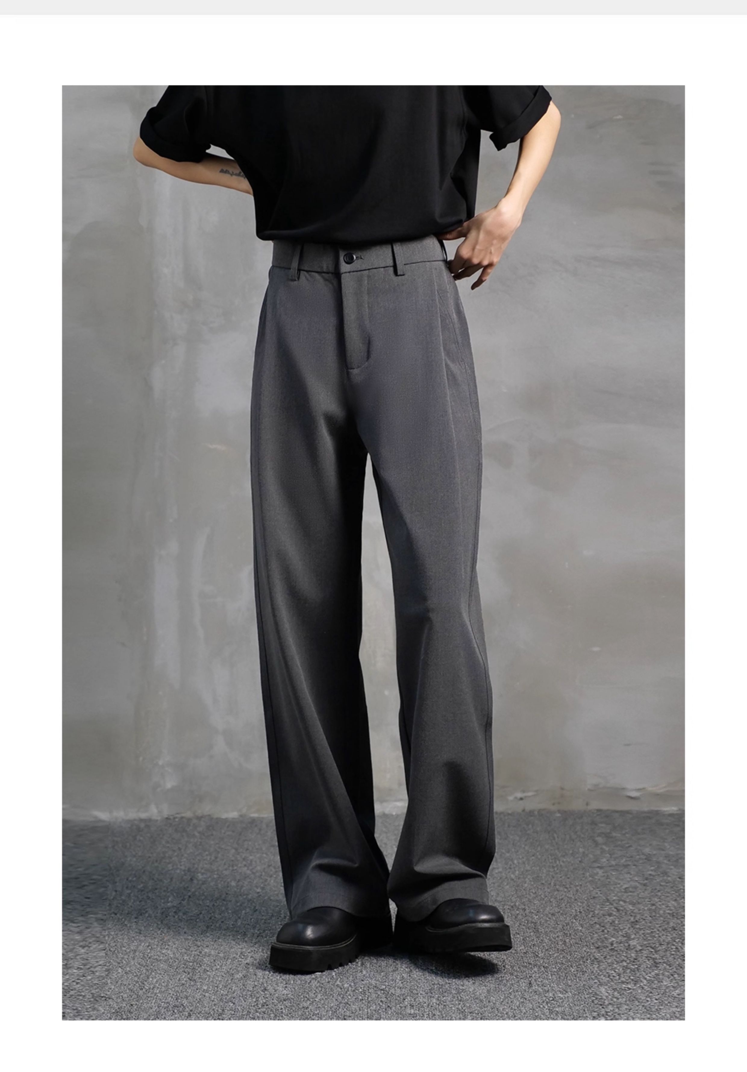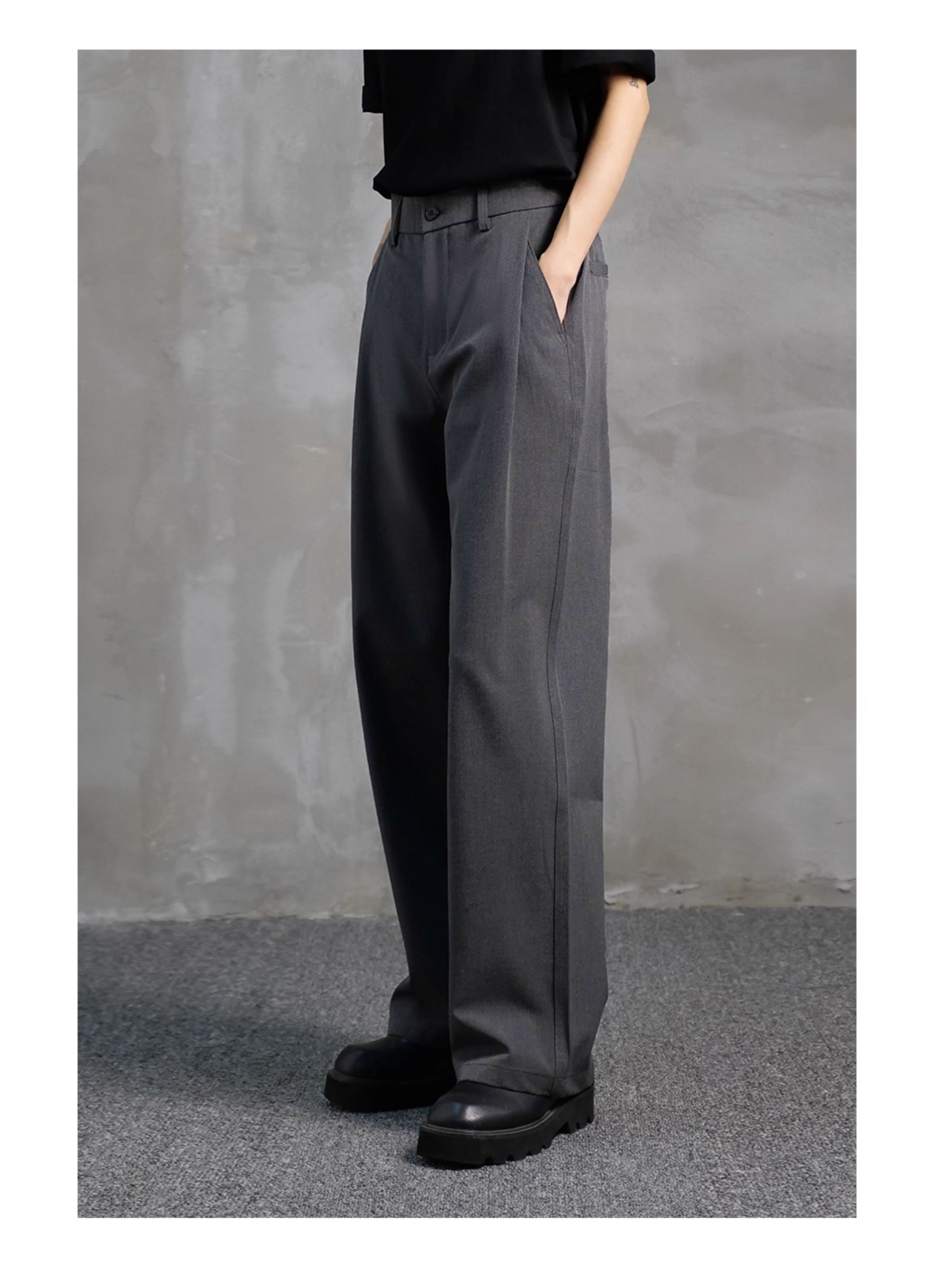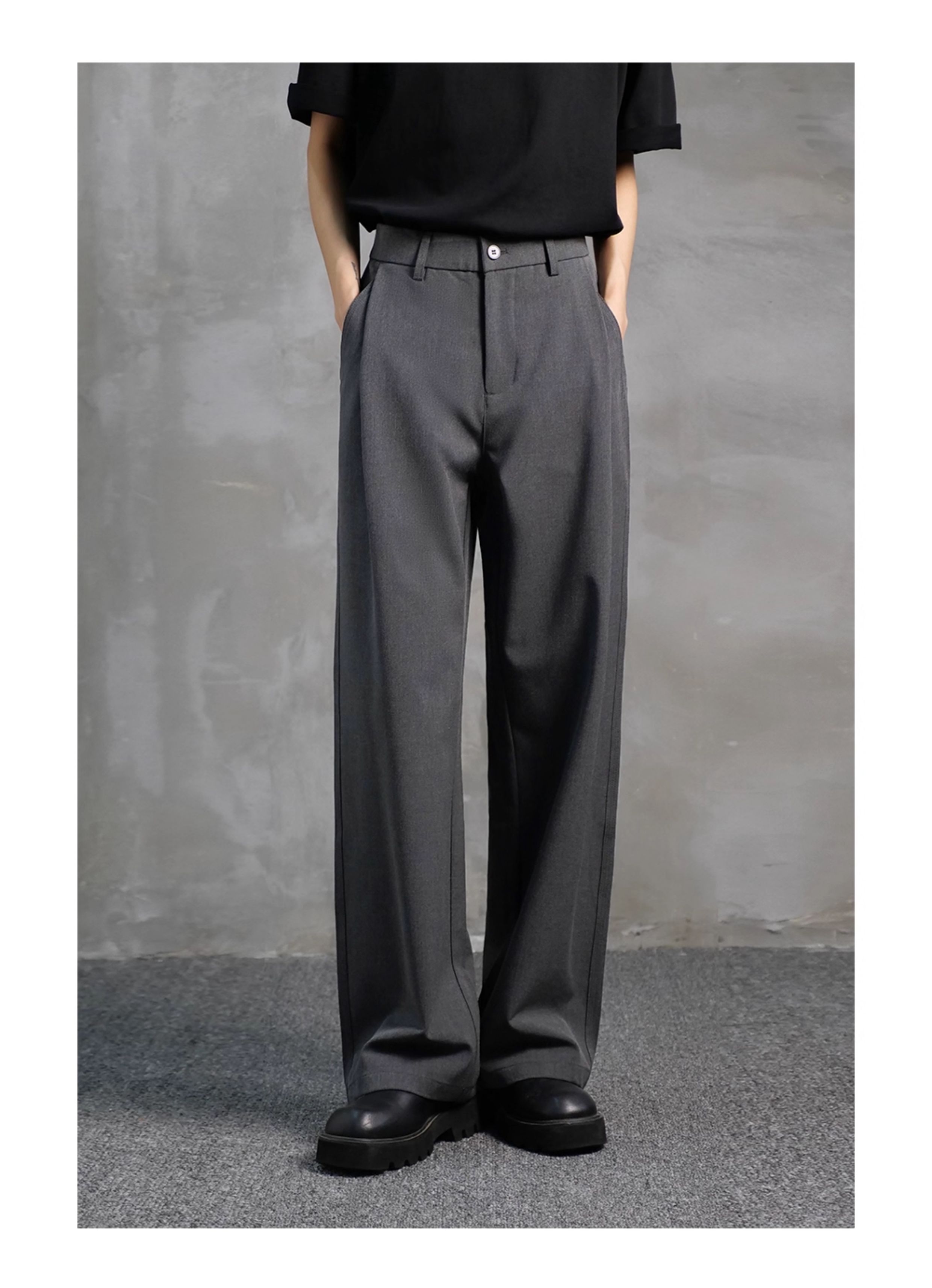 【Spli】【Sanbenxi】Drapey Loose Straight-Leg Casual Suit Pants for Men, Gray Wide-Leg Suit Pants for All Seasons
