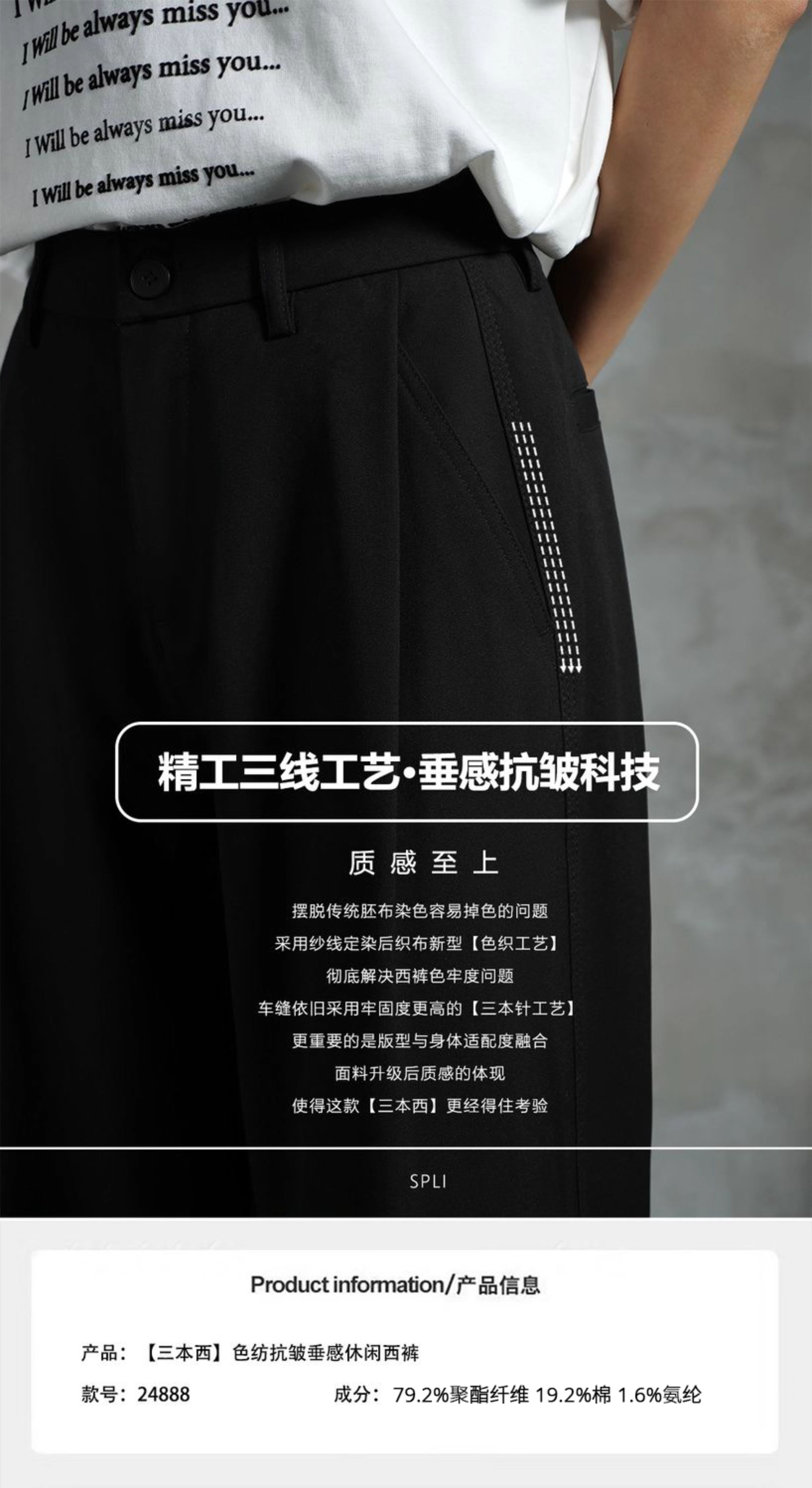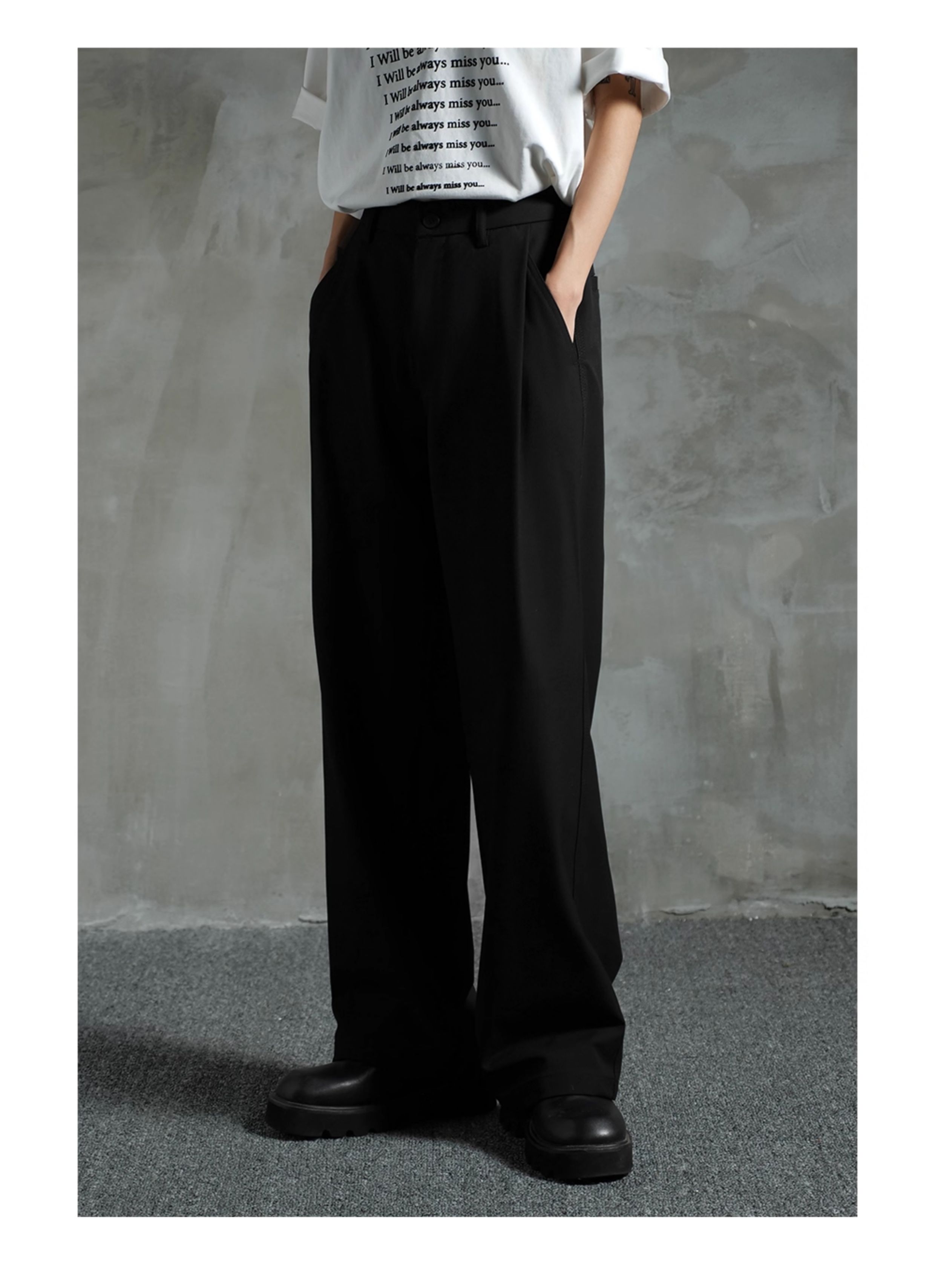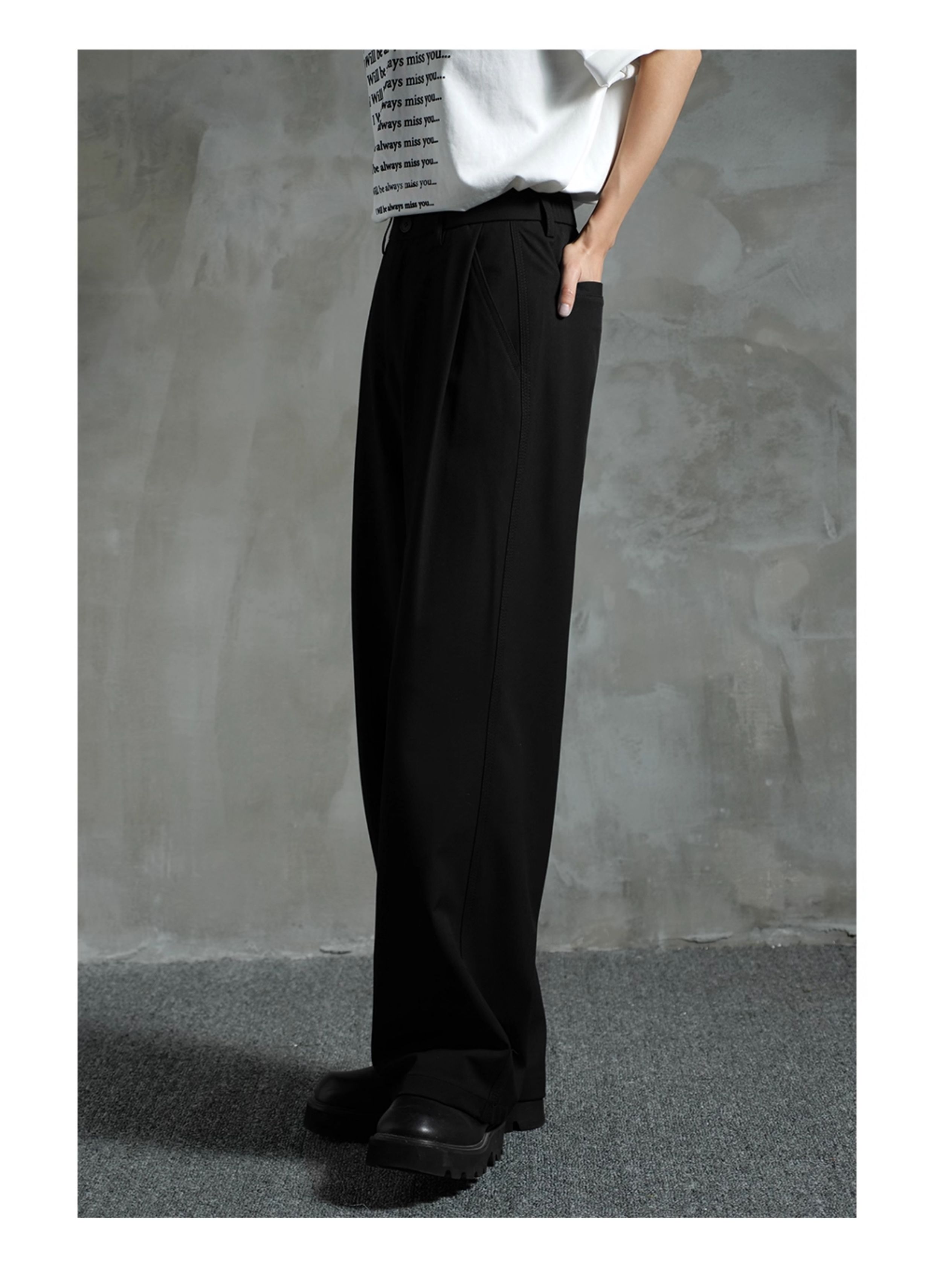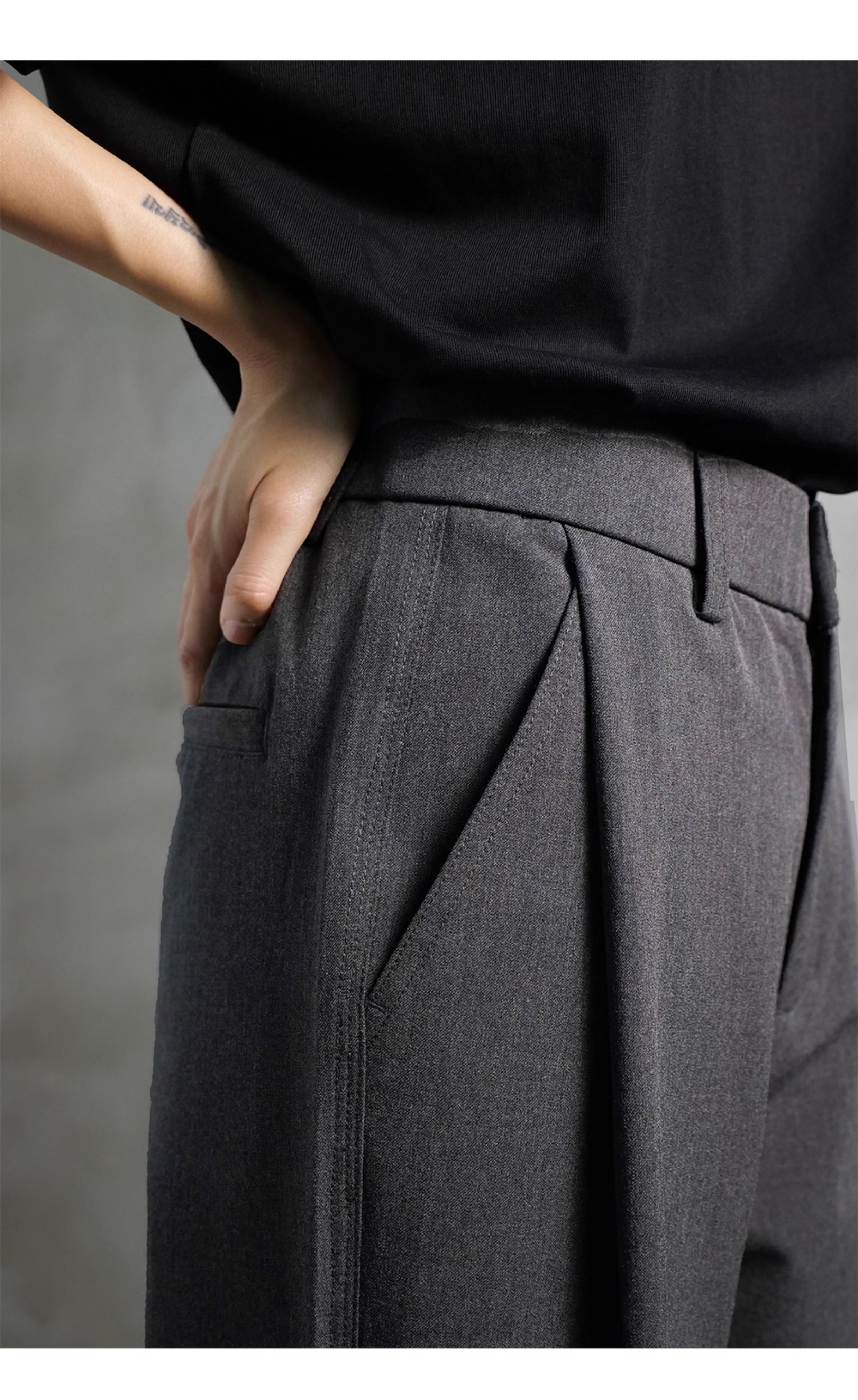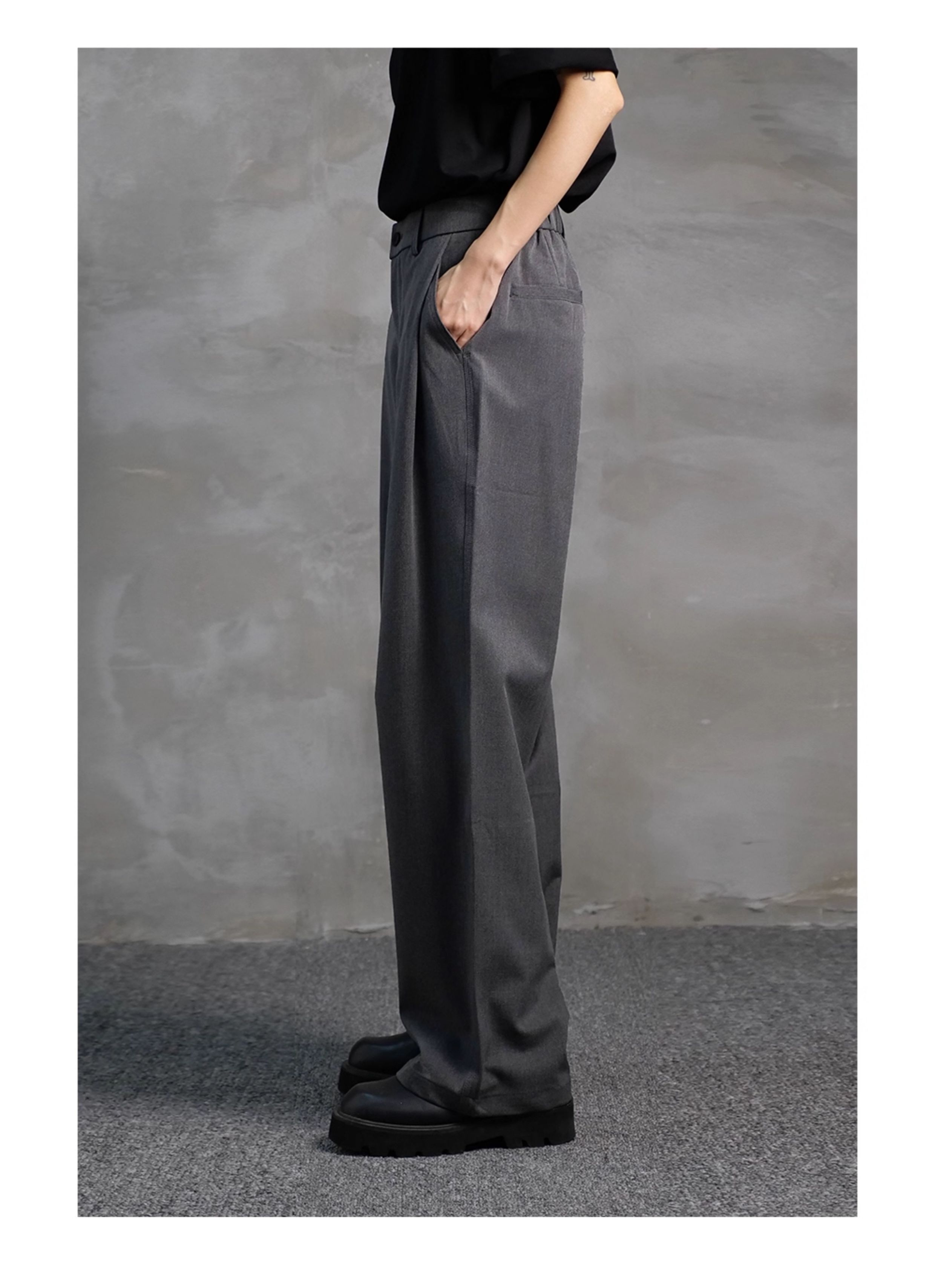【Spli】【Sanbenxi】Drapey Loose Straight-Leg Casual Suit Pants for Men, Gray Wide-Leg Suit Pants for All Seasons