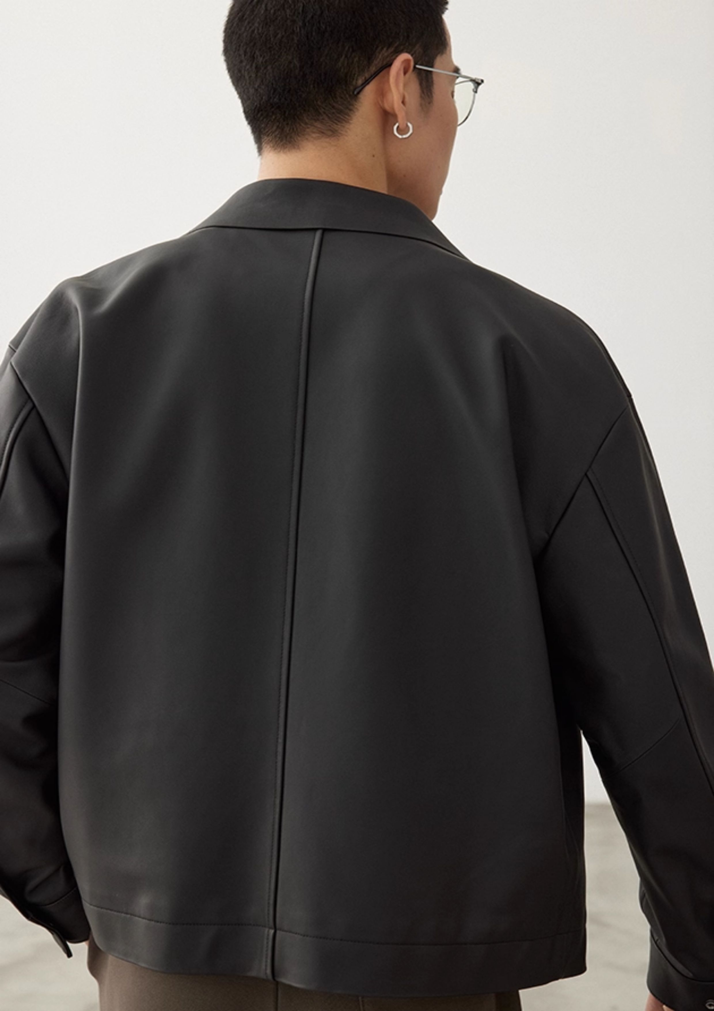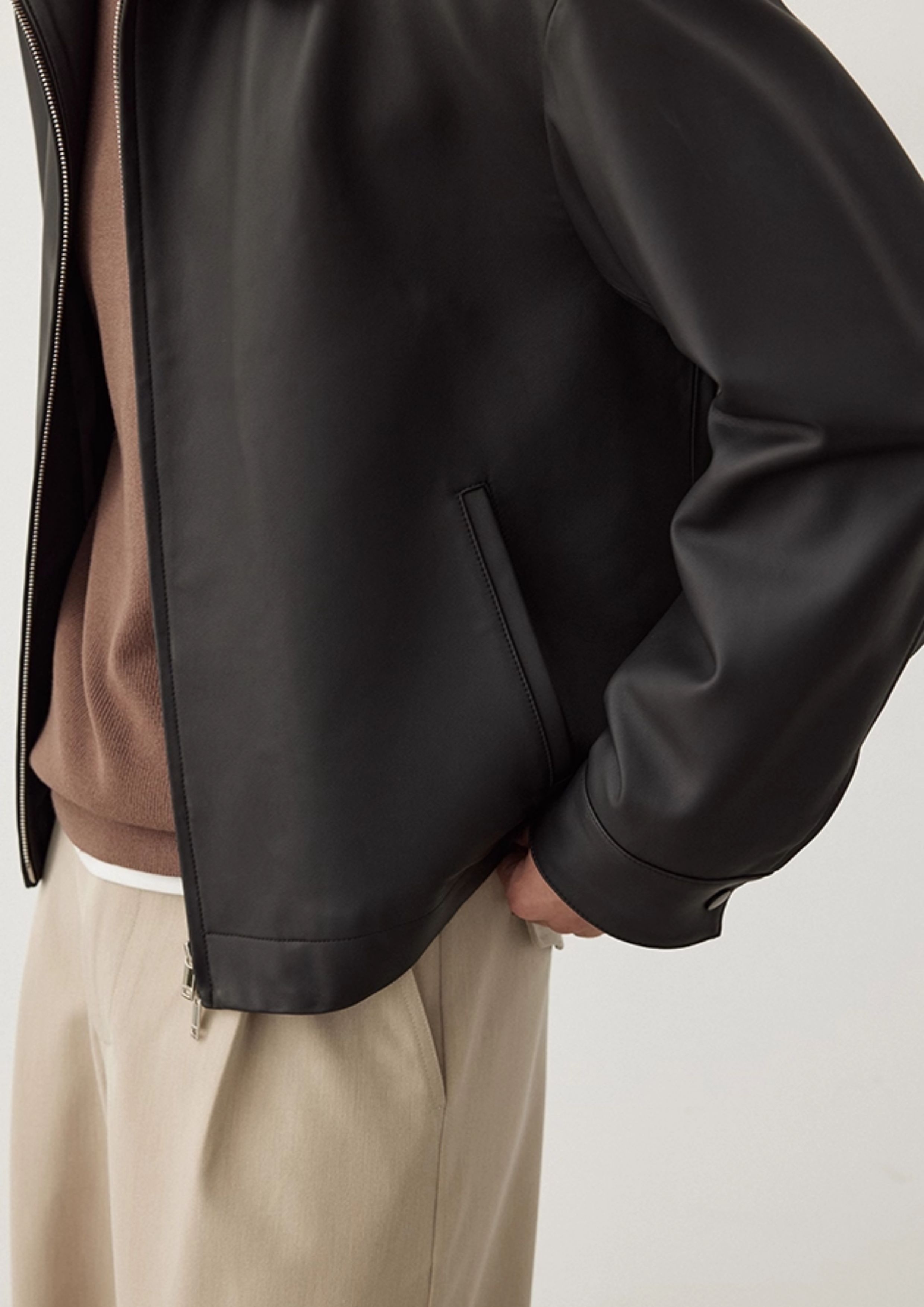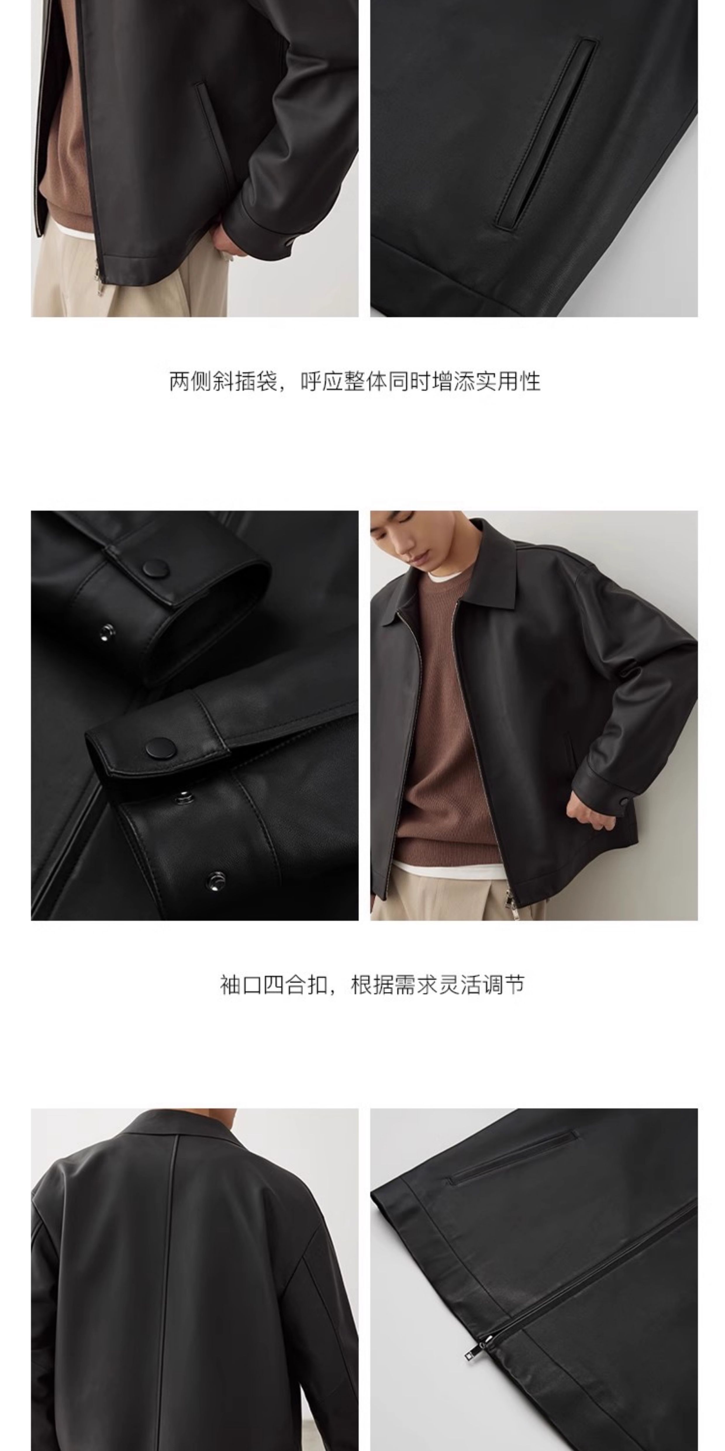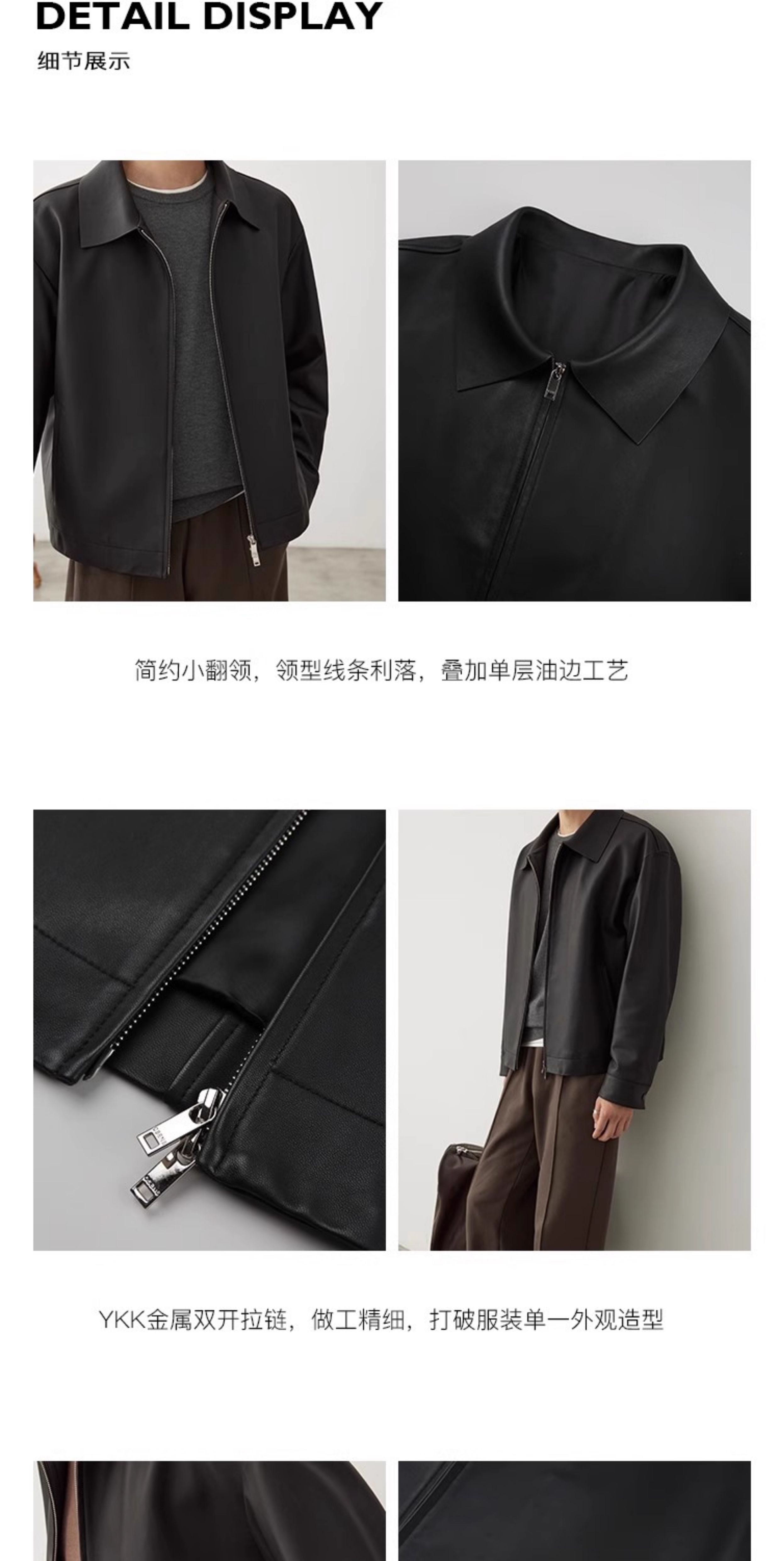Osens Imported Fine Soft Sheep Leather Classic Retro Lapel Zipper Jacket Men's Leather Jacket Autumn and Winter