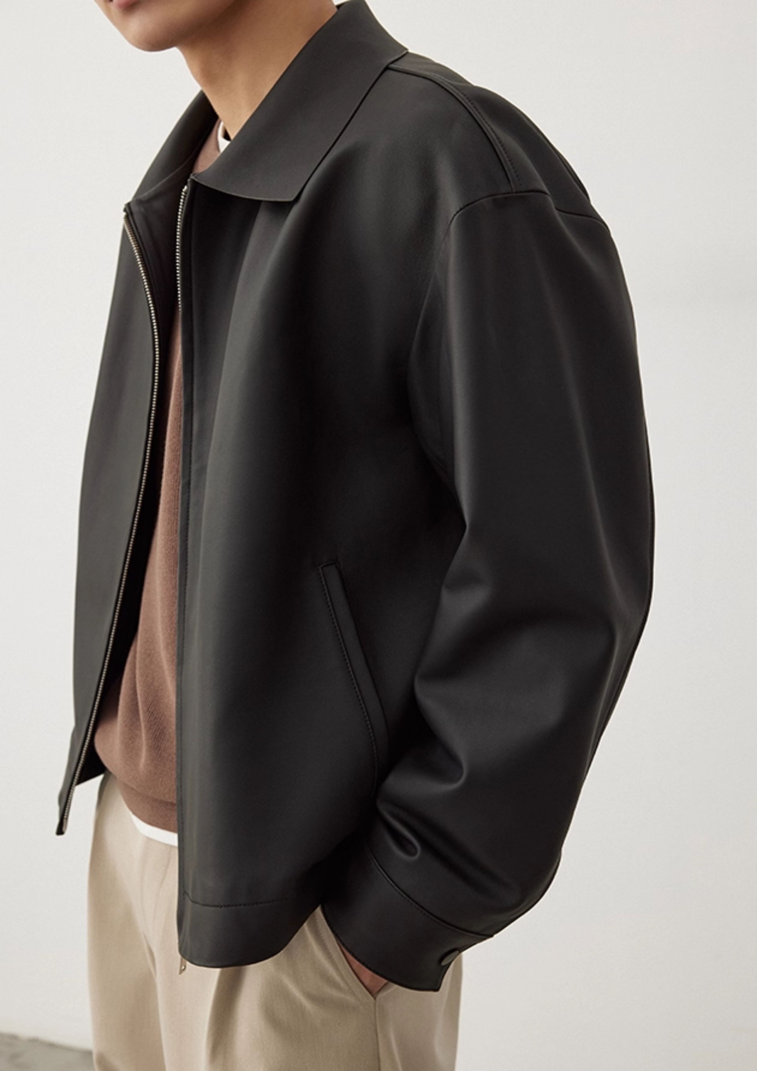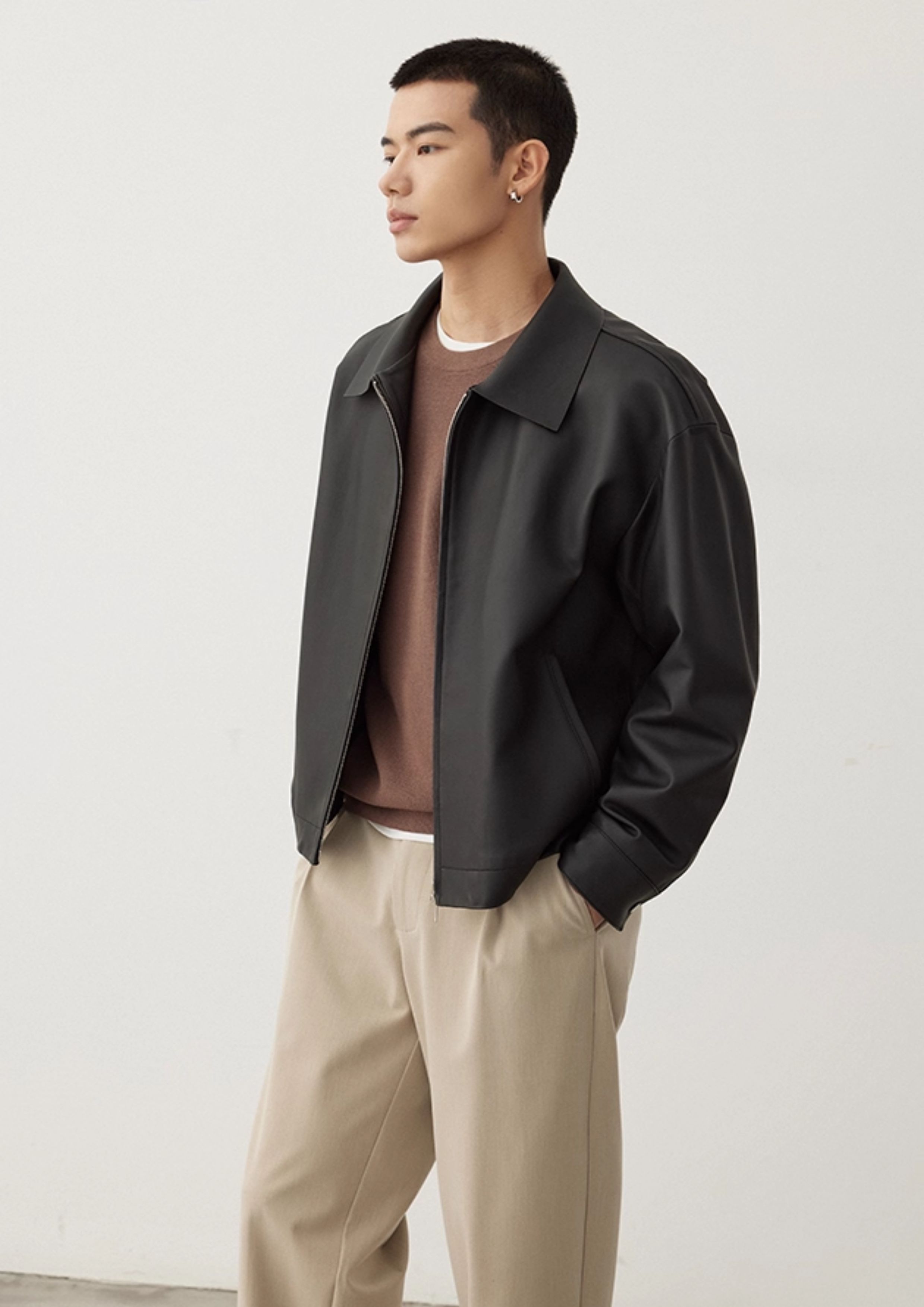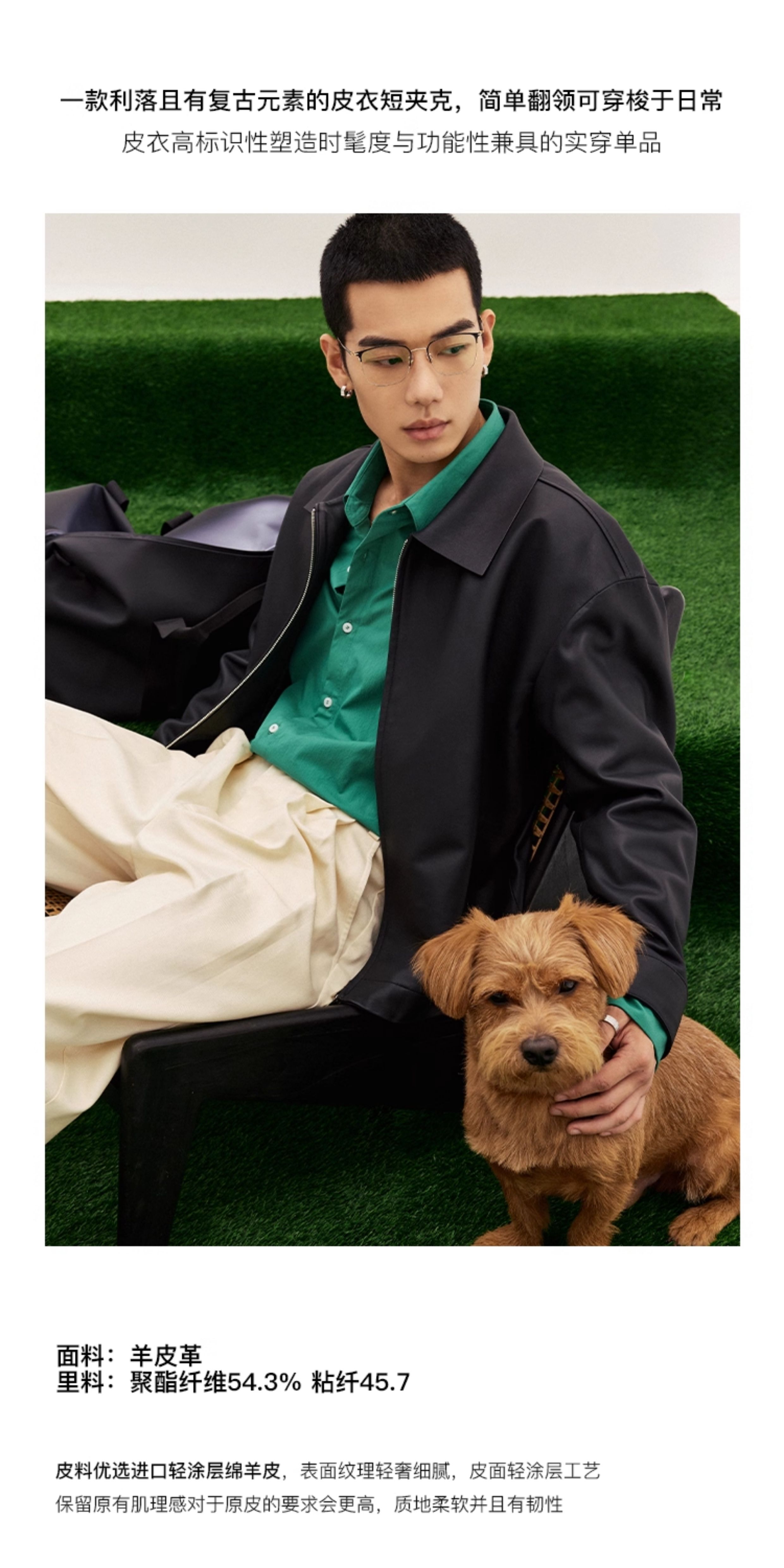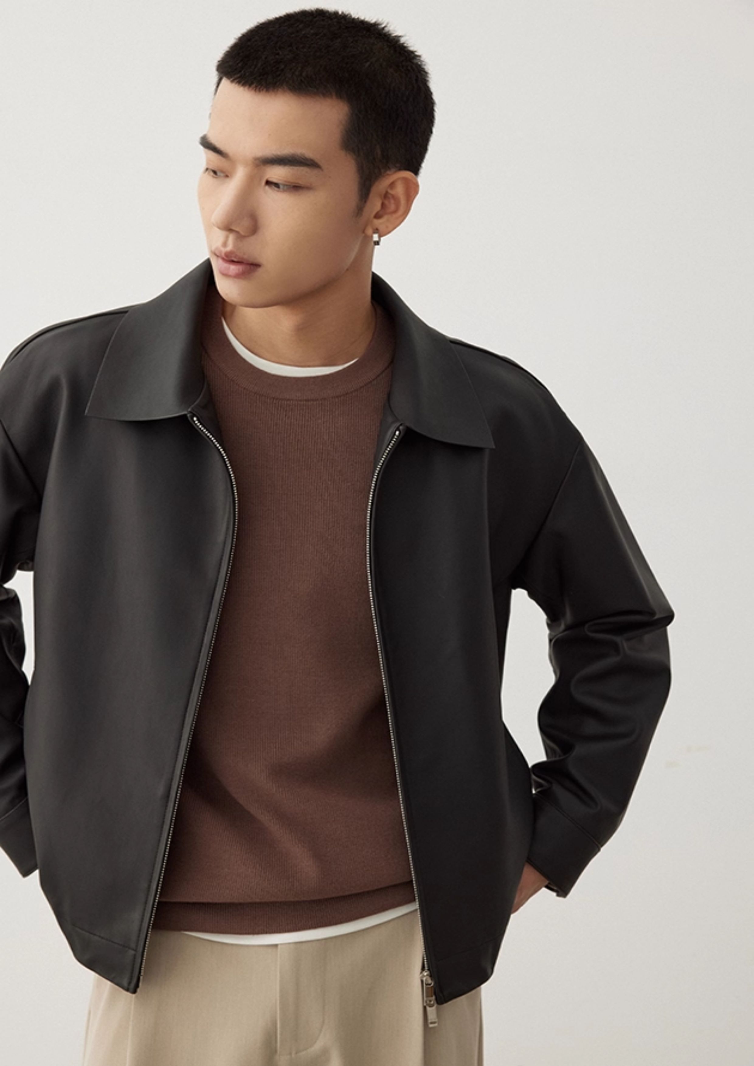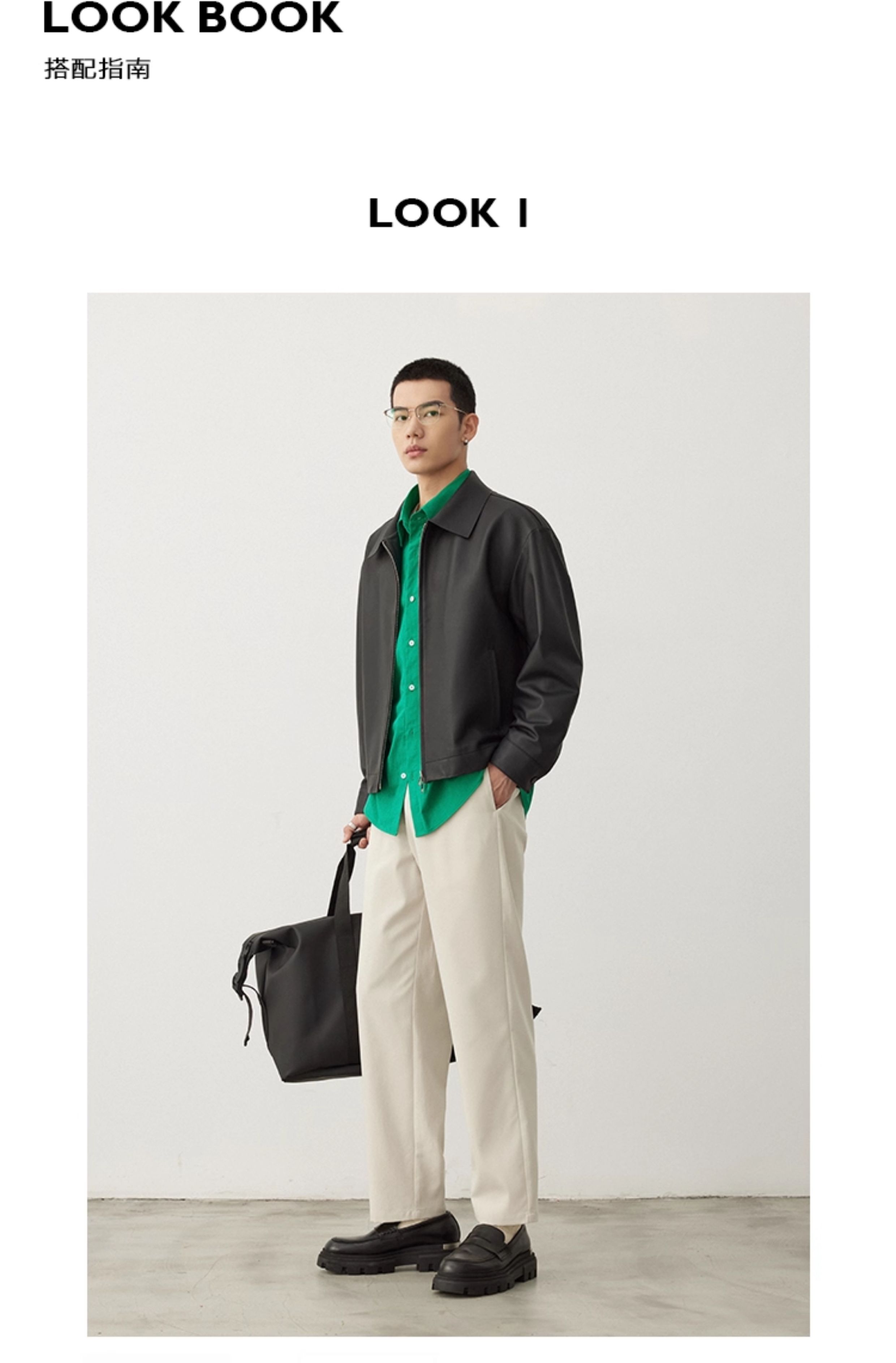Osens Imported Fine Soft Sheep Leather Classic Retro Lapel Zipper Jacket Men's Leather Jacket Autumn and Winter