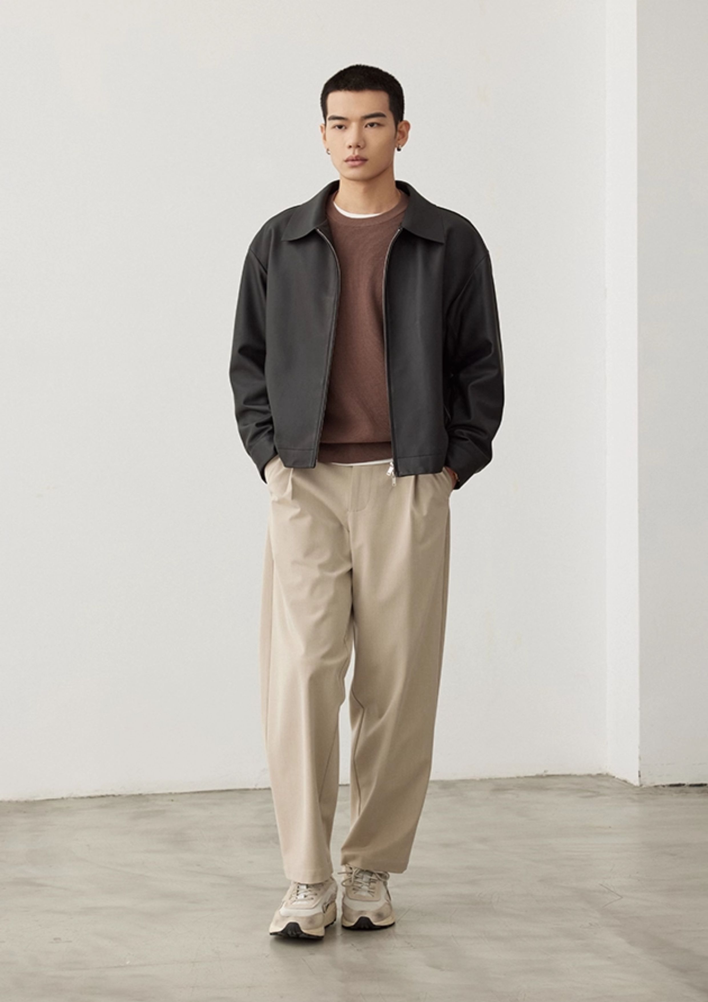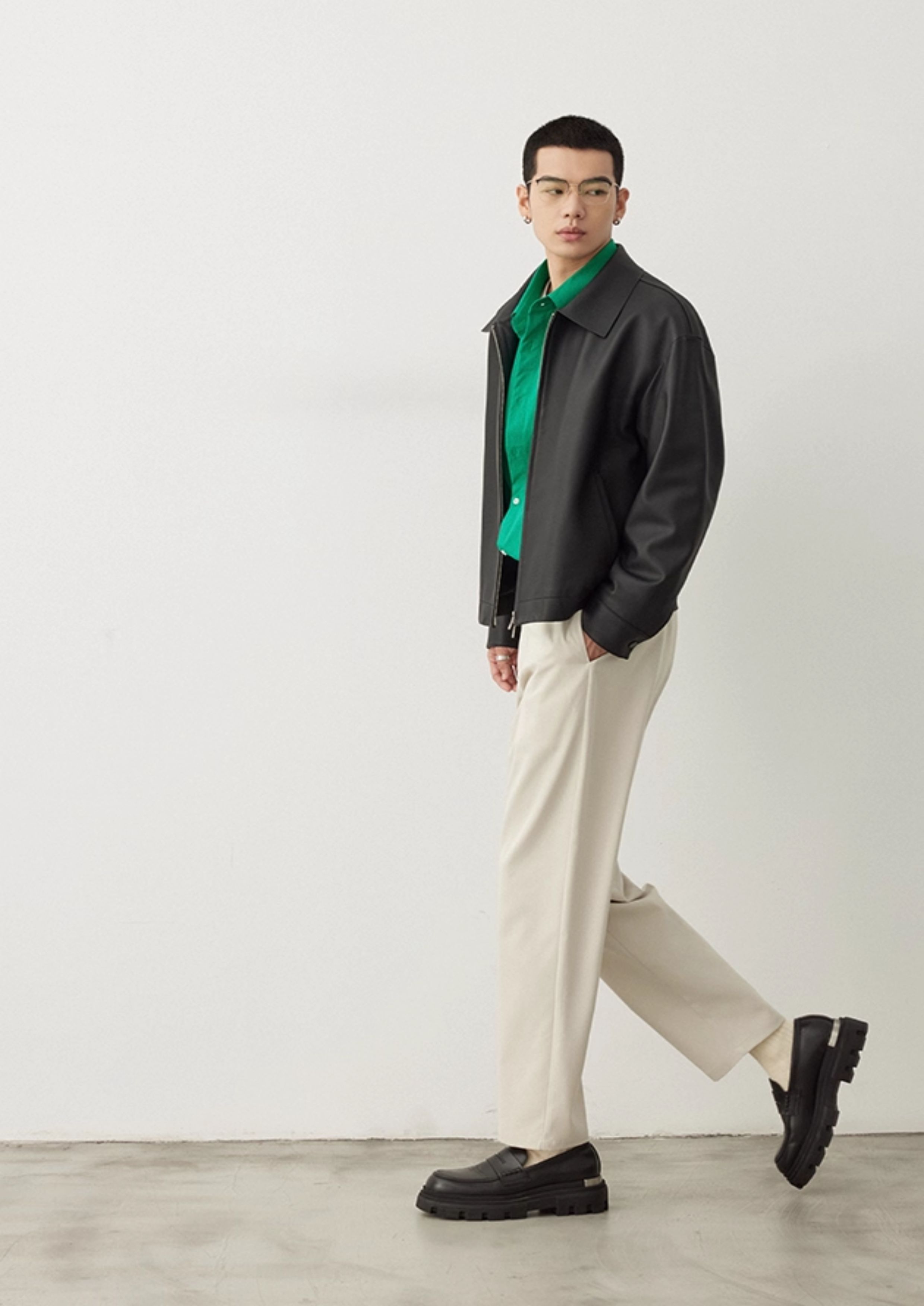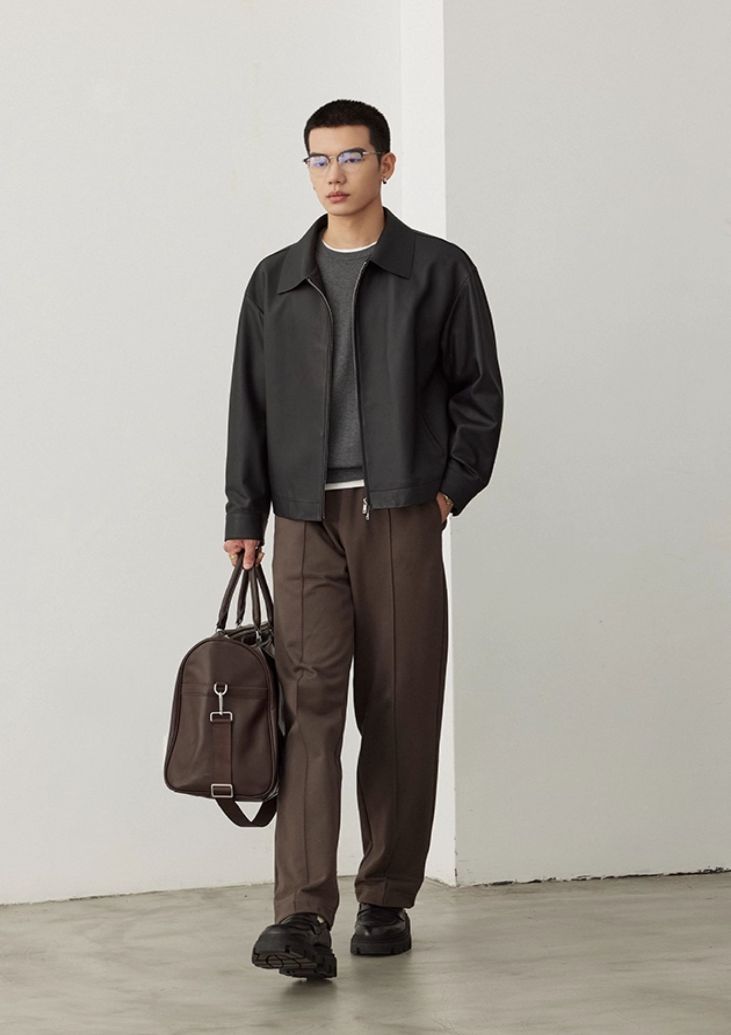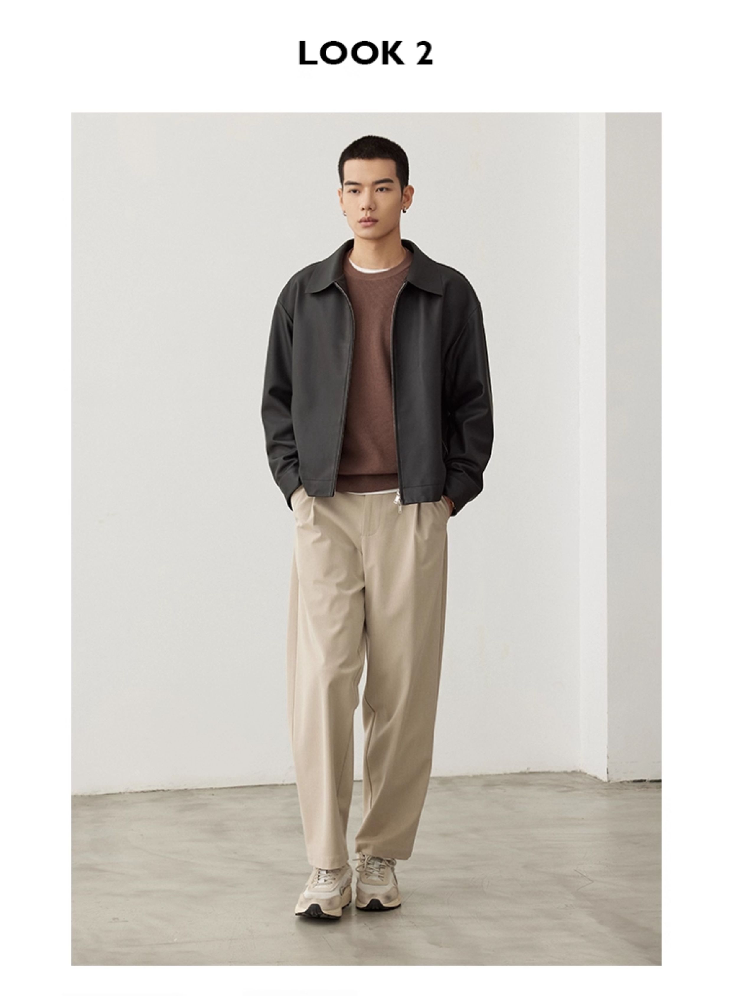 Osens Imported Fine Soft Sheep Leather Classic Retro Lapel Zipper Jacket Men's Leather Jacket Autumn and Winter