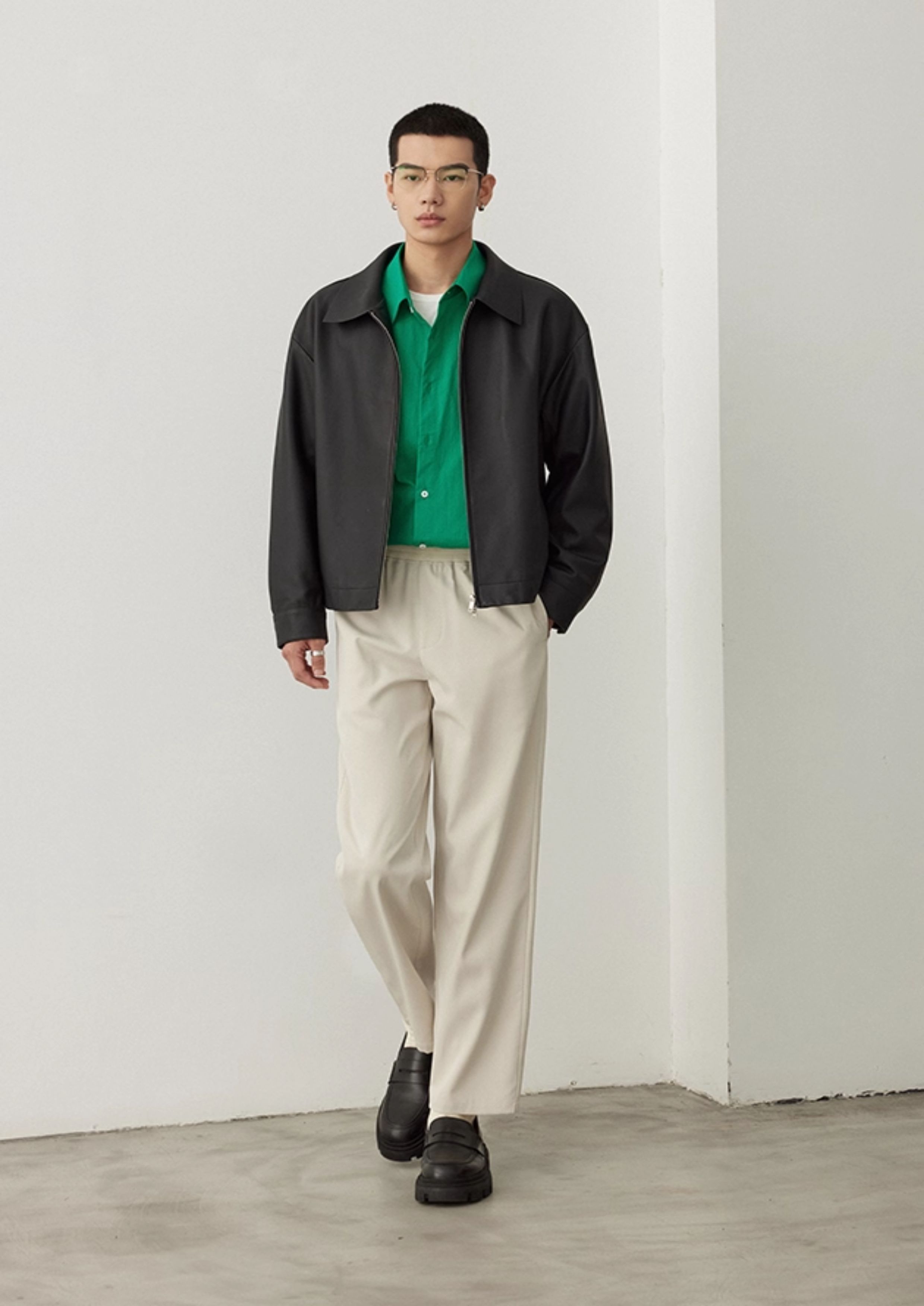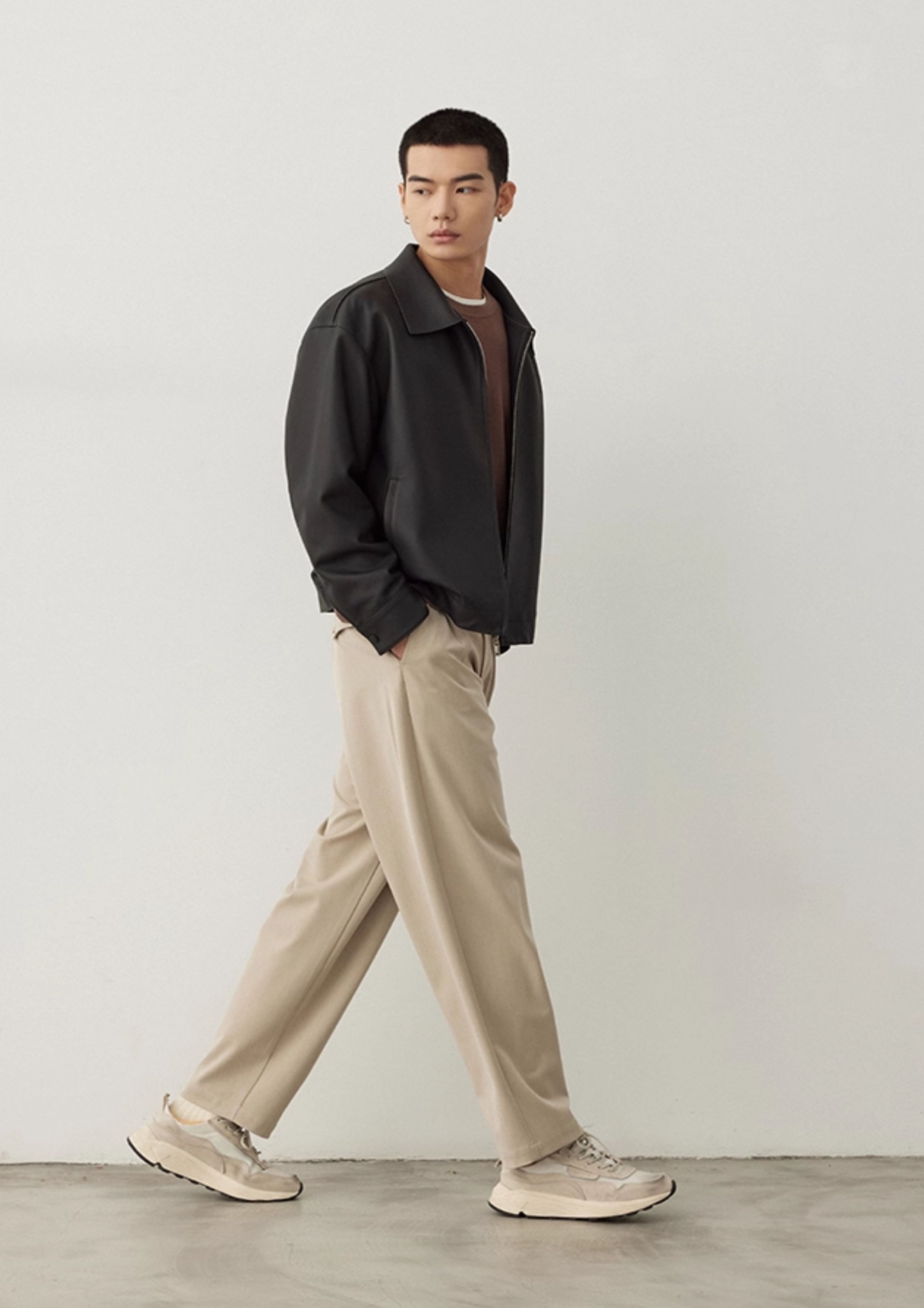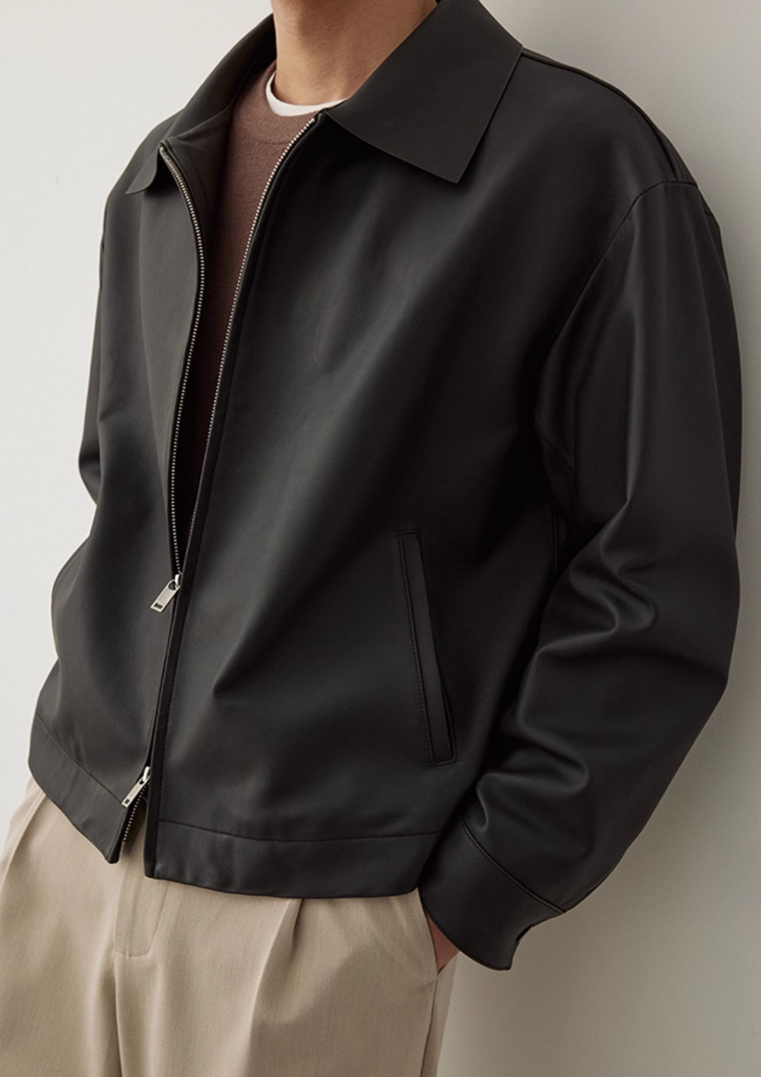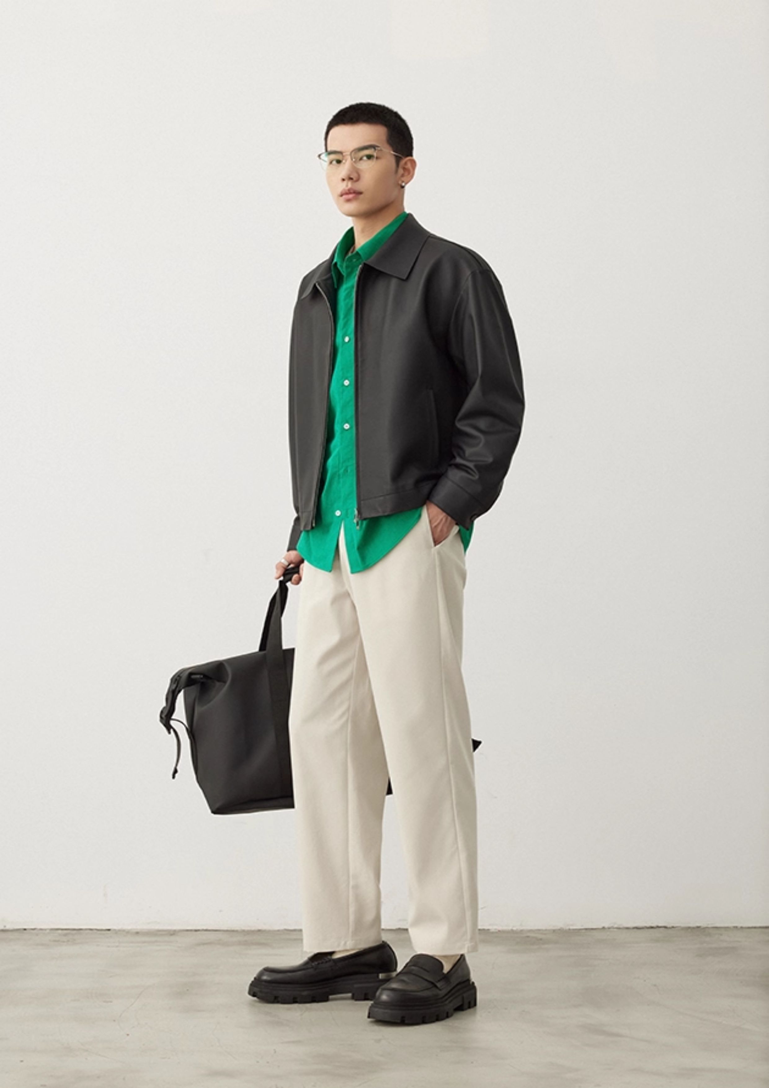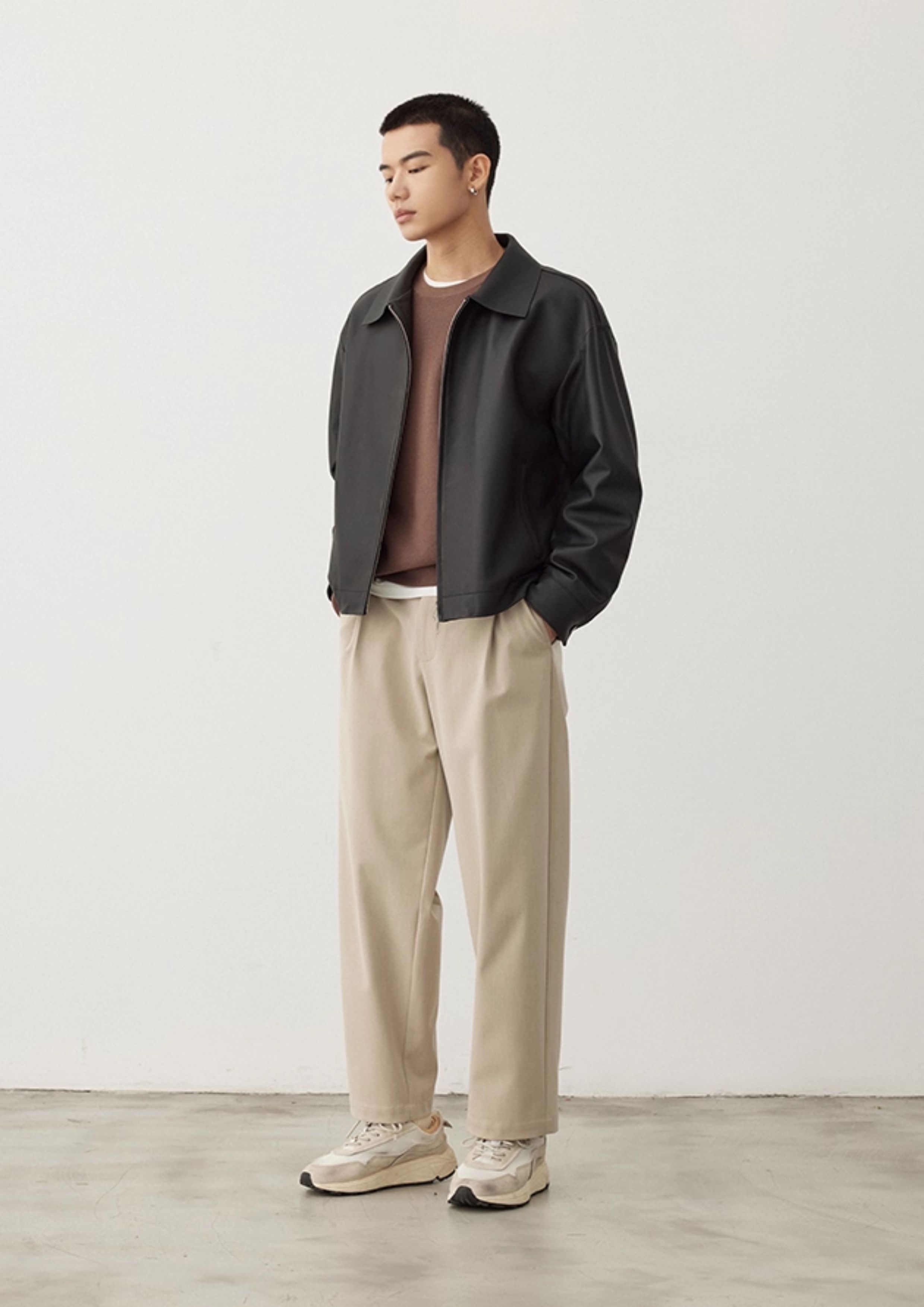 Osens Imported Fine Soft Sheep Leather Classic Retro Lapel Zipper Jacket Men's Leather Jacket Autumn and Winter