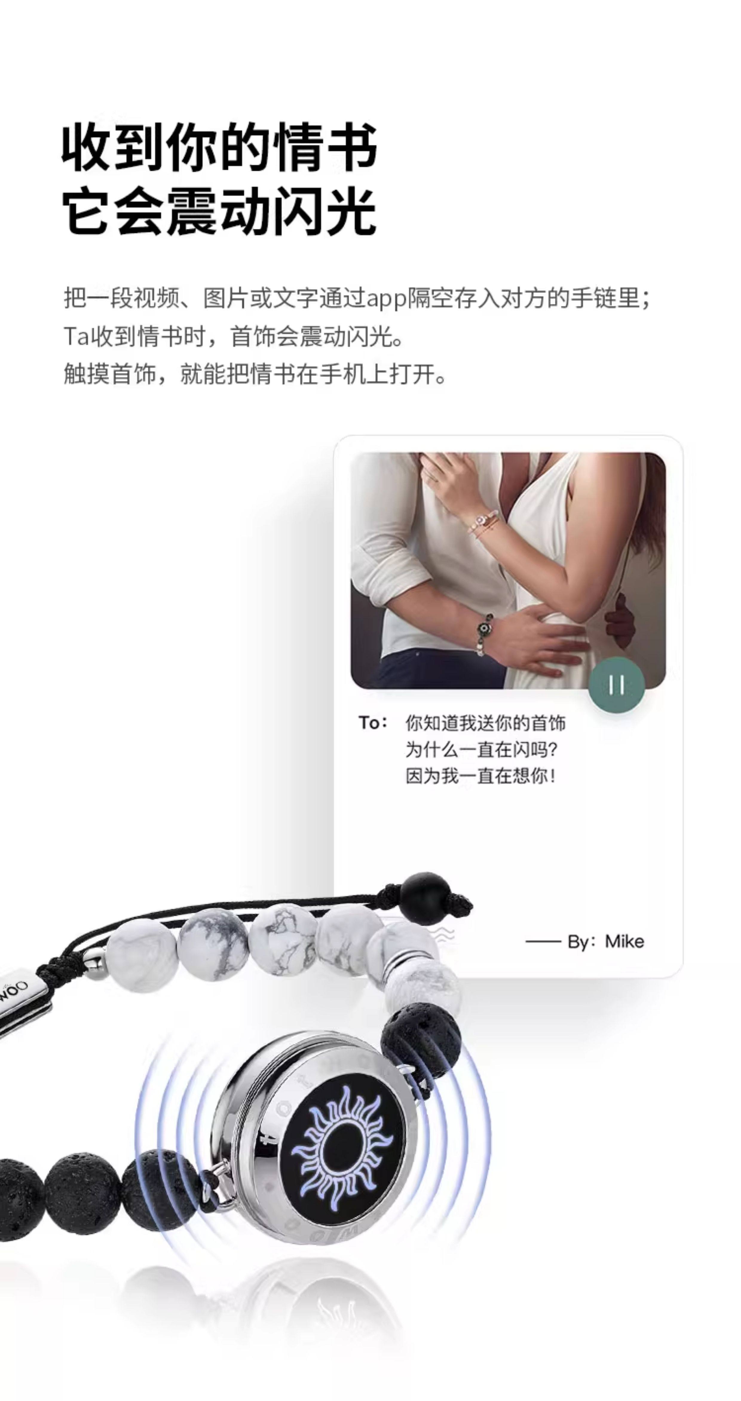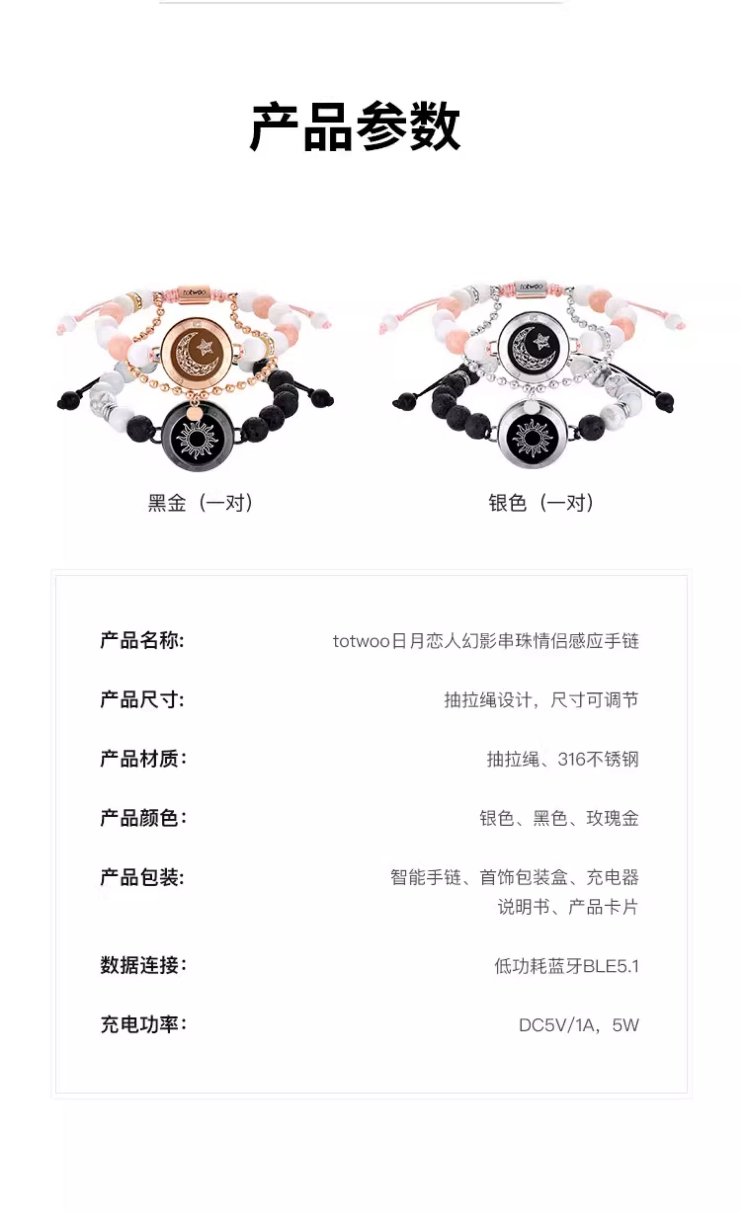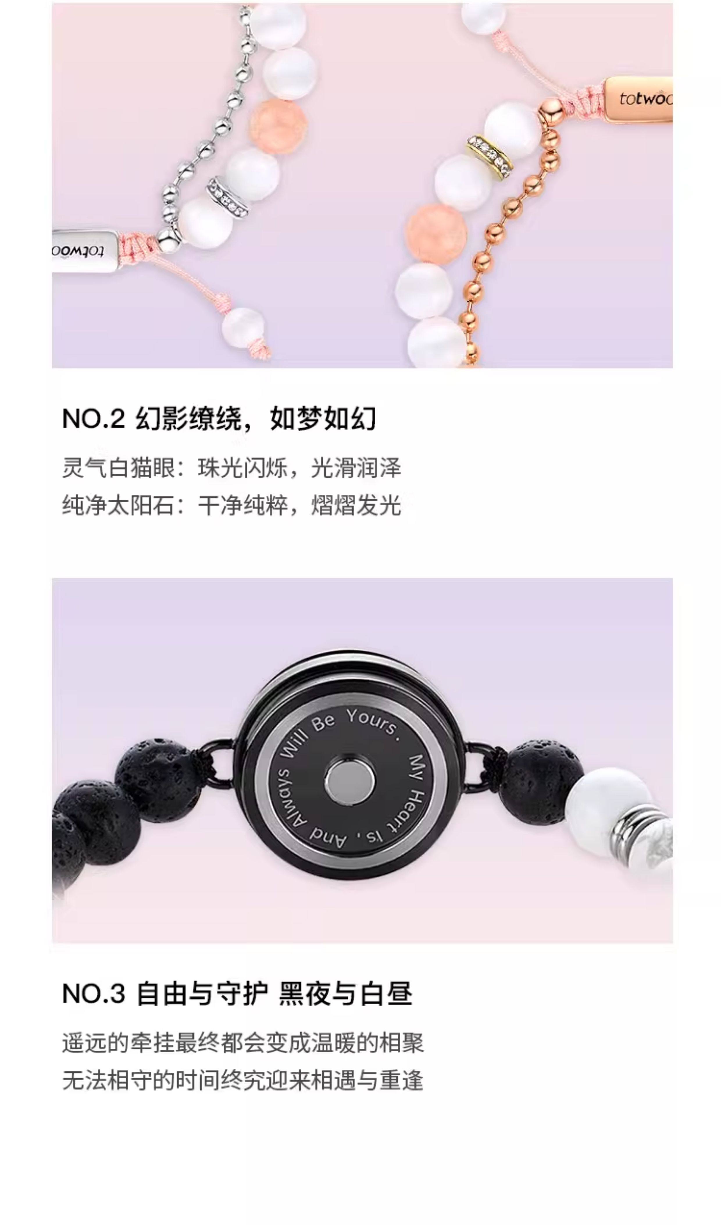 Totwoo Sun and Moon Lovers Phantom Beaded Couple Bracelet Intelligent Sensing Flashing Vibration Long-Distance Relationship Creative Gift