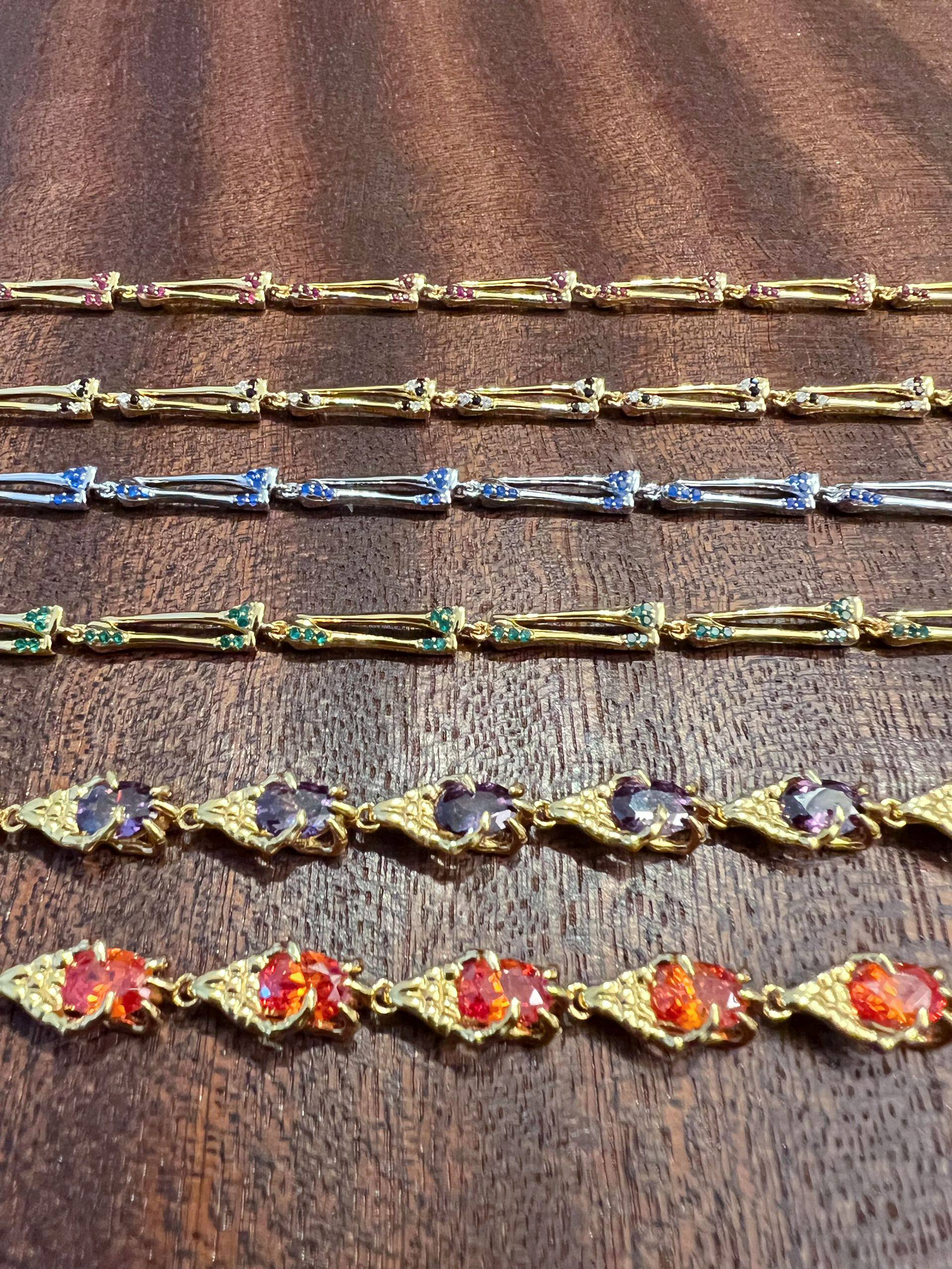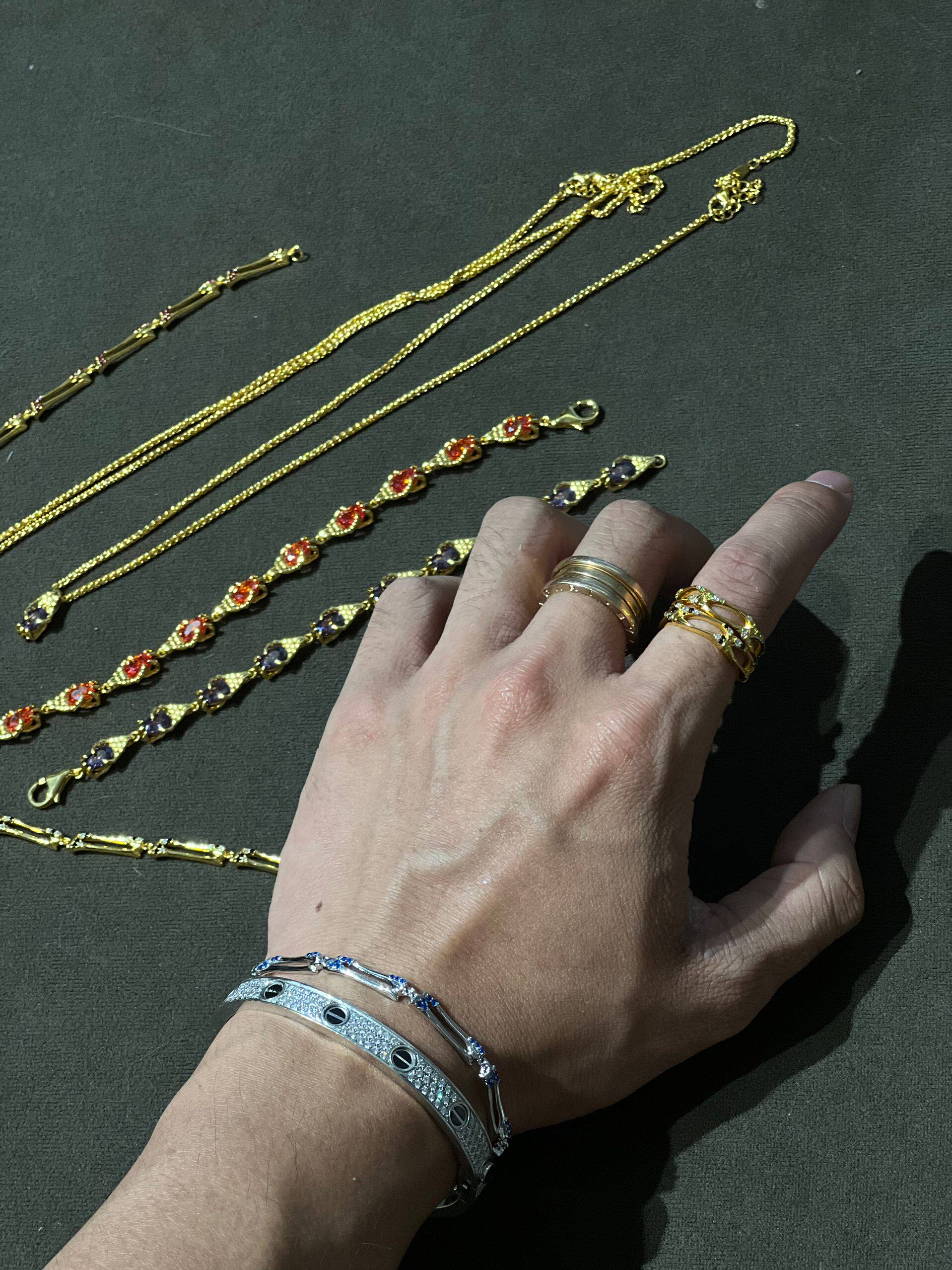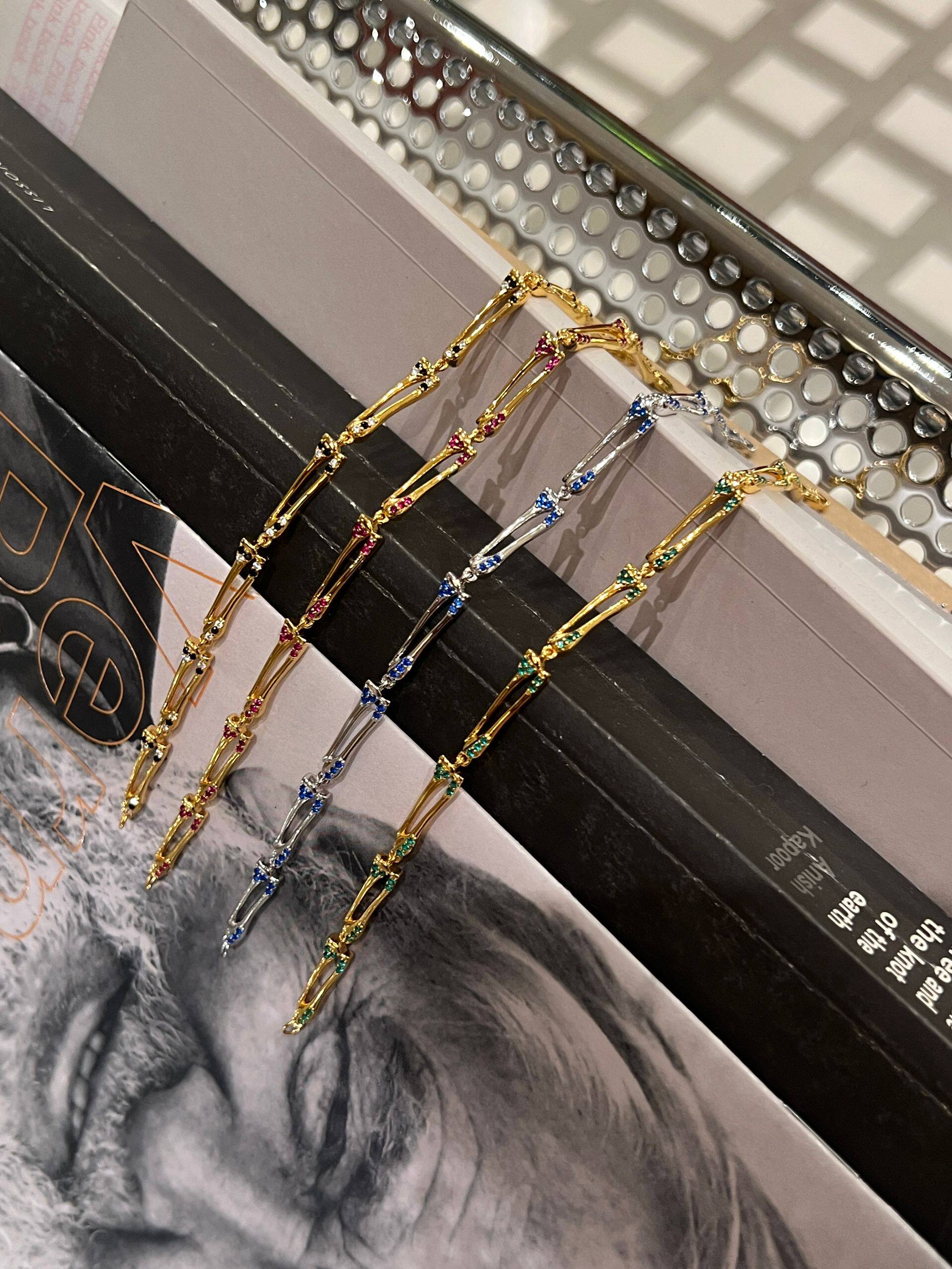 [Domestic Stock] Purey · Wr 925 Silver Plated with 22K Gold Double-Layer Bone-Shaped Colored Diamond Bracelet