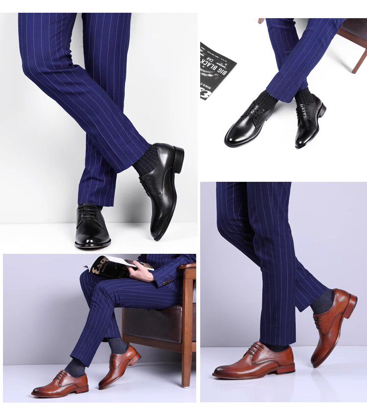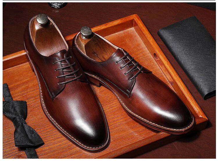 Fsnoble Leather Shoes Men's Formal Business Genuine Leather Brown Wedding Shoes Large Size Handmade Men's First Layer Cowhide Men's Shoes