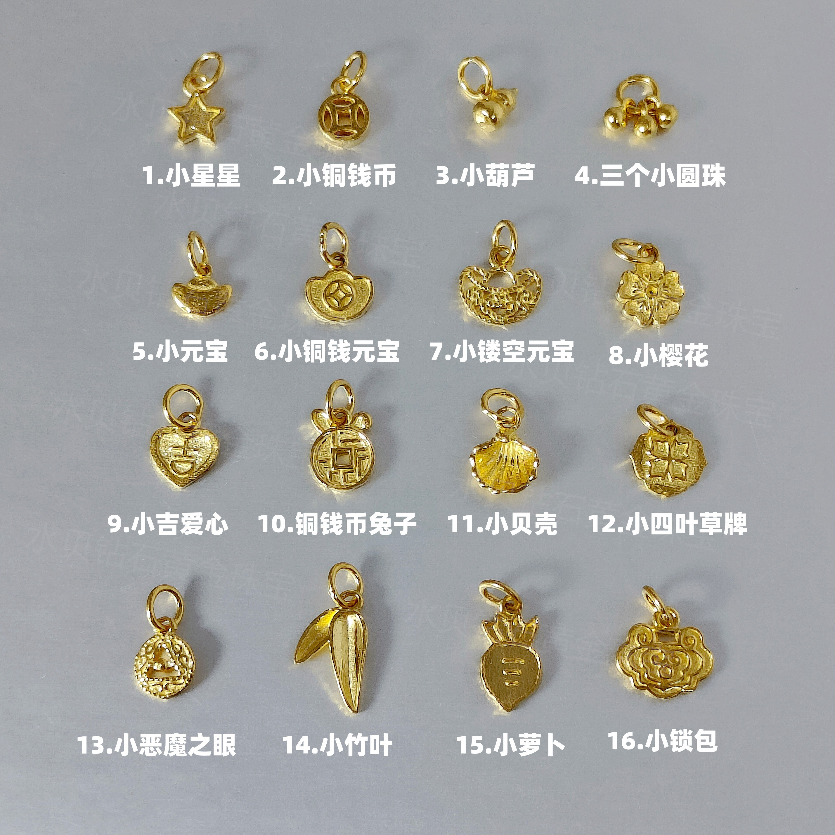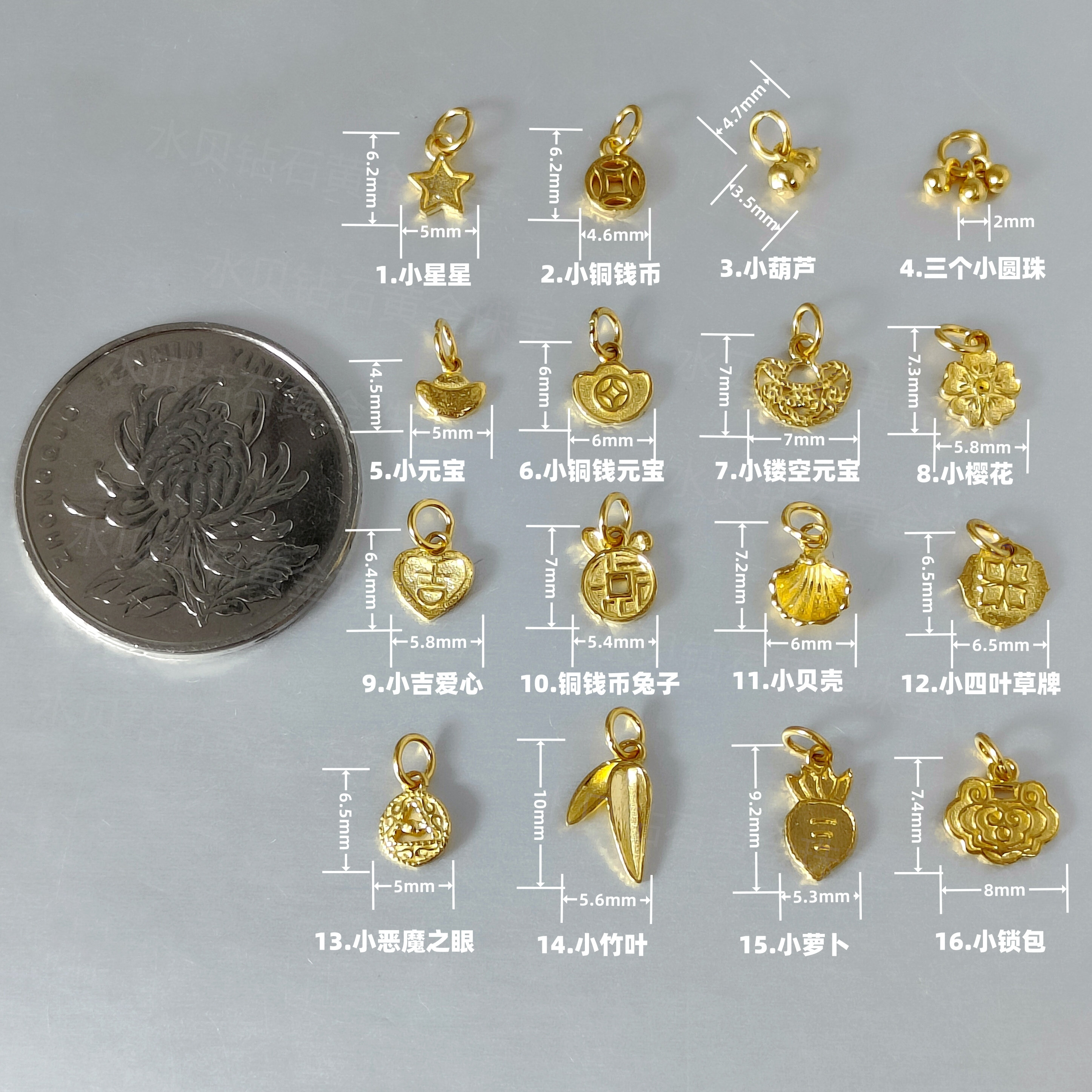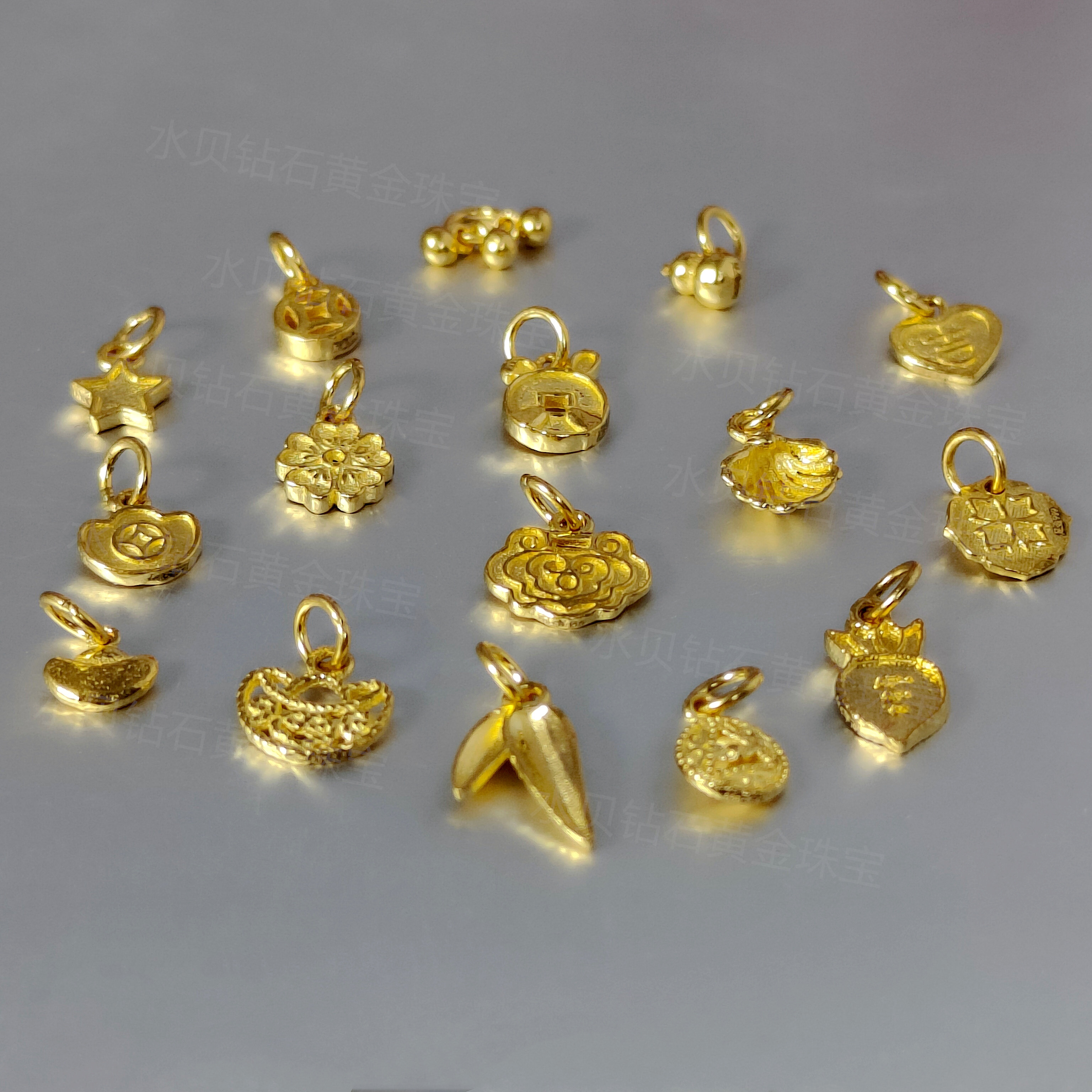 Solid Gold Small Pendant, Pure Gold 999, Gourd, Copper Coin, Ingot, Heart, Star, Lock, Bag, Bamboo Leaf, Pure Gold Pendant