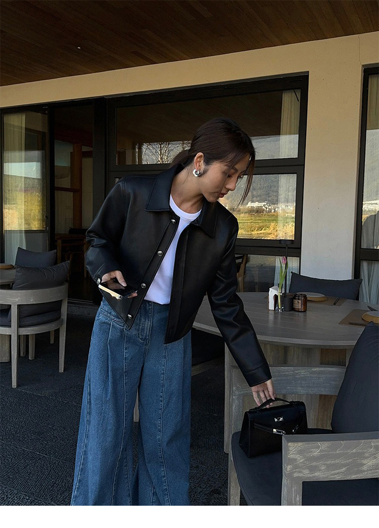 Black High-End Short Leather Jacket for Women 2026 Autumn New American Style Motorcycle Versatile Pu Leather Jacket Top