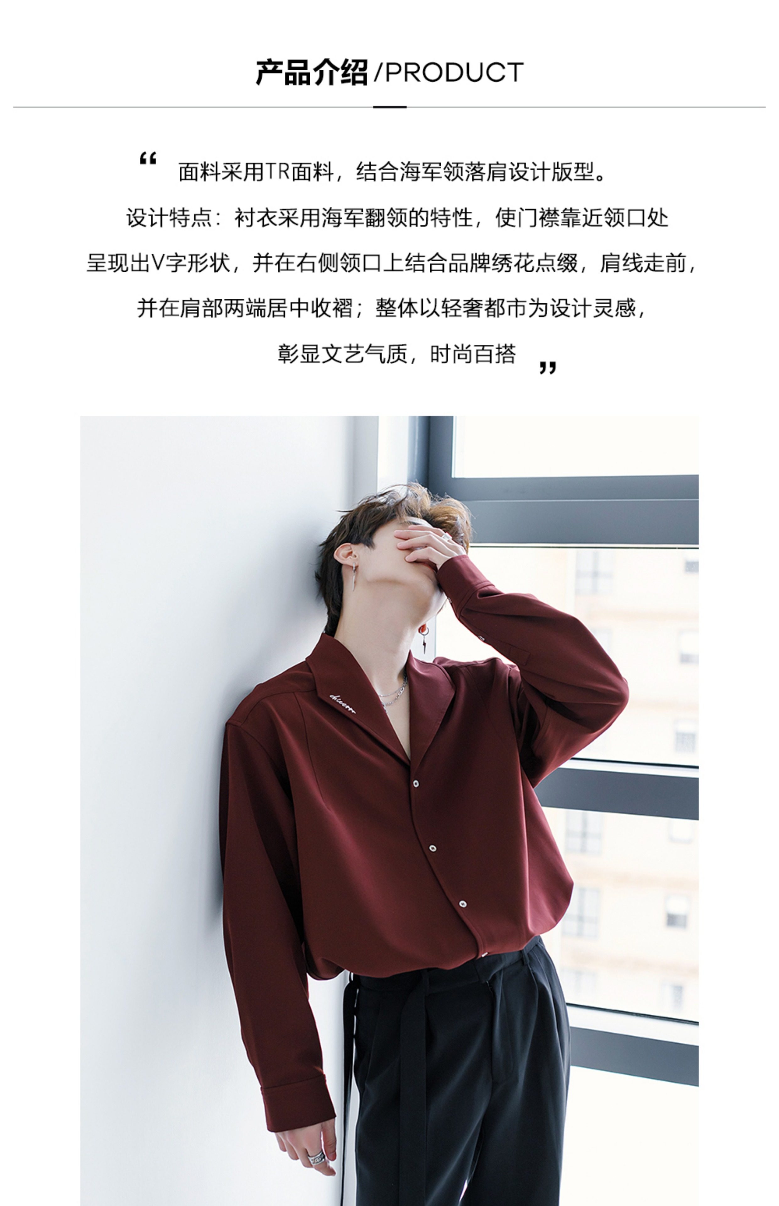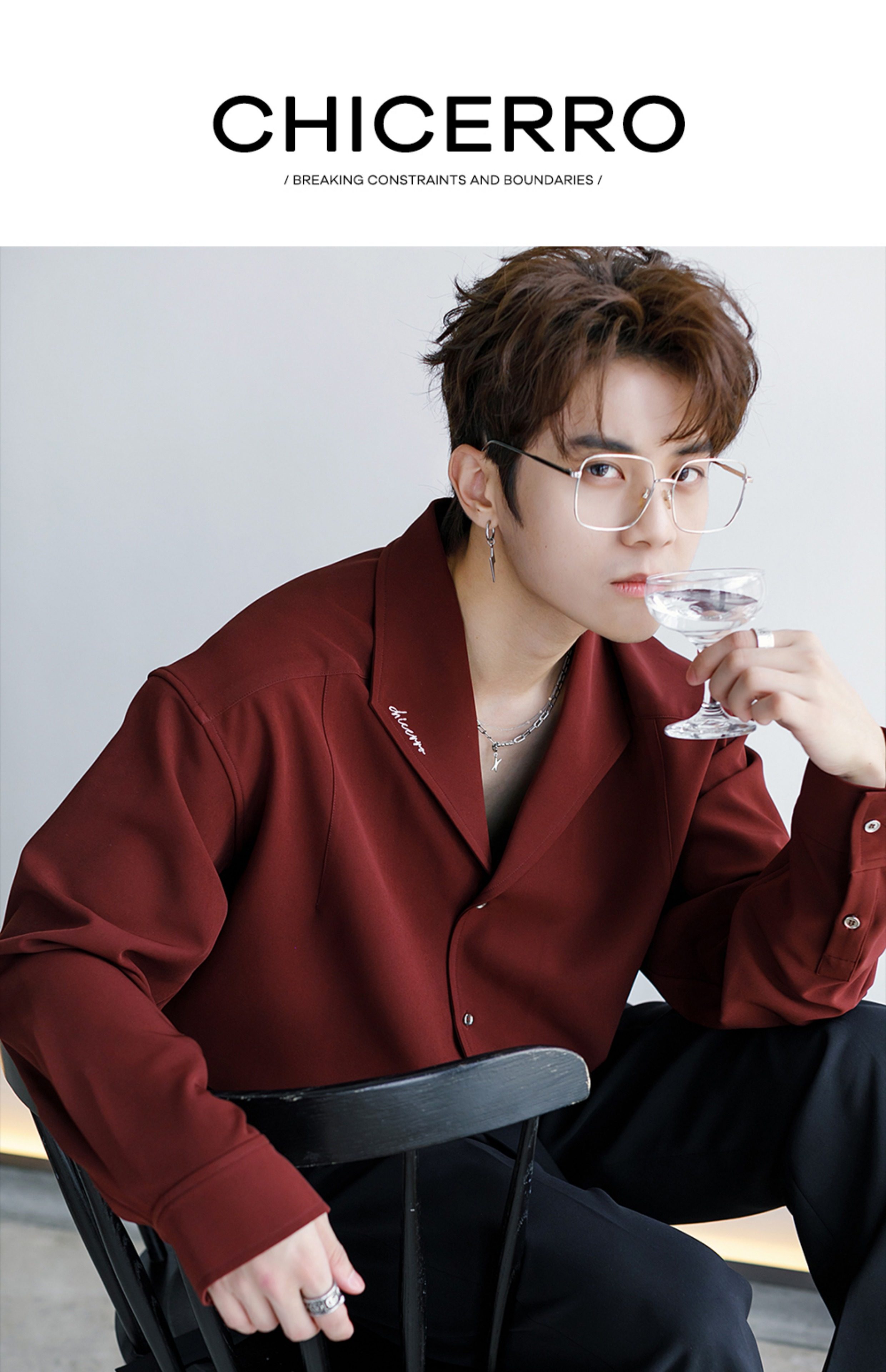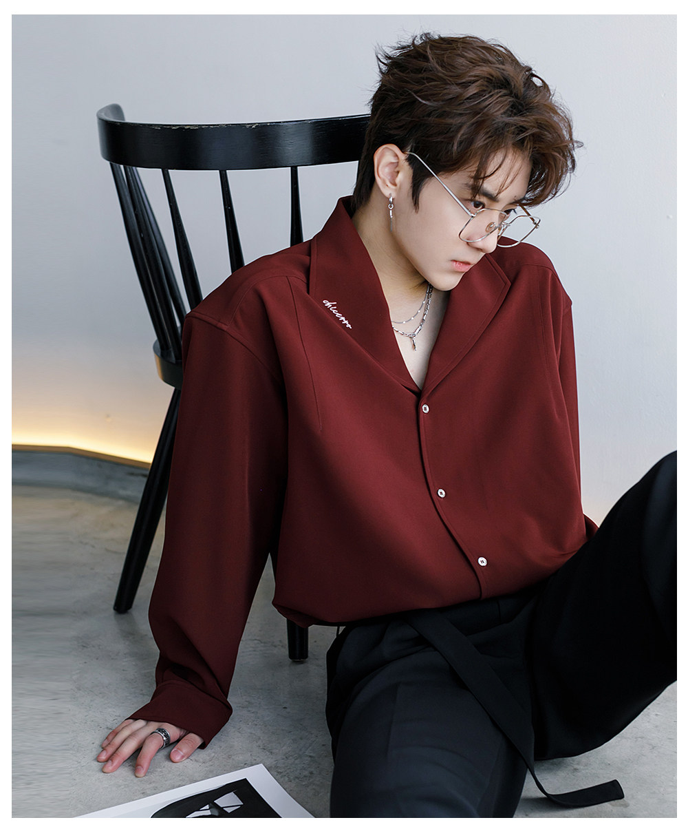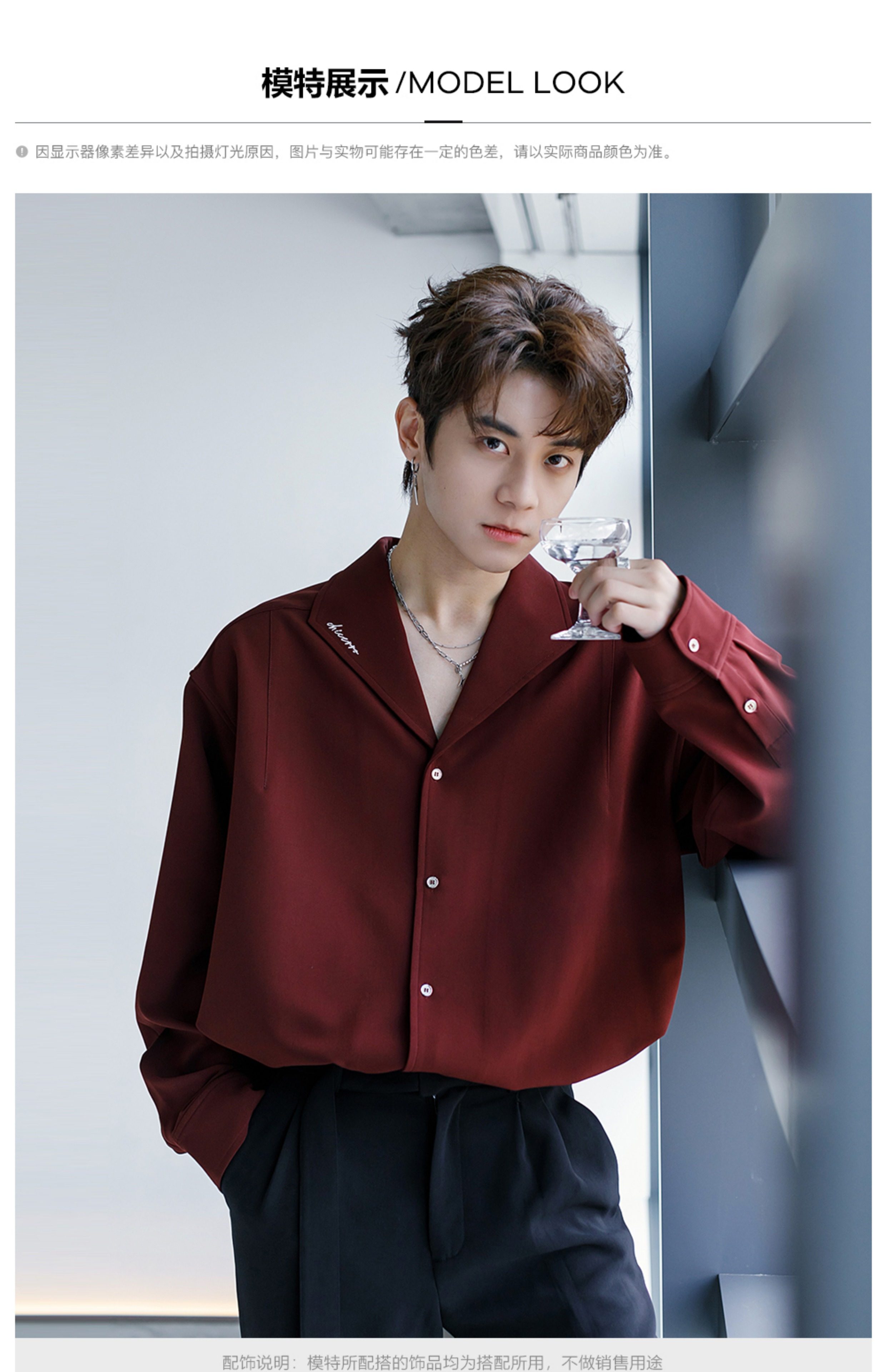 Chicerro Sicilian Men's Spring Burgundy Stylish High-End Men's Casual Long-Sleeve Shirt Top Trendy