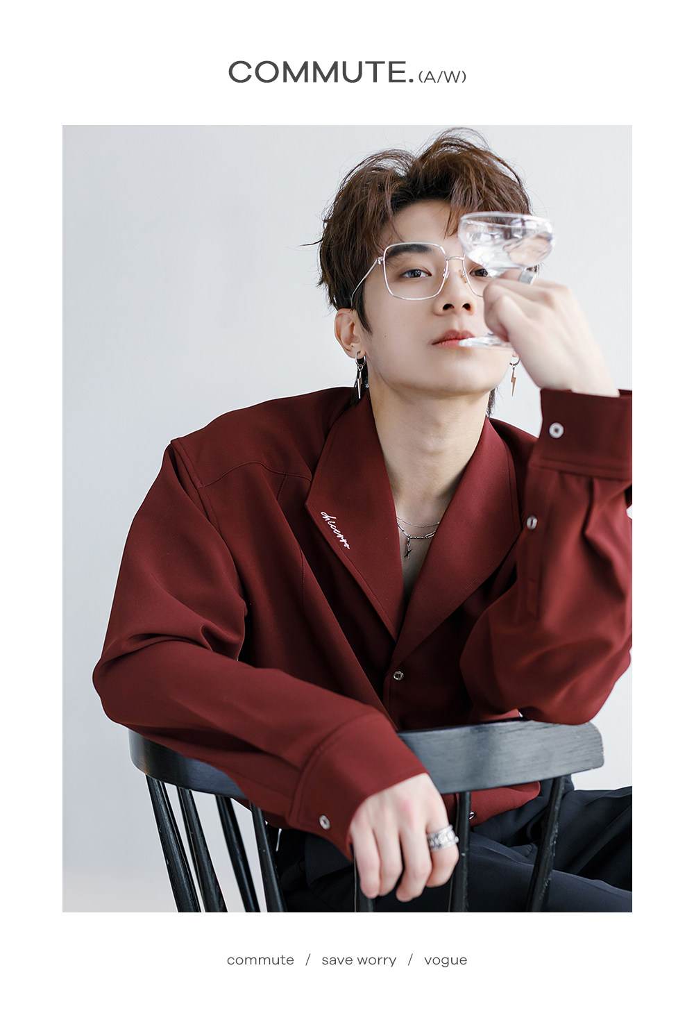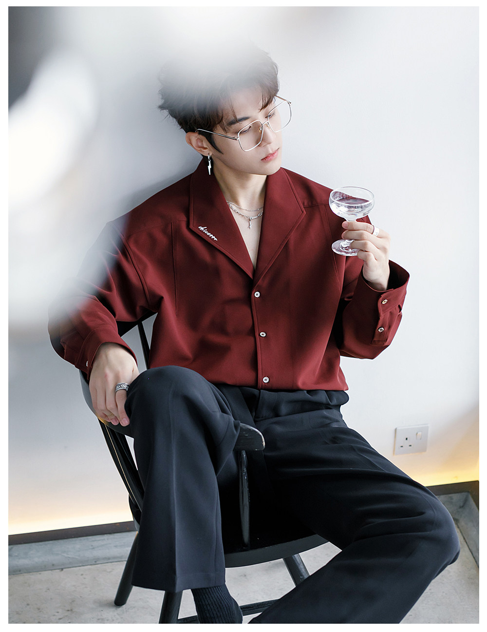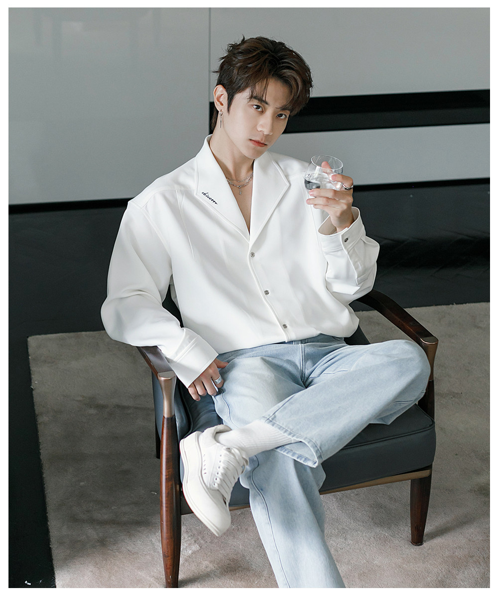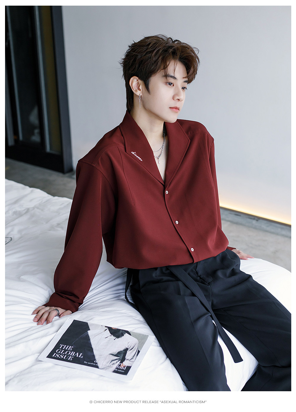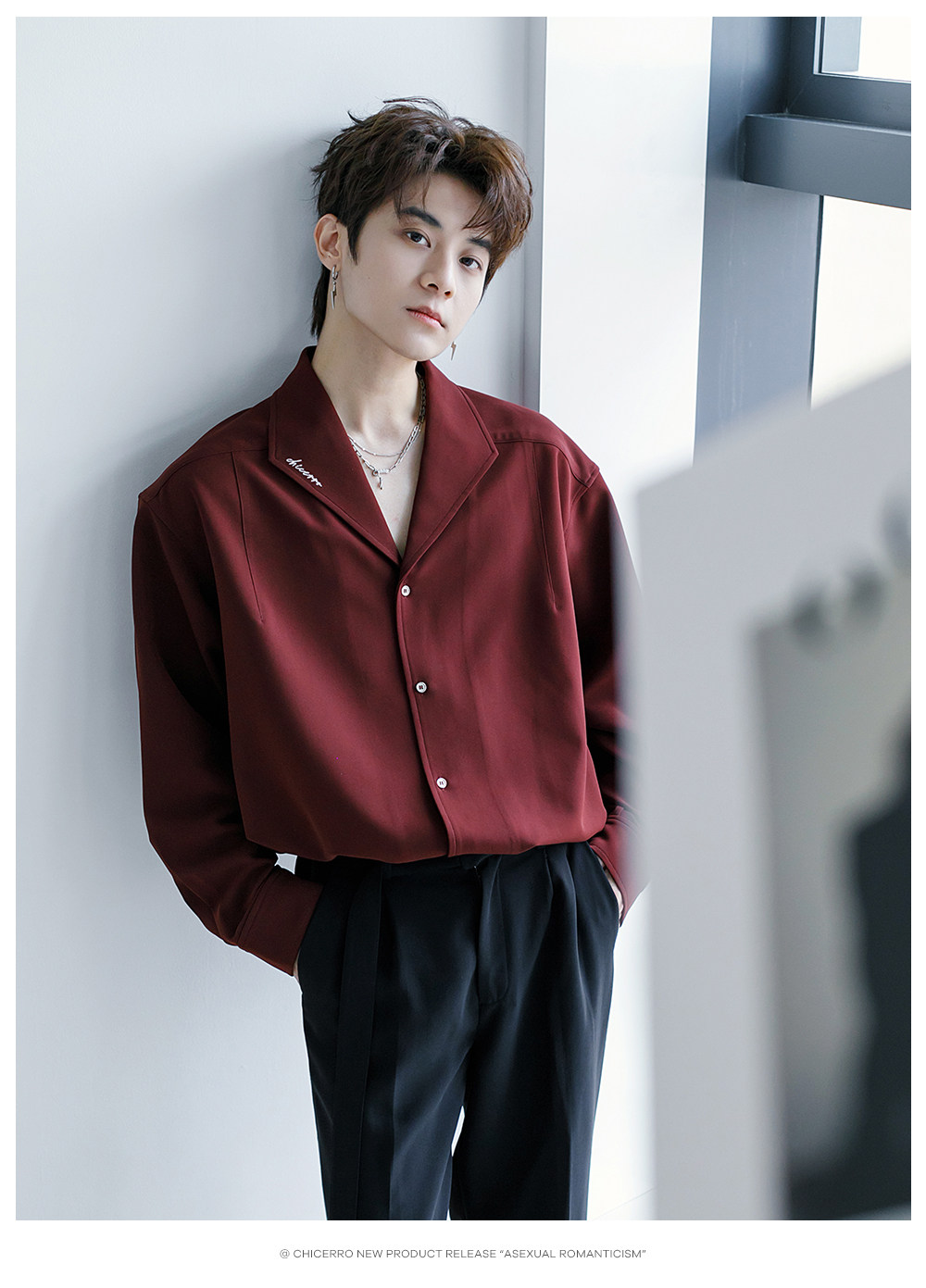 Chicerro Sicilian Men's Spring Burgundy Stylish High-End Men's Casual Long-Sleeve Shirt Top Trendy