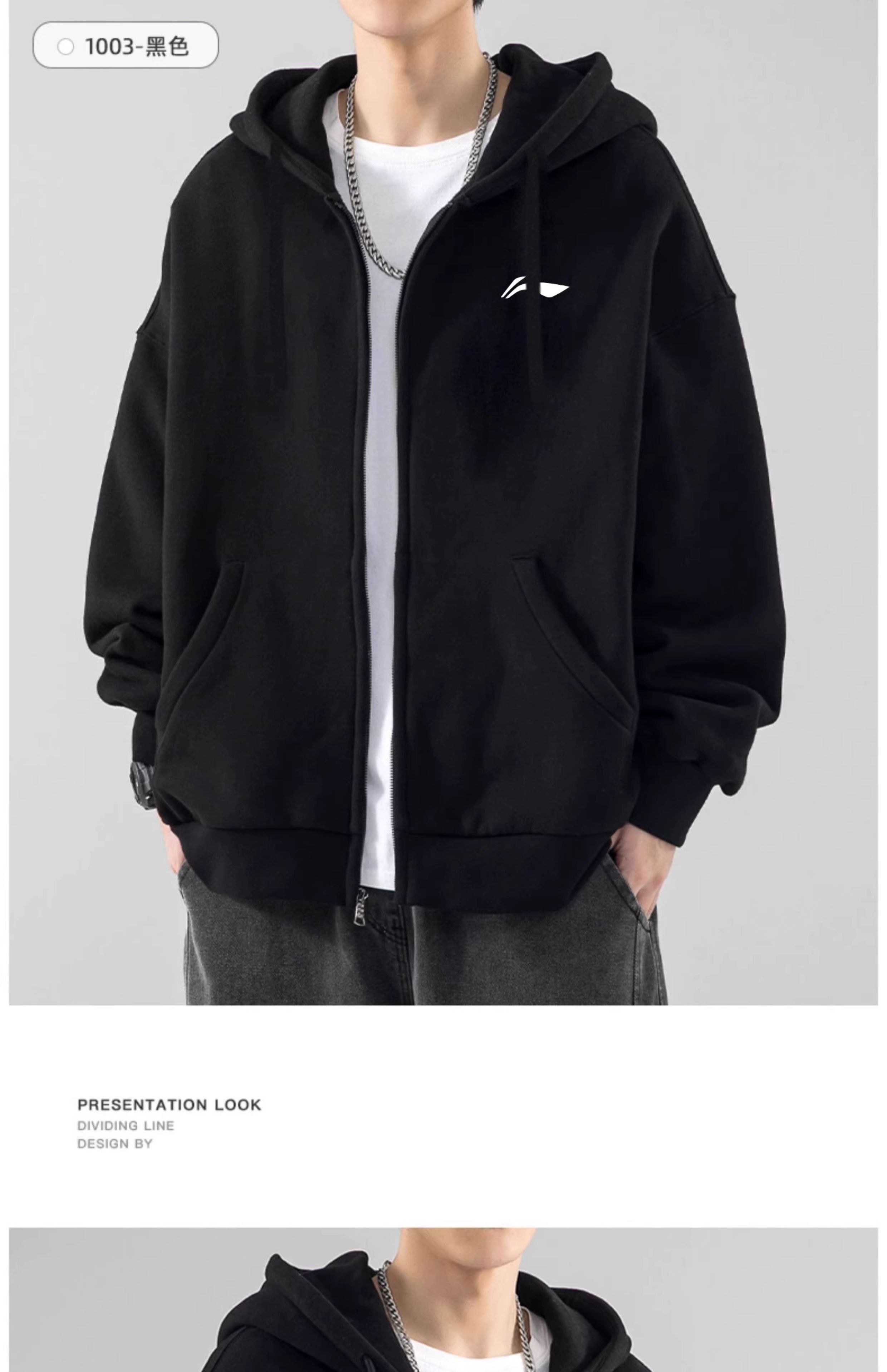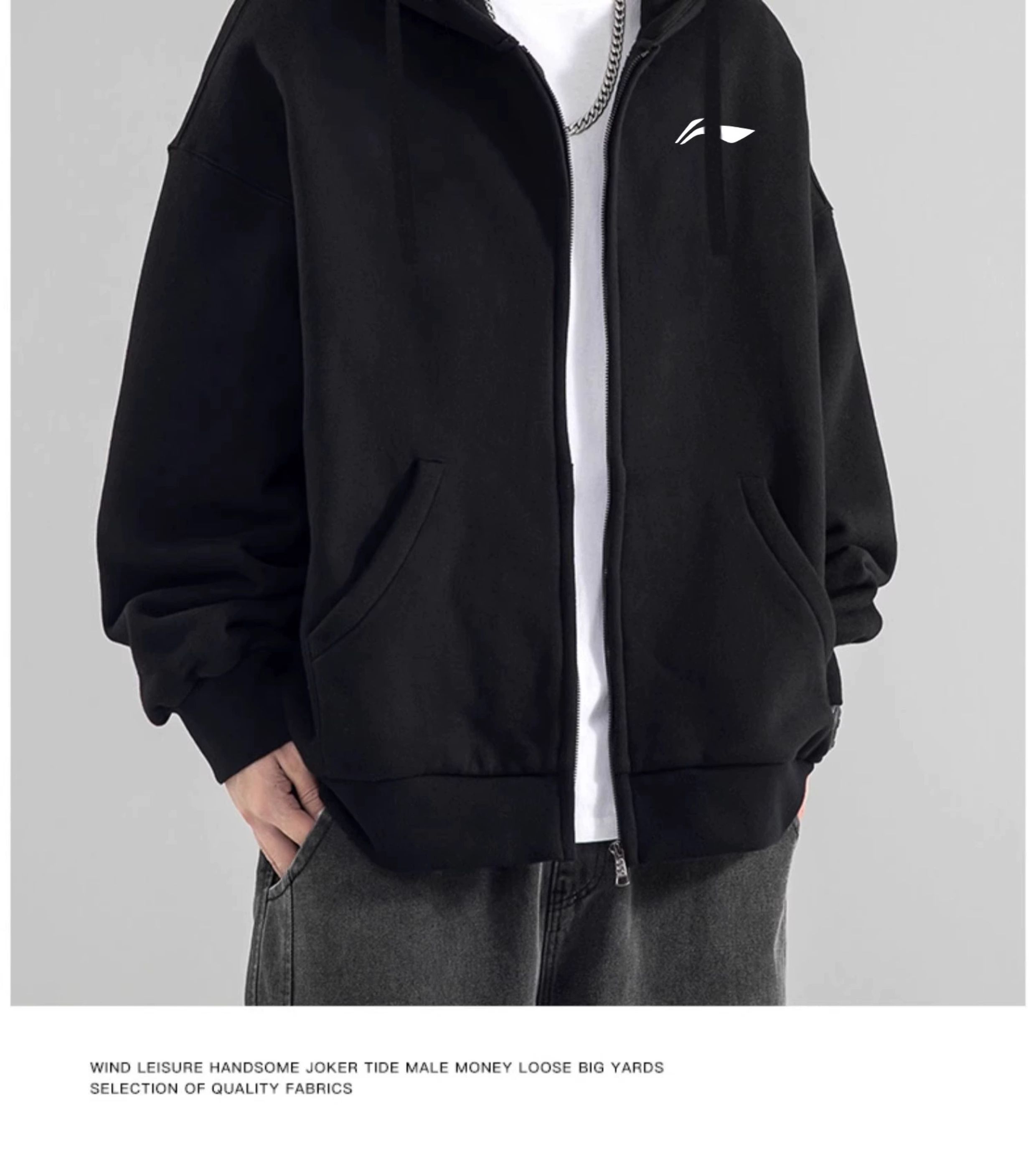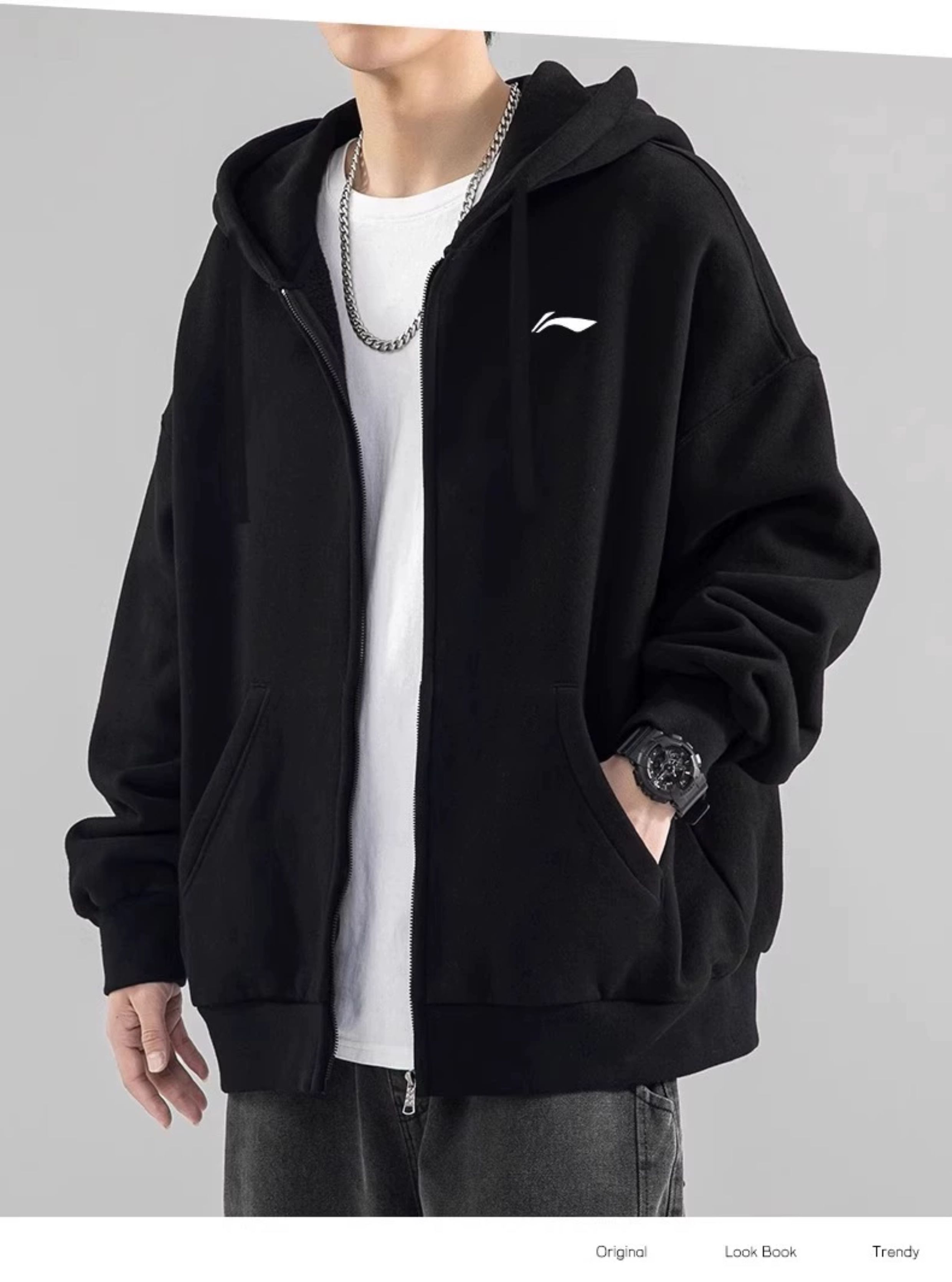 Li Ning Men's Jacket Autumn and Winter New Style Fleece-Lined Hooded Sweatshirt Men's Zip-Up Top Youth Casual Loose Sportswear