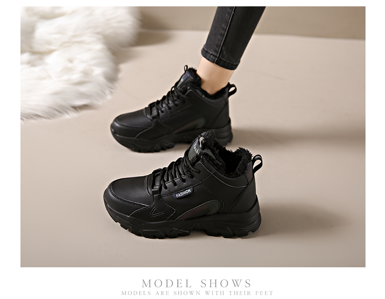 High-top sneakers women's winter leather Waterproof Non Slip work shoes 42 Plus size 41 43 Casual cotton shoes Fleece-lined