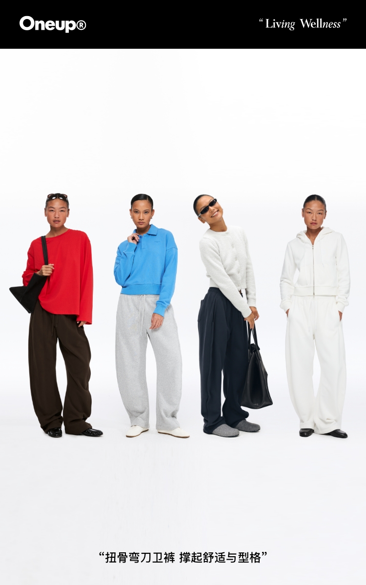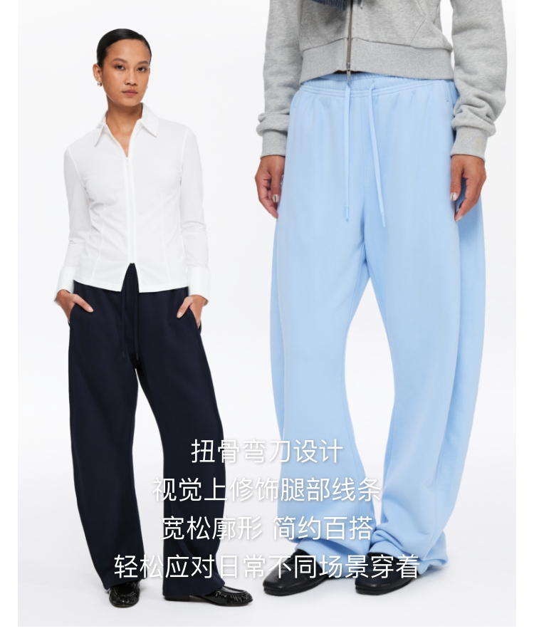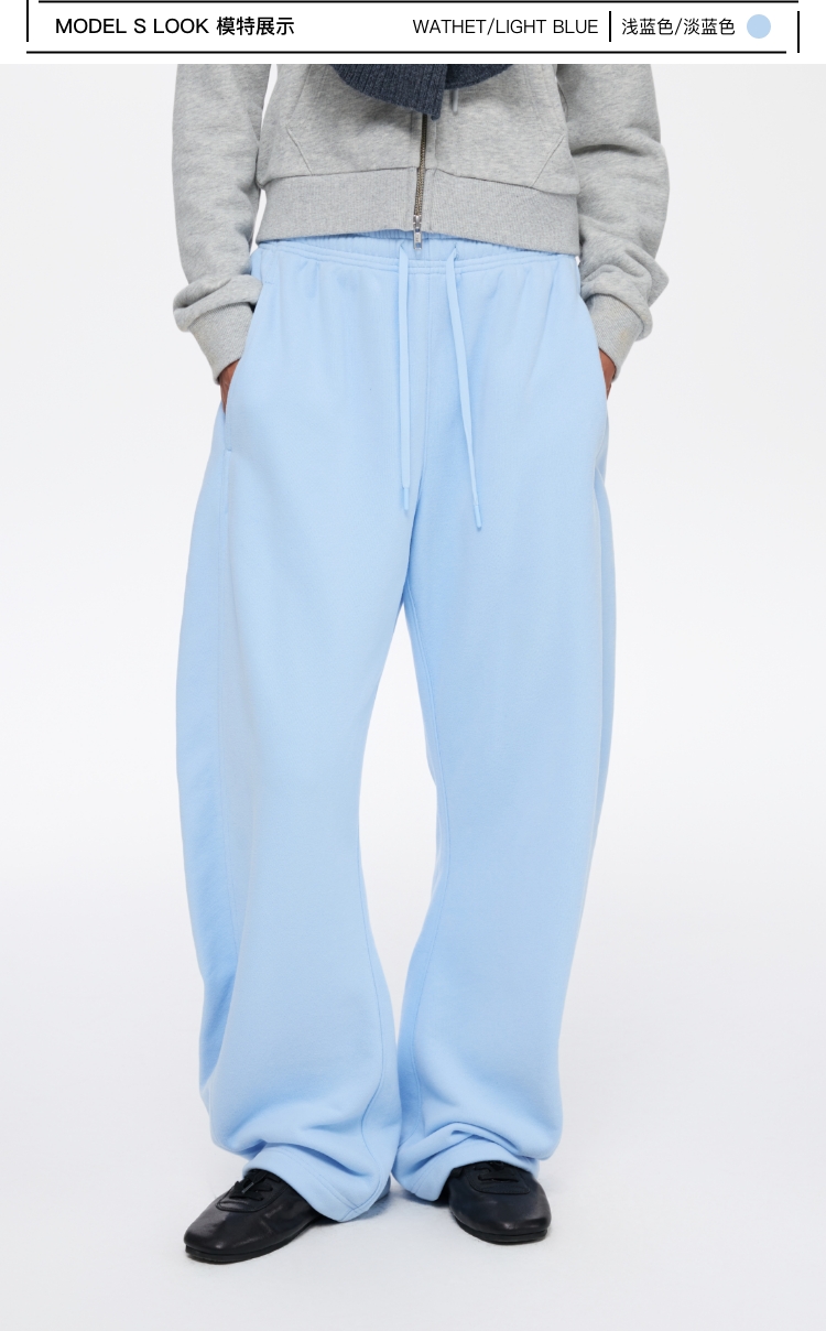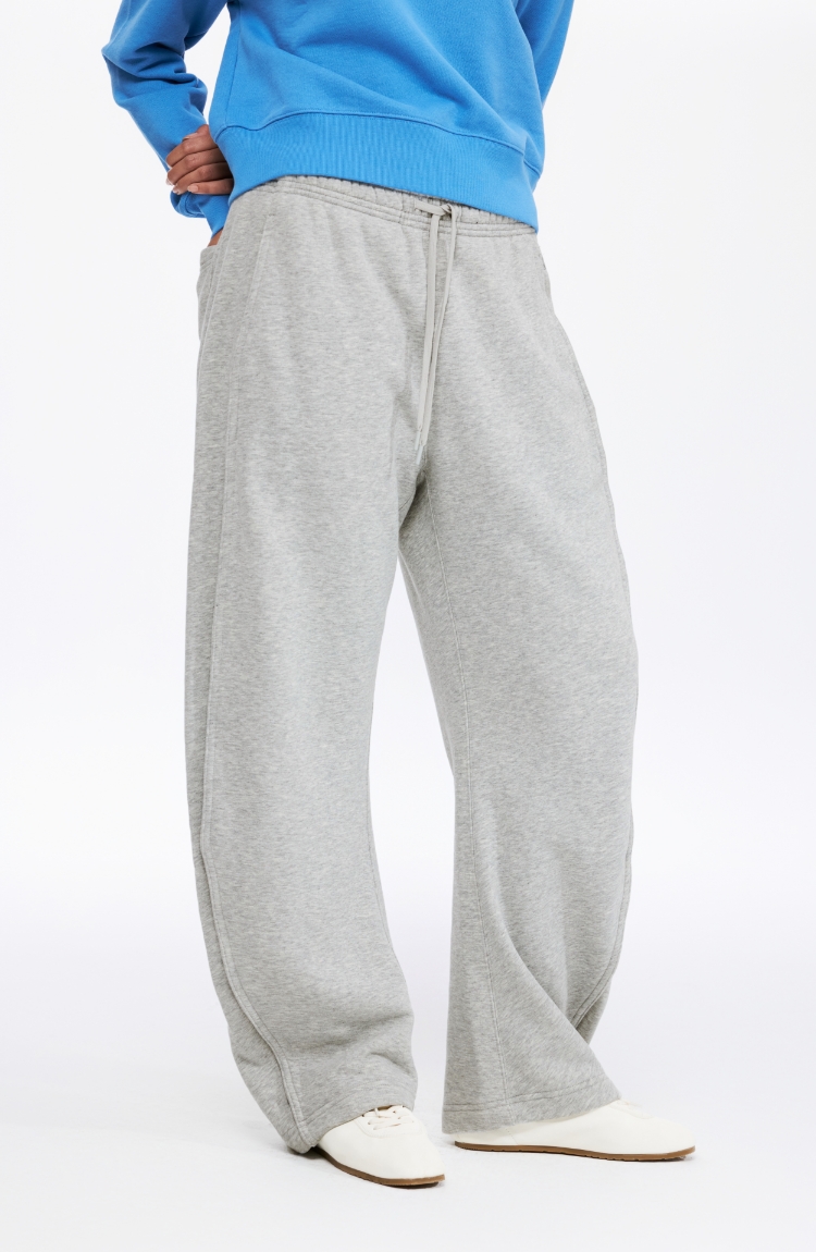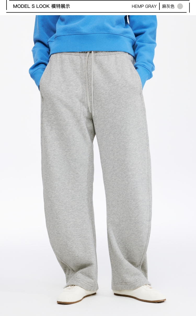 Oneup Curved Knife-Style Gray Sweatpants, Autumn and Winter Heavy Fleece-Lined Loose Casual Pants, Straight Wide-Leg Long Pants for Women