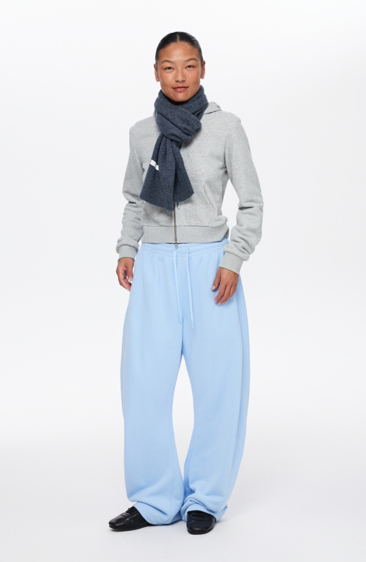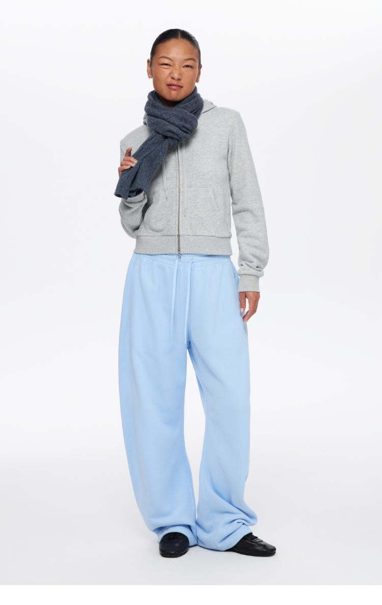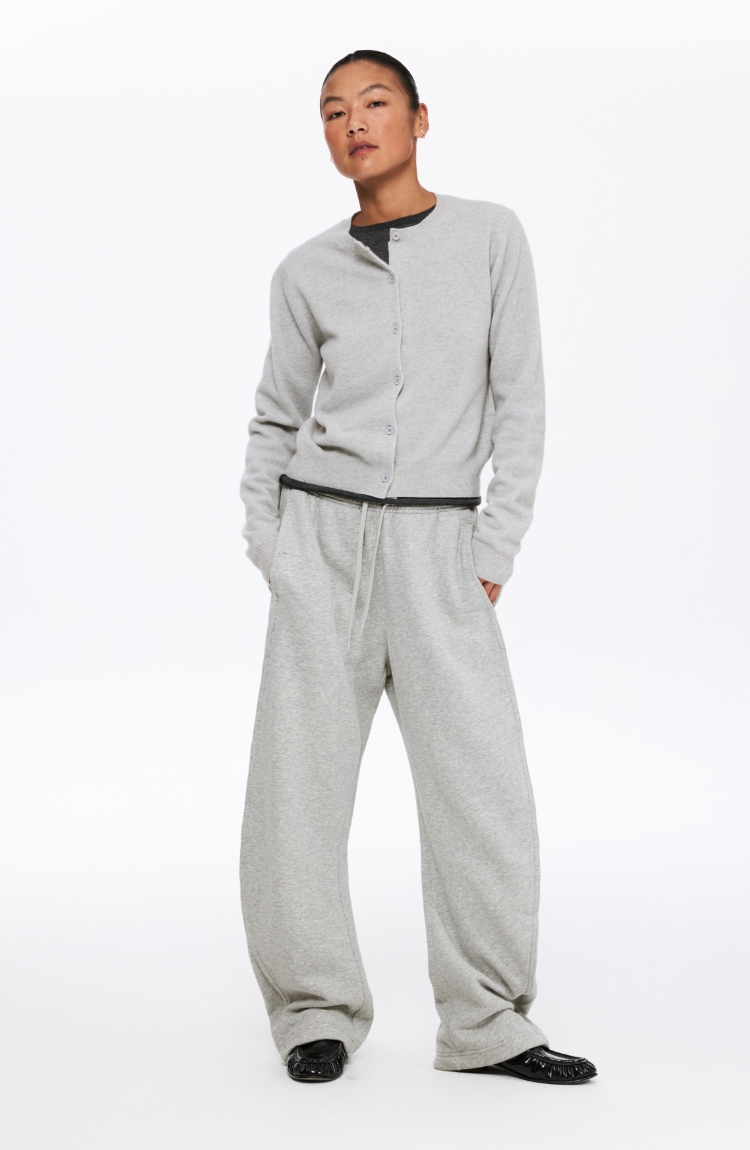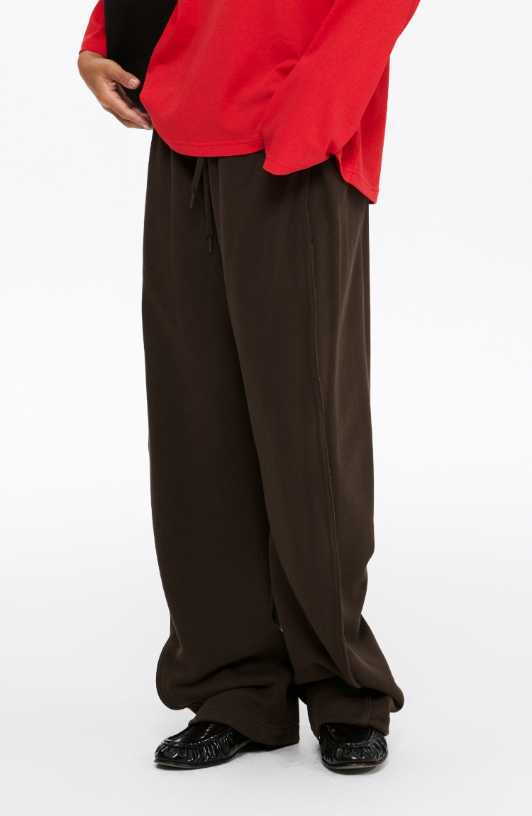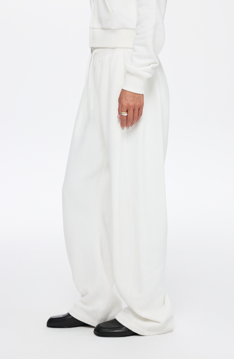 Oneup Curved Knife-Style Gray Sweatpants, Autumn and Winter Heavy Fleece-Lined Loose Casual Pants, Straight Wide-Leg Long Pants for Women